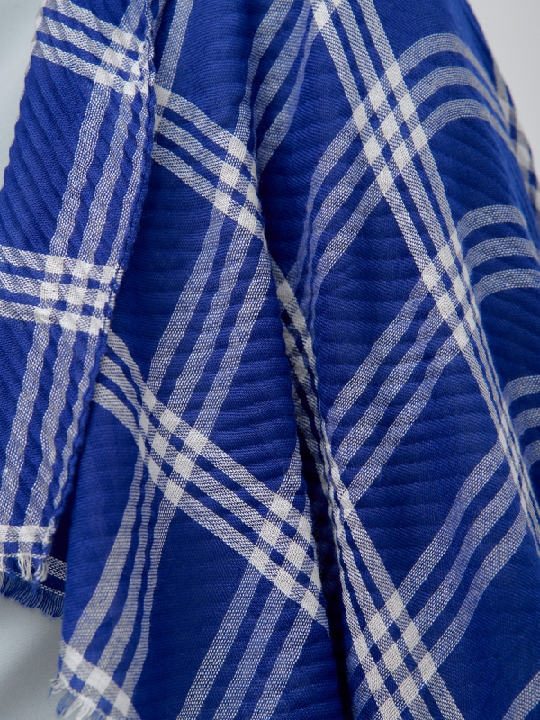 Состав: Вискоза, Хлопок, Модал Размер: 90 x 180 cм Состав: 45% хлопок, 30% вискоза, 25% модал Цвет: Белый, Синий Сезон: Демисезон, Лето, Осень, Весна Большой, красивый палантин с необычной выработкой по всему полотну изделия. Края изделия аккуратно закрыты строчкой. Только ручная стирка. Комментарии к товару