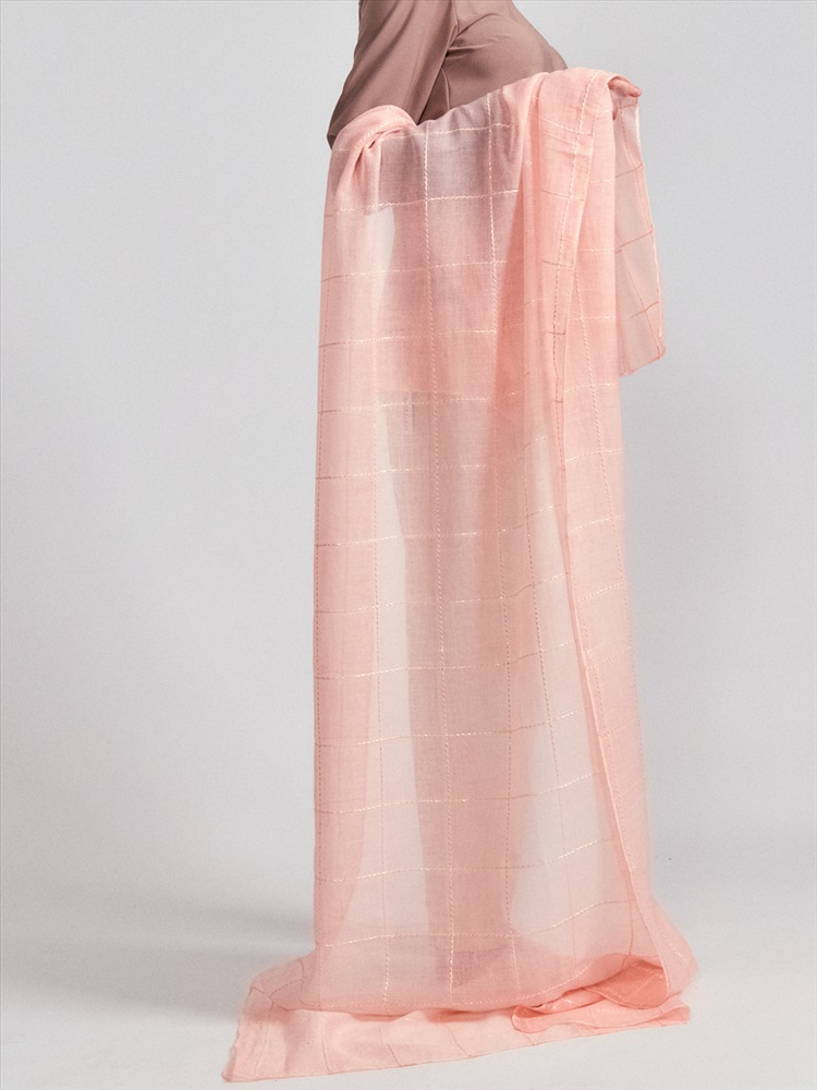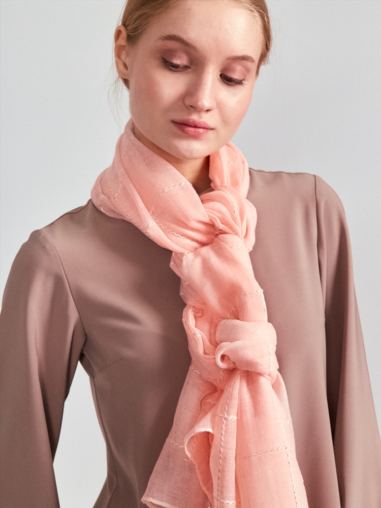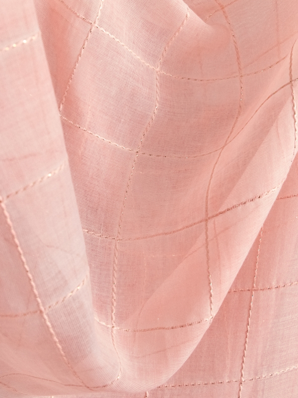 Цвет: Розовый Большой, красивый палантин, выполненный из гофрированной ткани и украшенный тонкими нитями люрекса. Края изделия аккуратно подшиты. Только ручная стирка.