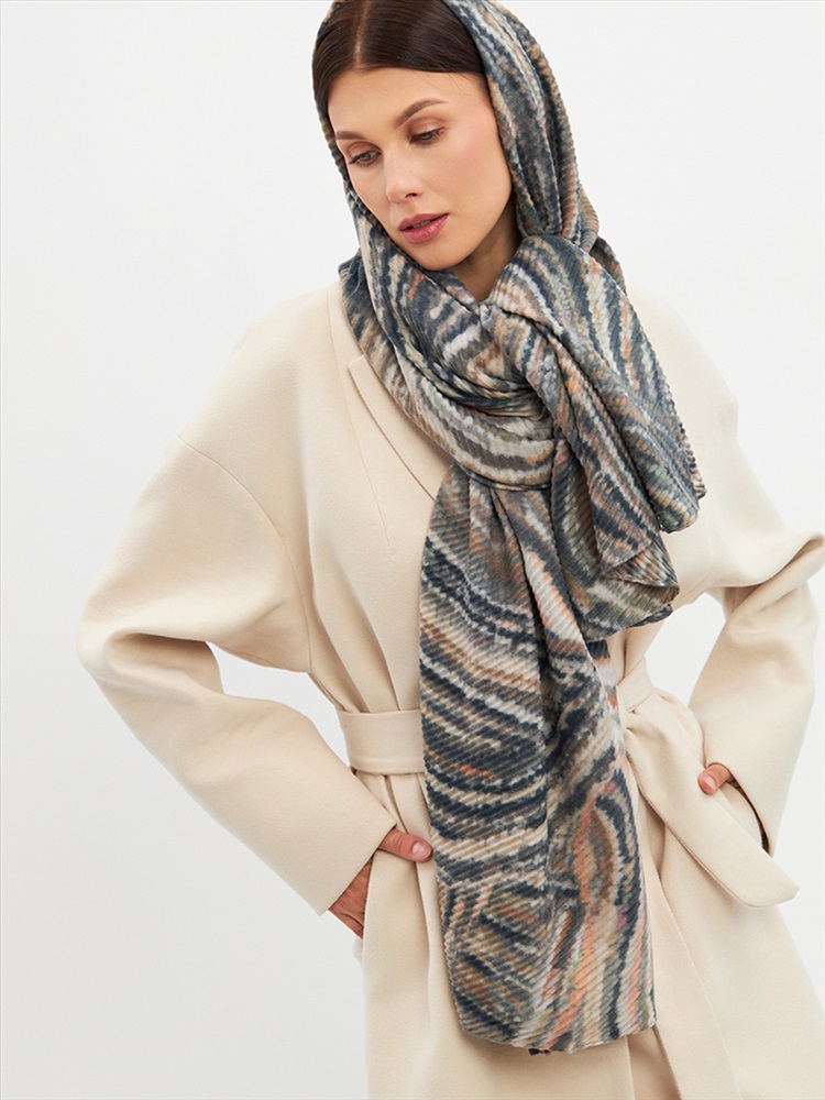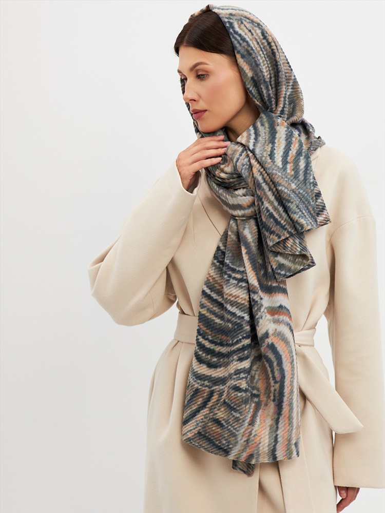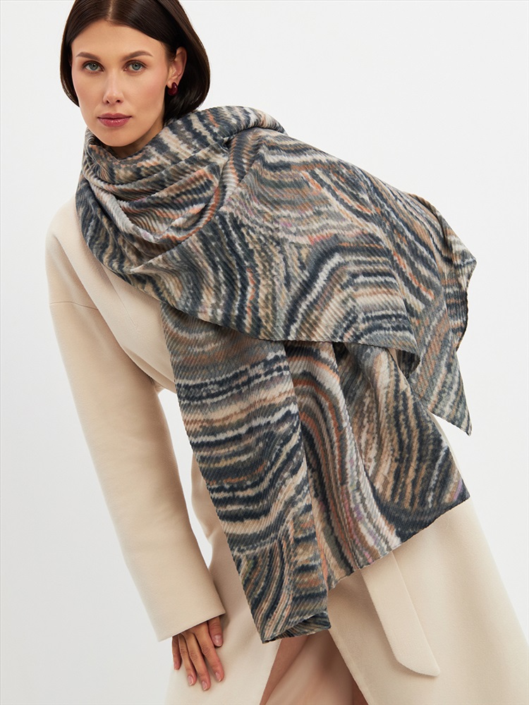 Большой, мягкий, тонкий и очень нежный двусторонний палантин с рисунком. Ткань жатая. Только ручная стирка.