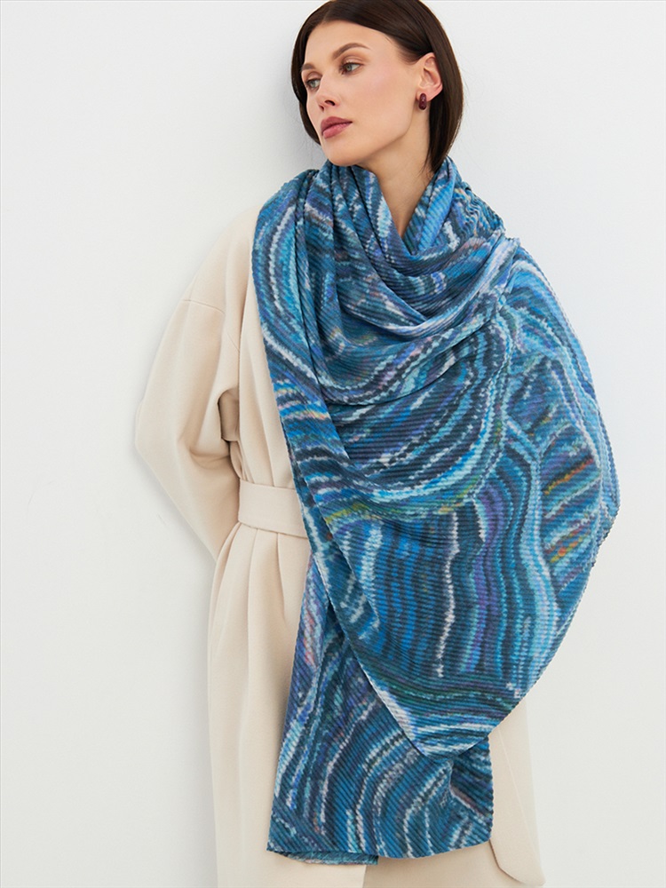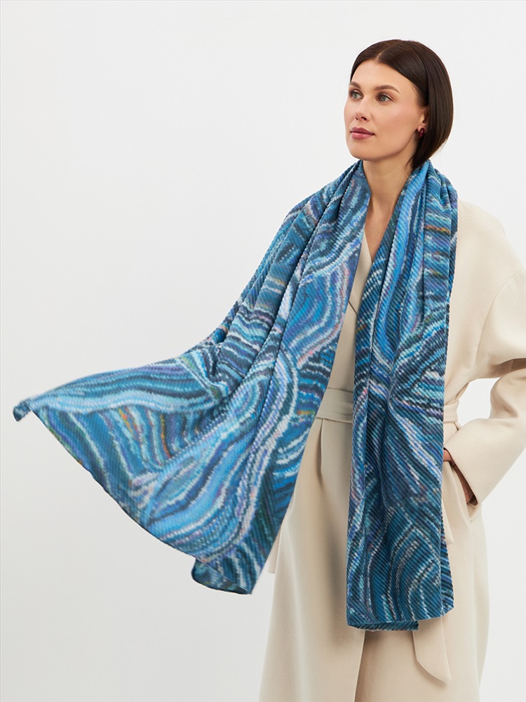 Цвет: Голубой, Синий Состав: 55% тенсел, 45% вискоза Состав: Вискоза, Тенсел Принт: Абстракция Размер: 88 x 180 см Сезон: Демисезон, Осень, Весна Стиль: Повседневный Большой, мягкий, тонкий и очень нежный двусторонний палантин с рисунком. Ткань жатая. Только ручная стирка. Комментарии к товару