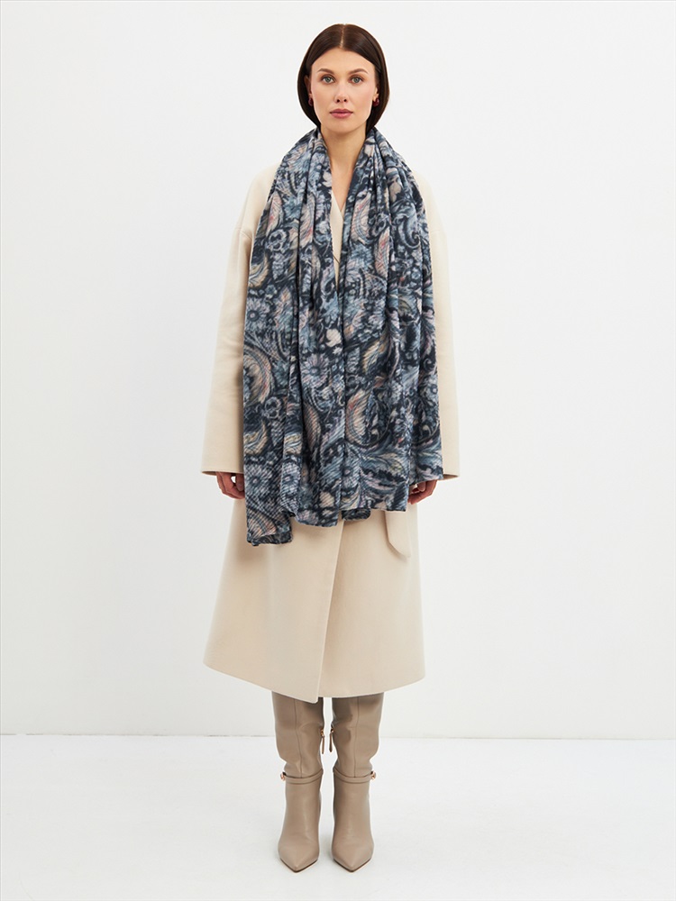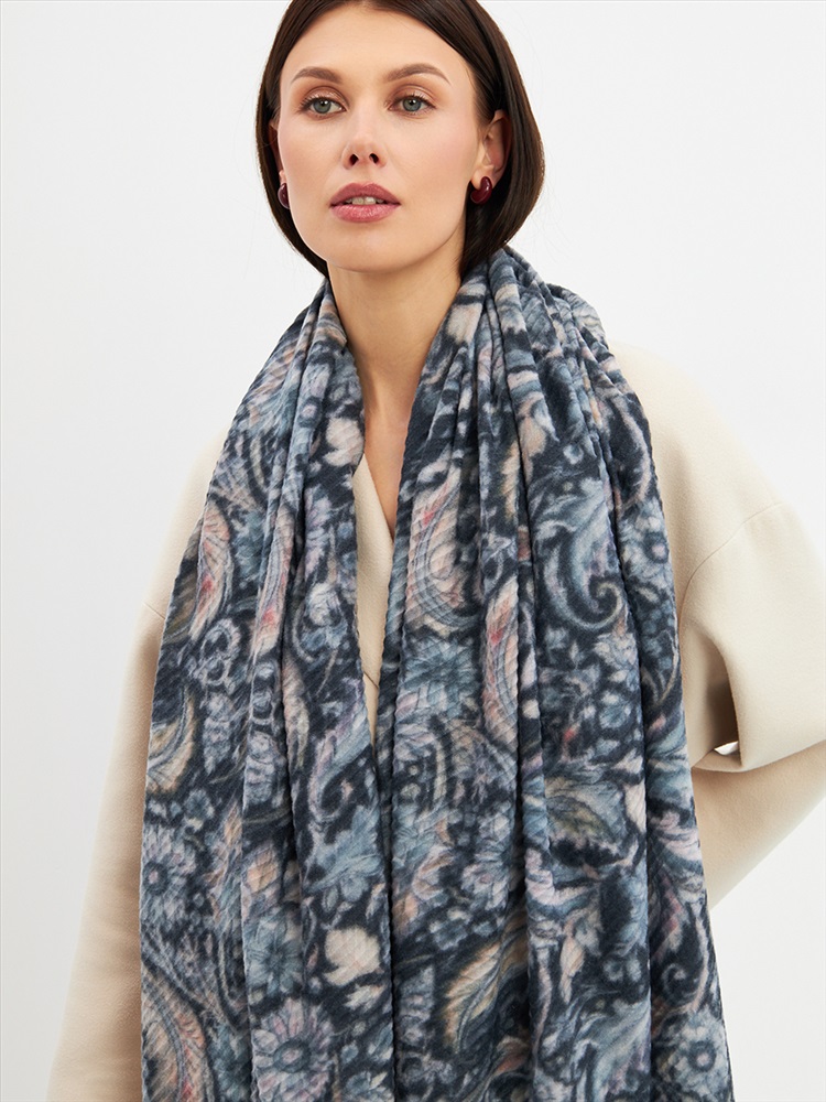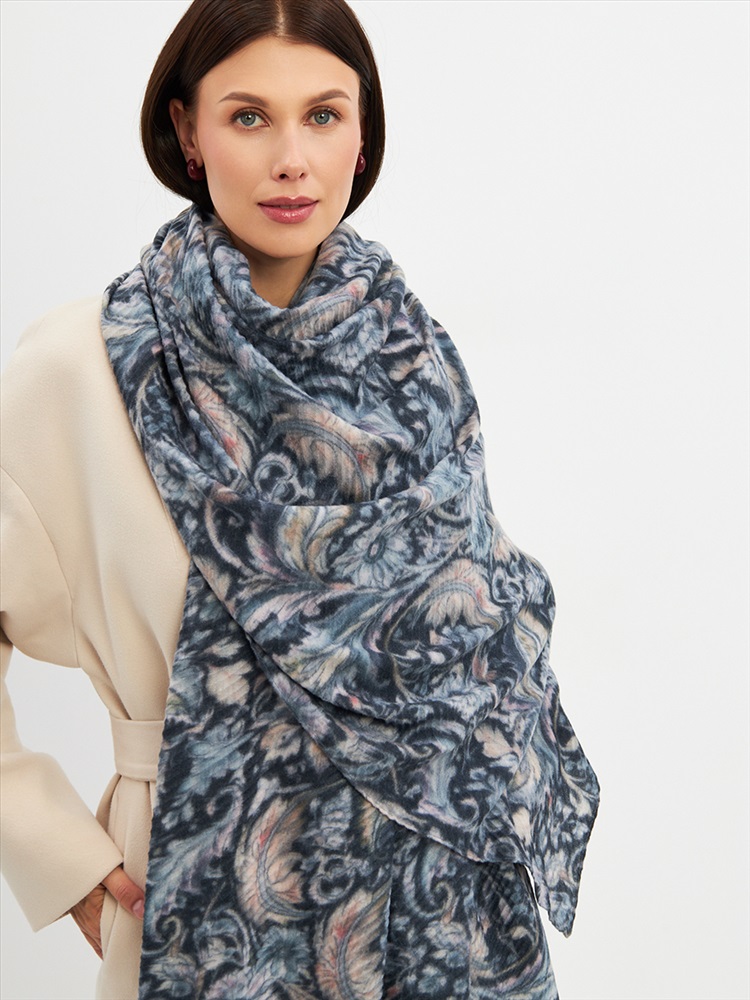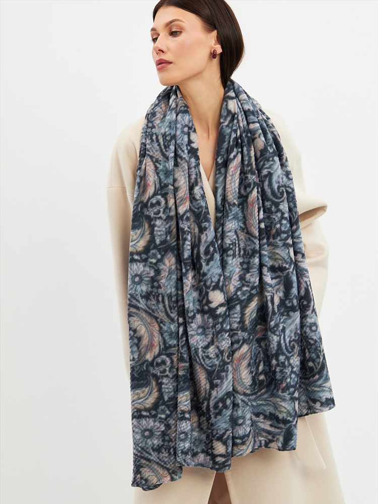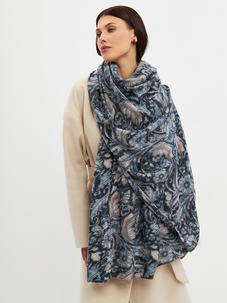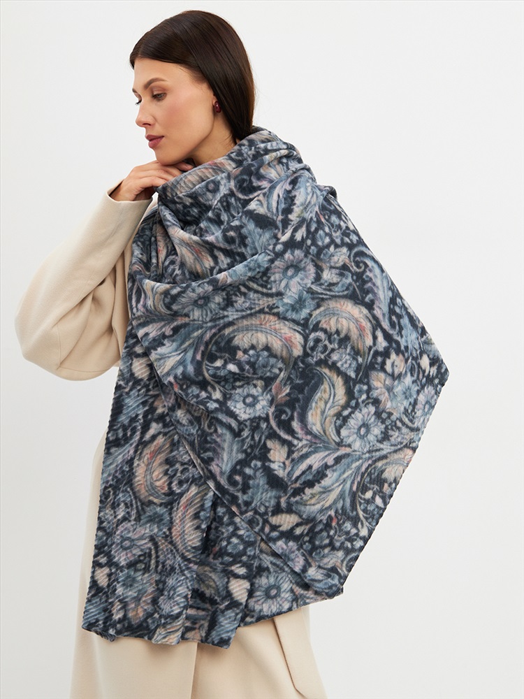 Большой, мягкий, тонкий и очень нежный двусторонний палантин с рисунком. Ткань жатая. Только ручная стирка.