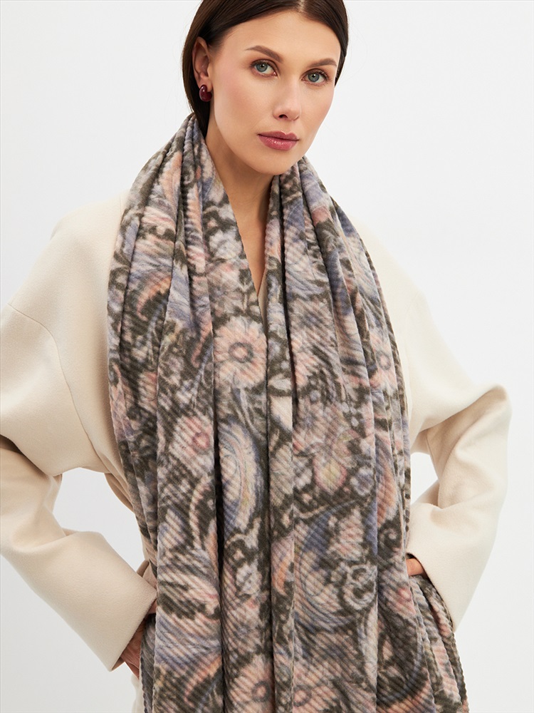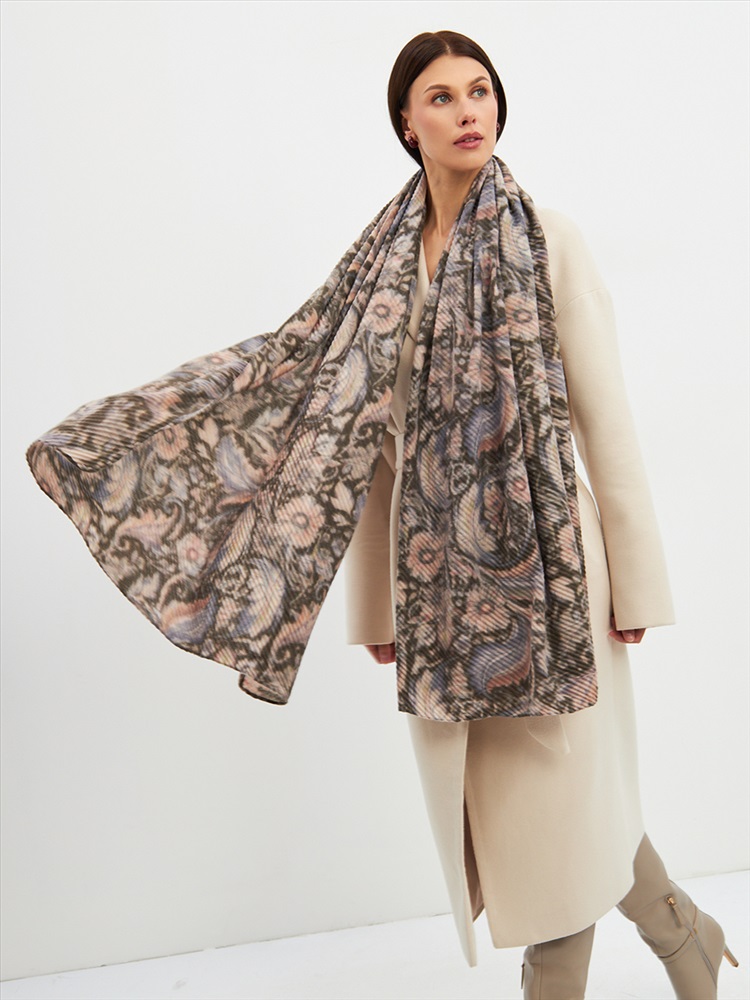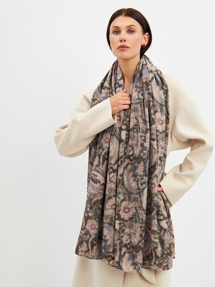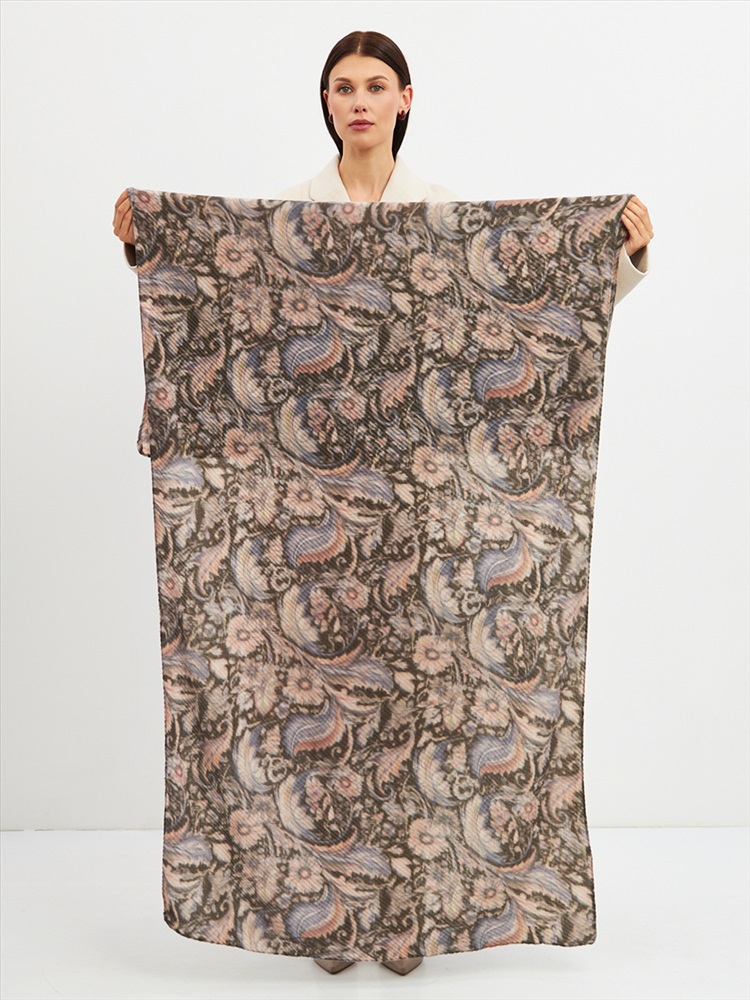 Большой, мягкий, тонкий и очень нежный двусторонний палантин с рисунком. Ткань жатая. Только ручная стирка.