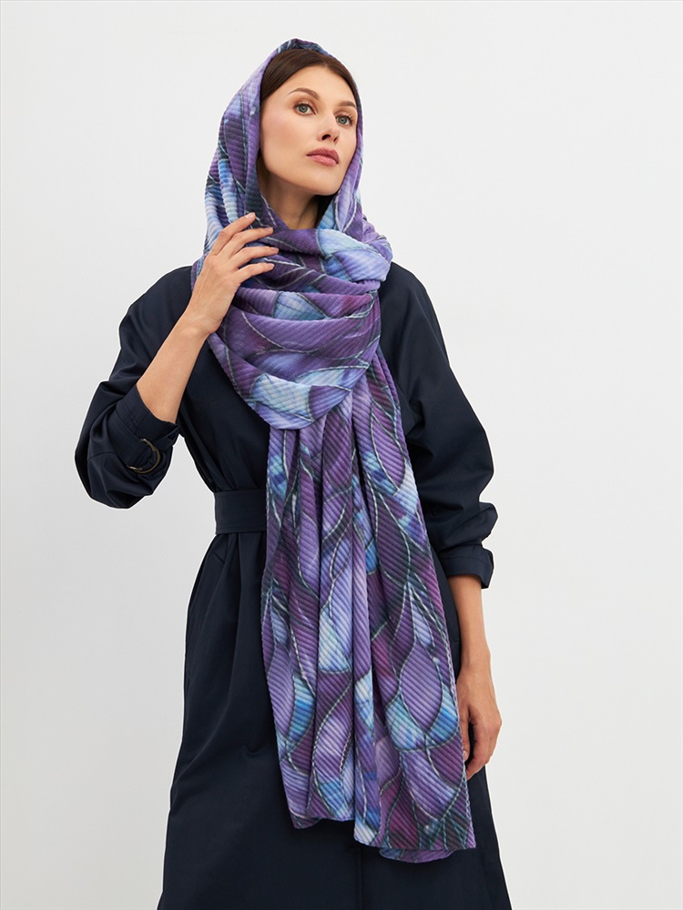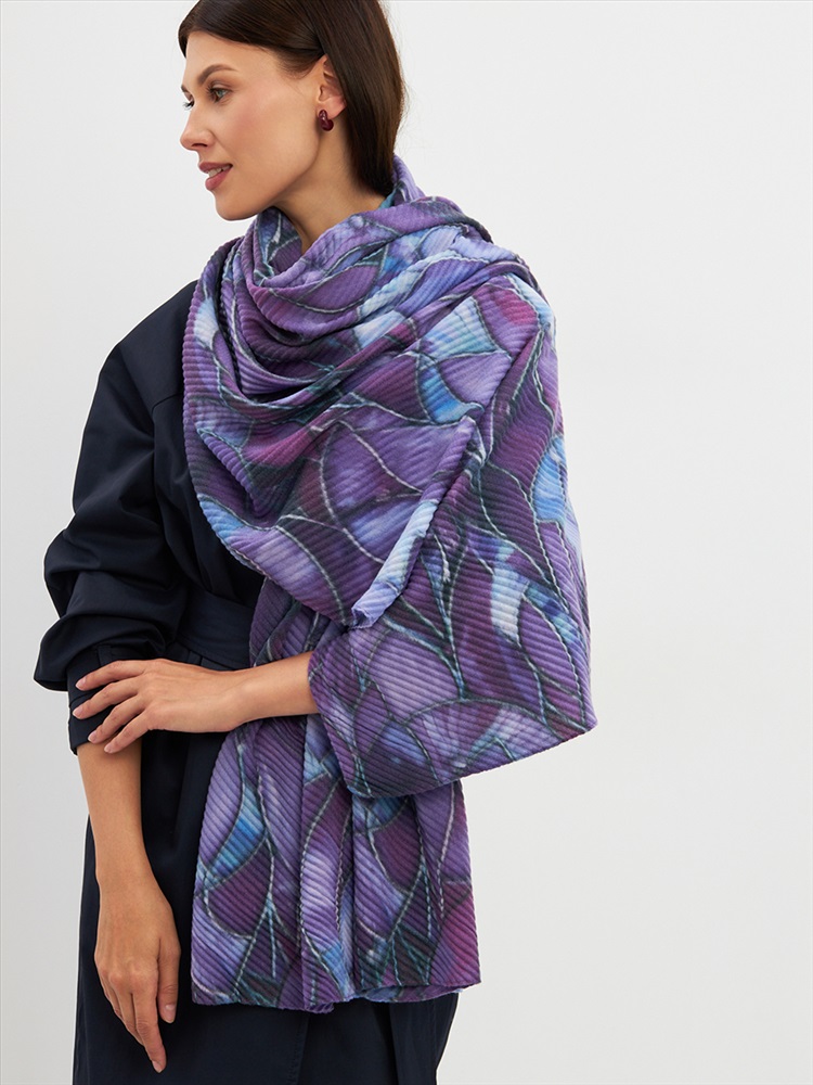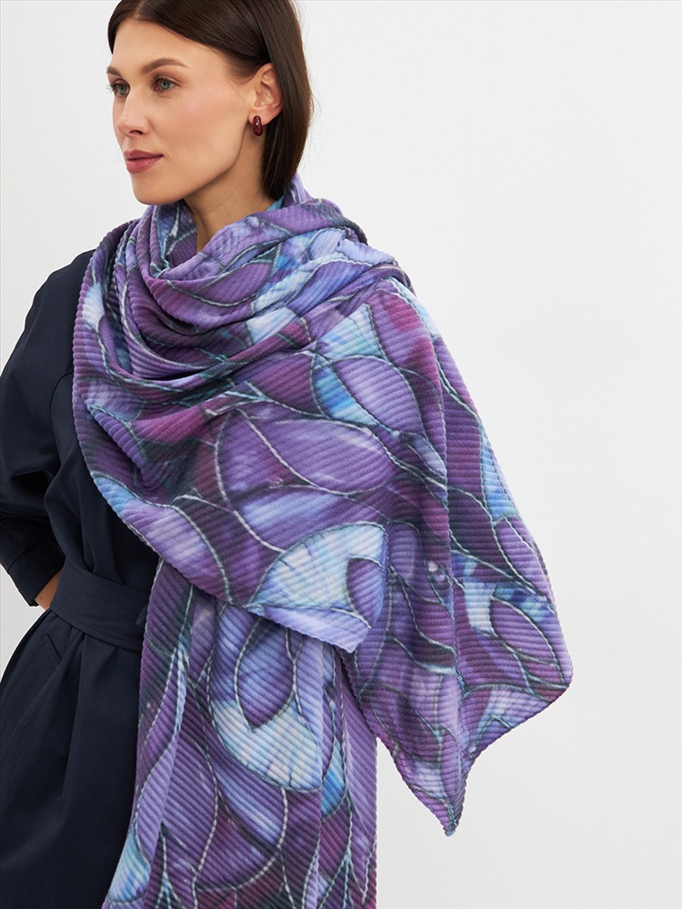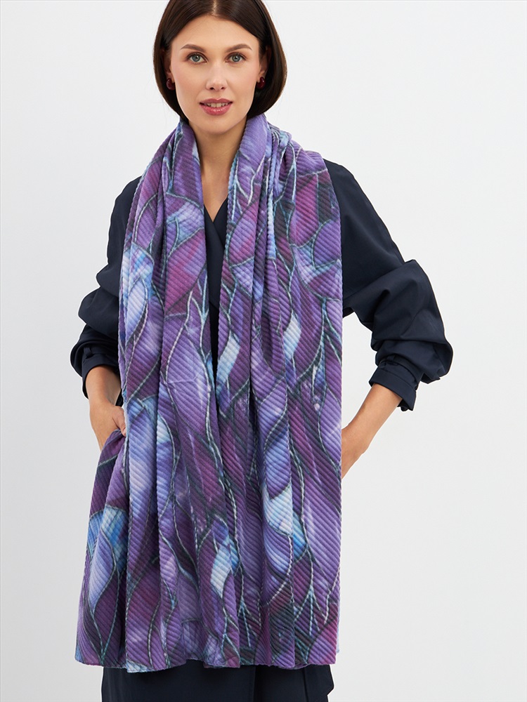 Большой, мягкий, тонкий и очень нежный двусторонний палантин с рисунком. Ткань жатая. Только ручная стирка.