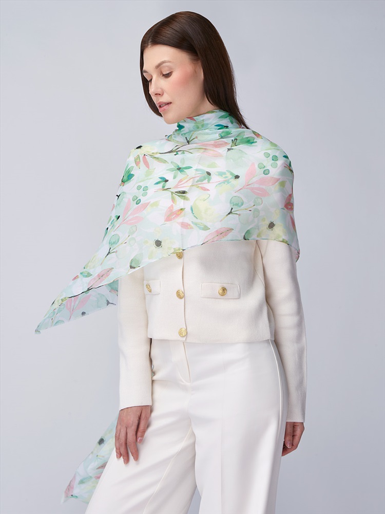Цвет: Зеленый, Розовый Состав: 55% полиэстер, 35% вискоза, 10% шелк Состав: Вискоза, Полиэстер, Лиоцелл Размер: 70 x 180 см Принт: Абстракция, Переход тона Сезон: Осень, Весна Большой, мягкий, тонкий и очень нежный палантин с рисунком. Только ручная стирка. Комментарии к товару