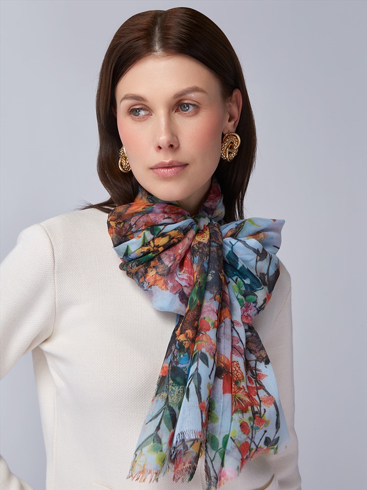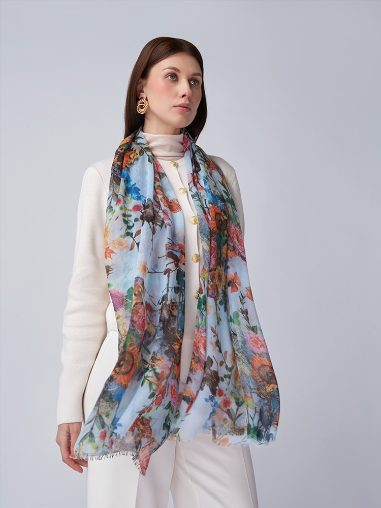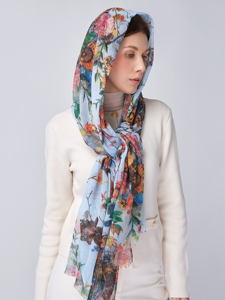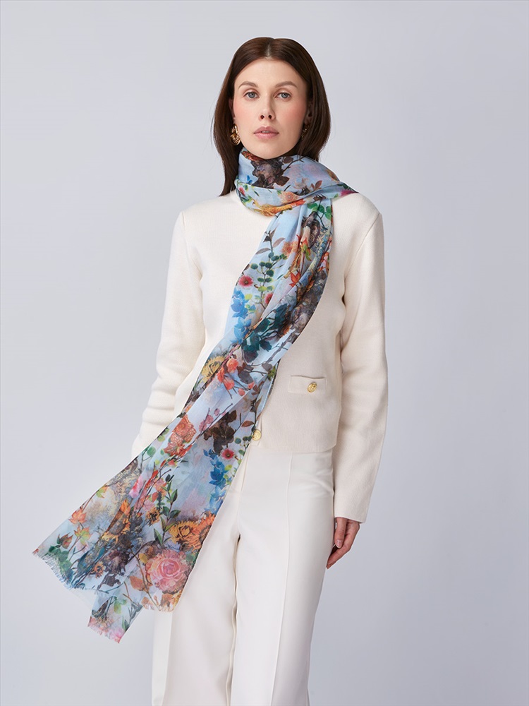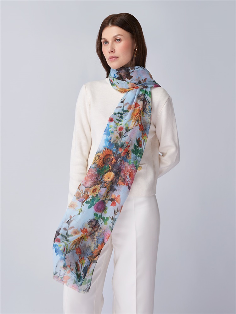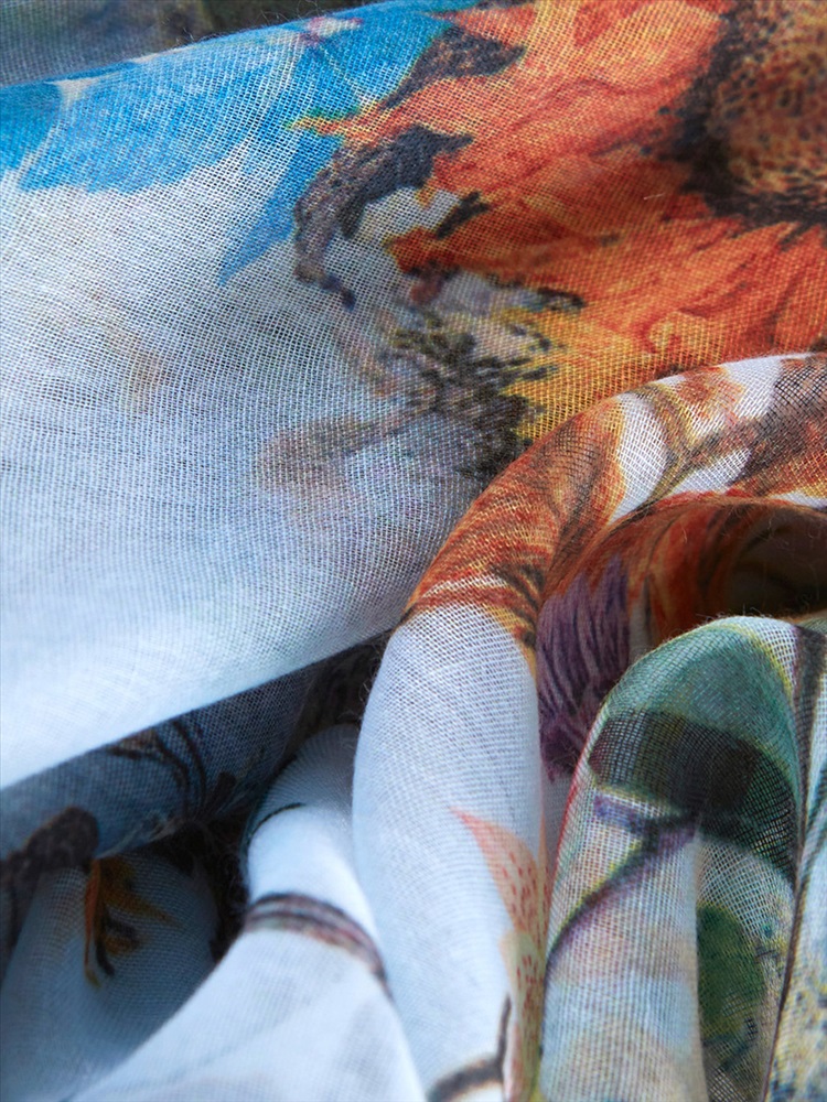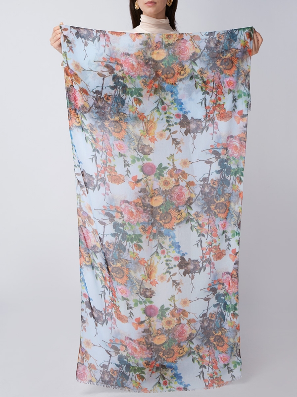 Цвет: Голубой, Оранжевый, Розовый Состав: 55% полиэстер, 35% вискоза, 10% шелк Состав: Вискоза, Полиэстер, Лиоцелл Размер: 70 x 180 см Принт: Цветочный Сезон: Осень, Весна Большой, мягкий, тонкий и очень нежный палантин с рисунком. Только ручная стирка. Комментарии к товару