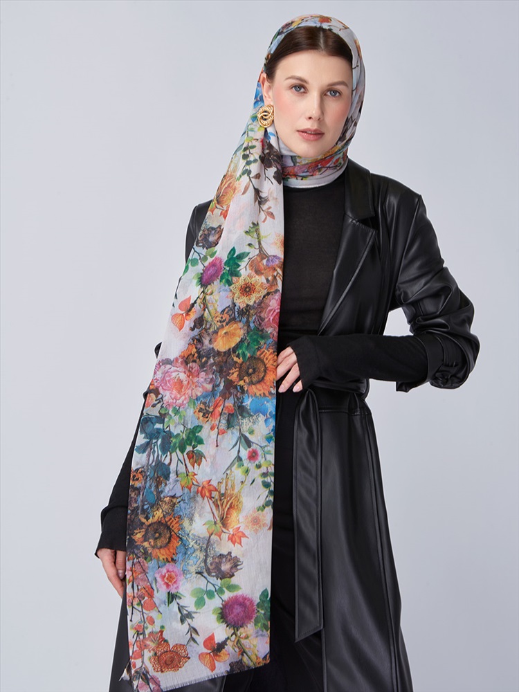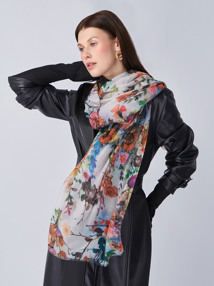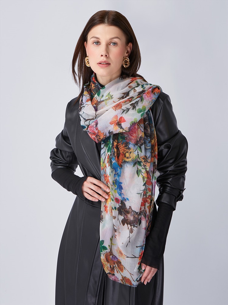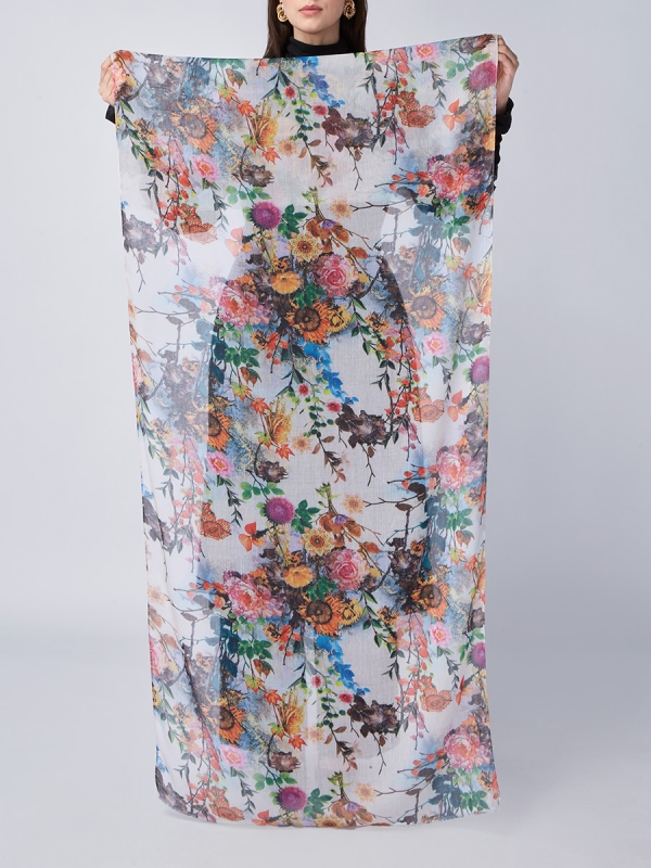 Сезон: Осень, Весна Большой, мягкий, тонкий и очень нежный палантин с рисунком. Только ручная стирка.