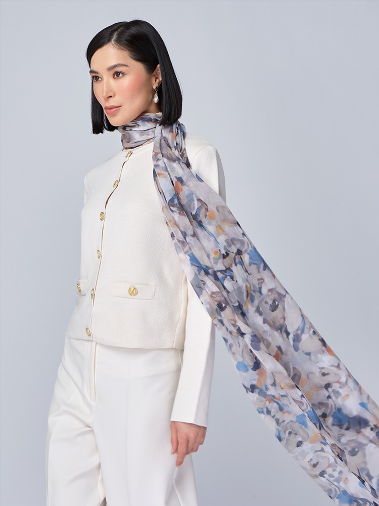 Цвет: Белый, Голубой, Серый Состав: 55% полиэстер, 35% вискоза, 10% шелк Состав: Вискоза, Полиэстер, Лиоцелл Размер: 70 x 180 см Принт: Цветочный Сезон: Осень, Весна Большой, мягкий, тонкий и очень нежный палантин с рисунком. Только ручная стирка. Комментарии к товару
