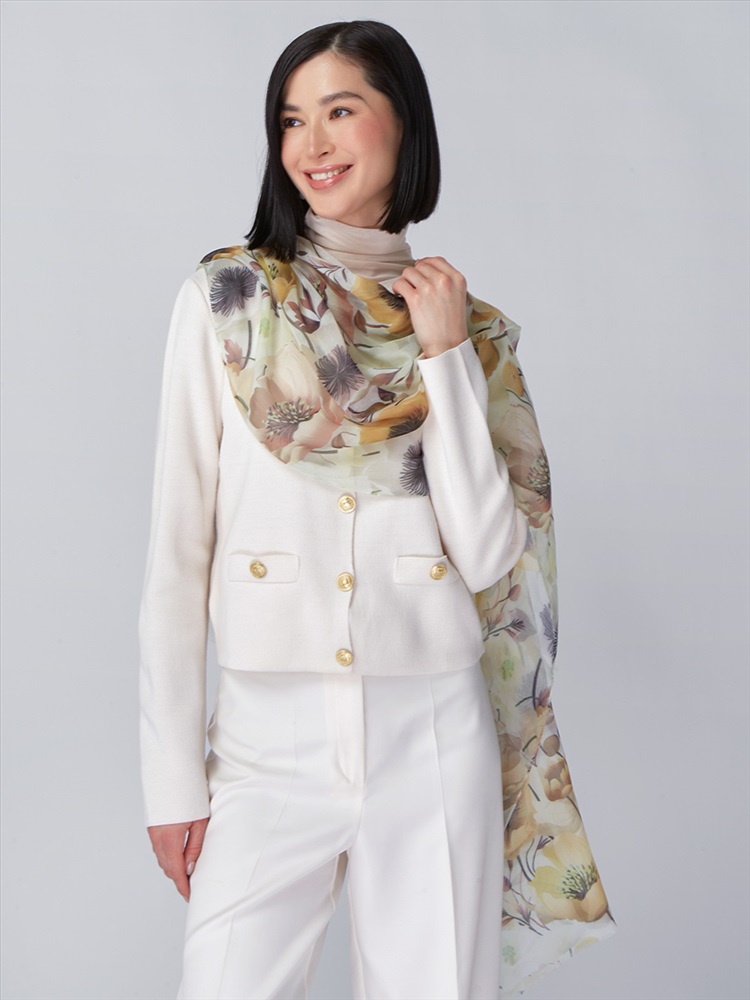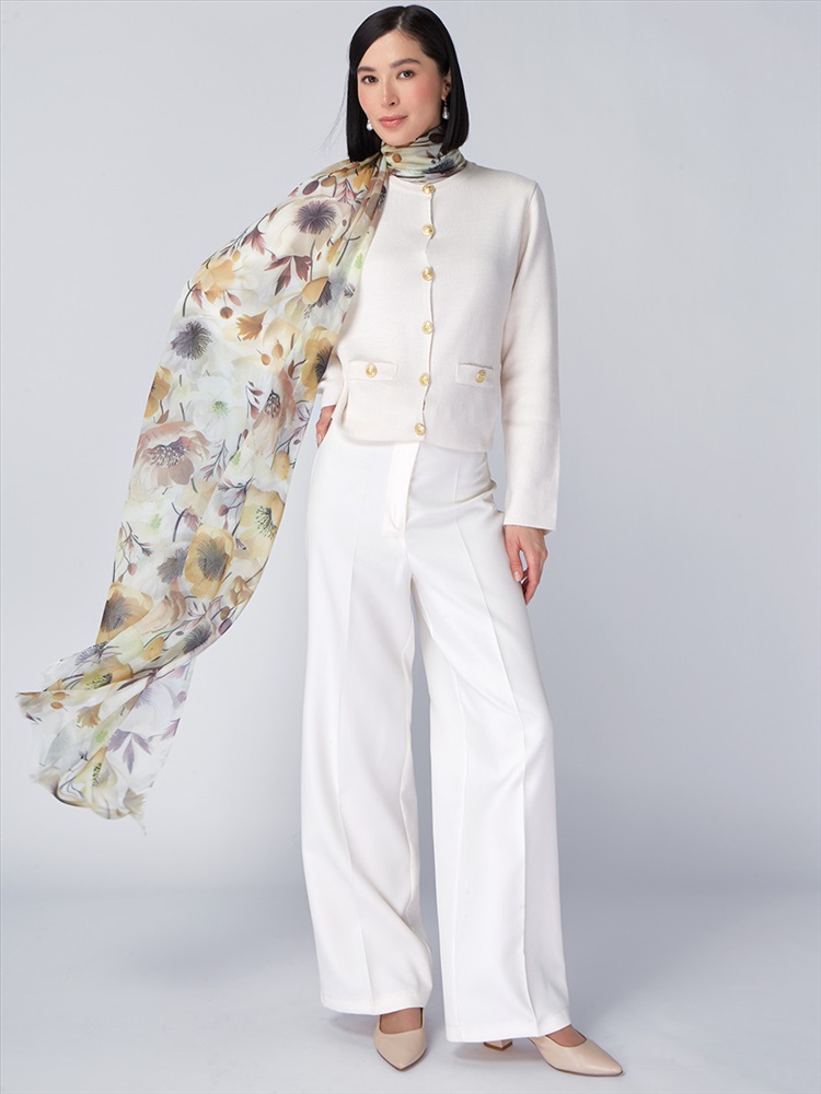 Цвет: Бежевый, Белый, Желтый Состав: 55% полиэстер, 35% вискоза, 10% шелк Состав: Вискоза, Полиэстер, Лиоцелл Размер: 70 x 180 см Принт: Цветочный Сезон: Осень, Весна Большой, мягкий, тонкий и очень нежный палантин с рисунком. Только ручная стирка. Комментарии к товару