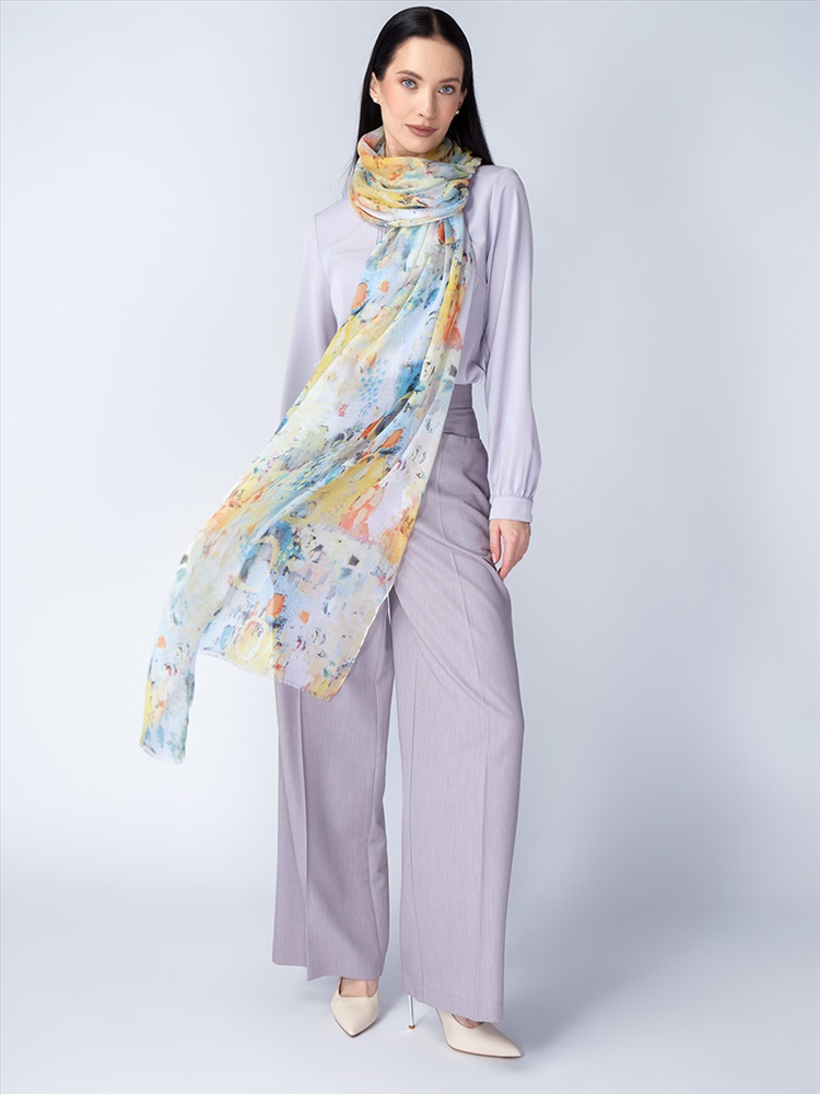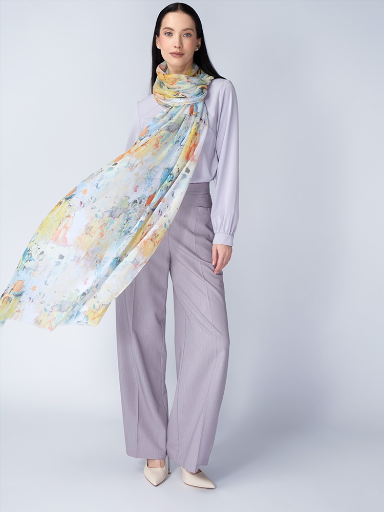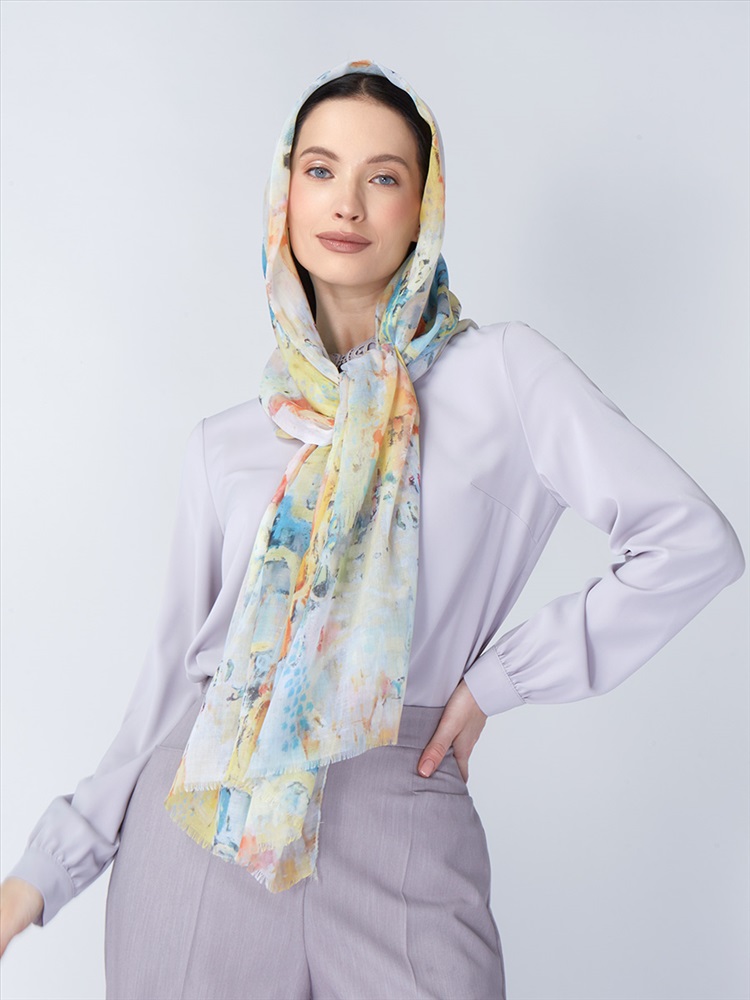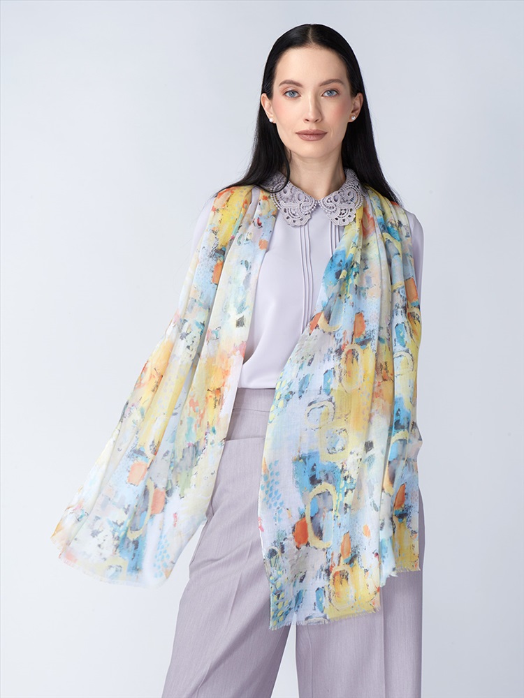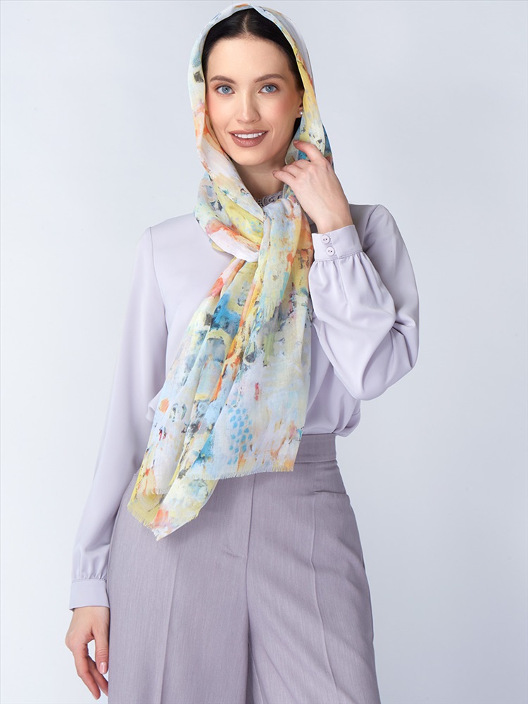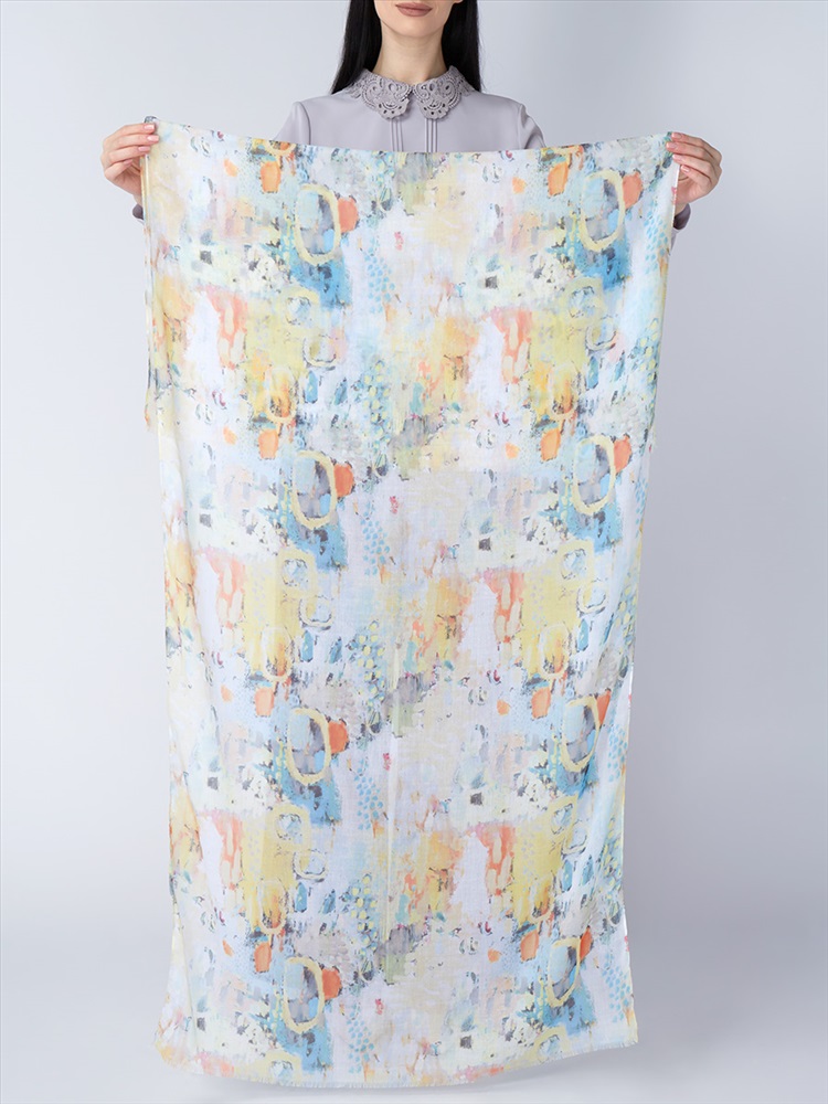 Цвет: Разноцветный Состав: 55% полиэстер, 35% вискоза, 10% шелк Состав: Вискоза, Полиэстер, Лиоцелл Размер: 70 x 180 см Принт: Абстракция, Переход тона Сезон: Осень, Весна Большой, мягкий, тонкий и очень нежный палантин с рисунком. Только ручная стирка. Комментарии к товару