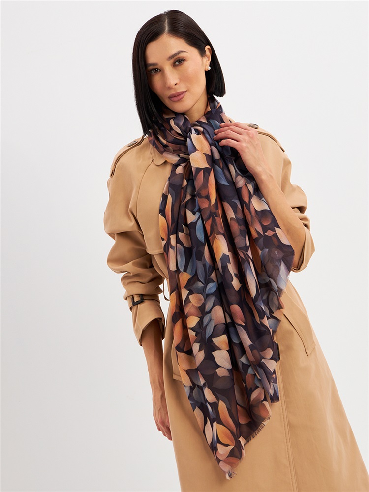 Цвет: Коричневый, Оранжевый, Синий Размер: 80 x 180 см Состав: 55% полиэстер, 35% вискоза, 10% шелк Состав: Вискоза, Полиэстер, Шелк Принт: Абстракция Большой, мягкий, тонкий и очень нежный палантин с рисунком. Края изделия украшены бахромой ручной работы. Машинная деликатная стирка. Комментарии к товару