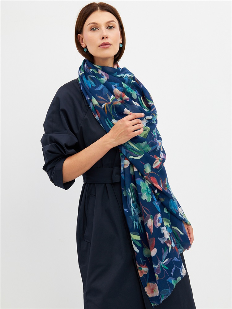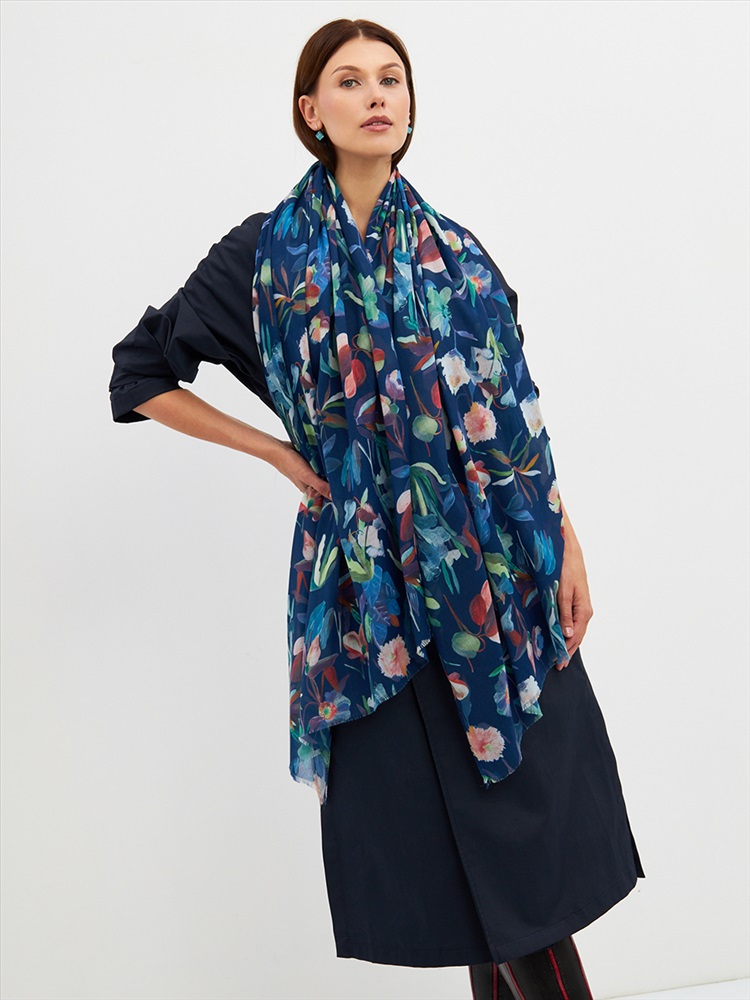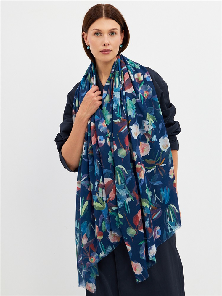 Большой, мягкий, тонкий и очень нежный палантин с рисунком. Края изделия украшены бахромой ручной работы. Машинная деликатная стирка.