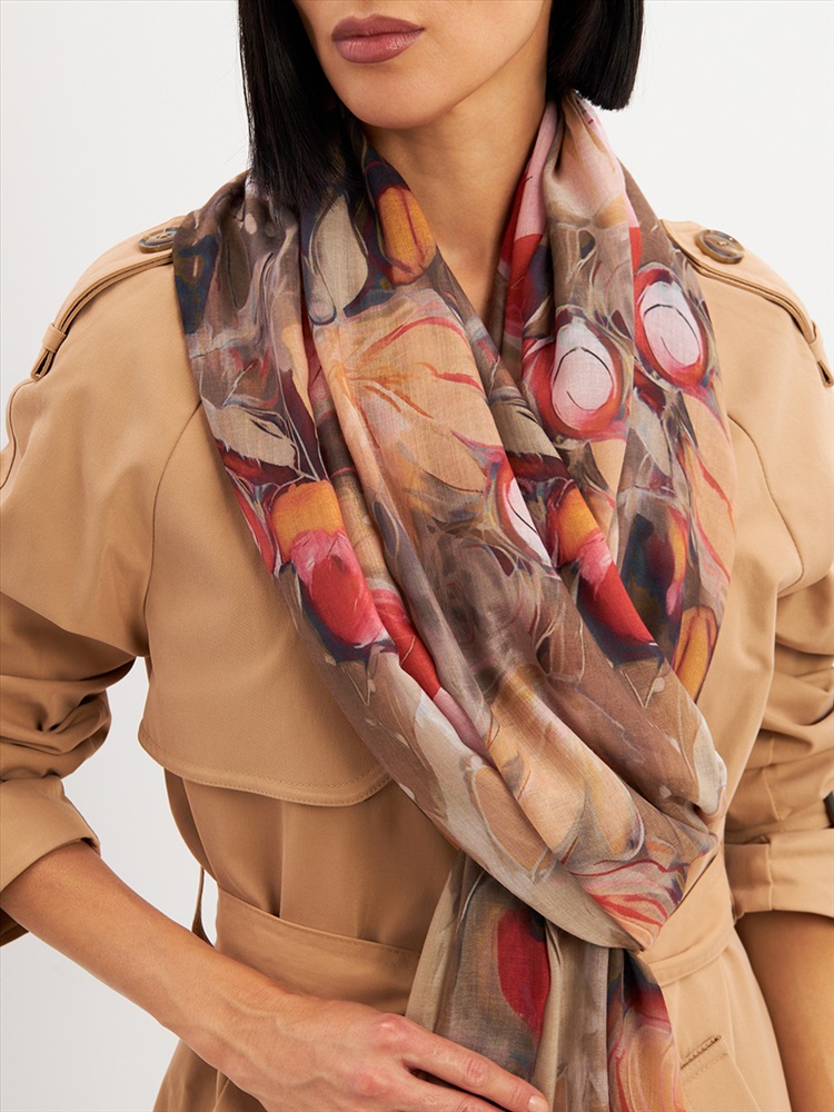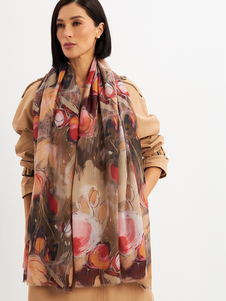 Большой, мягкий, тонкий и очень нежный палантин с рисунком. Края изделия украшены бахромой ручной работы. Машинная деликатная стирка.