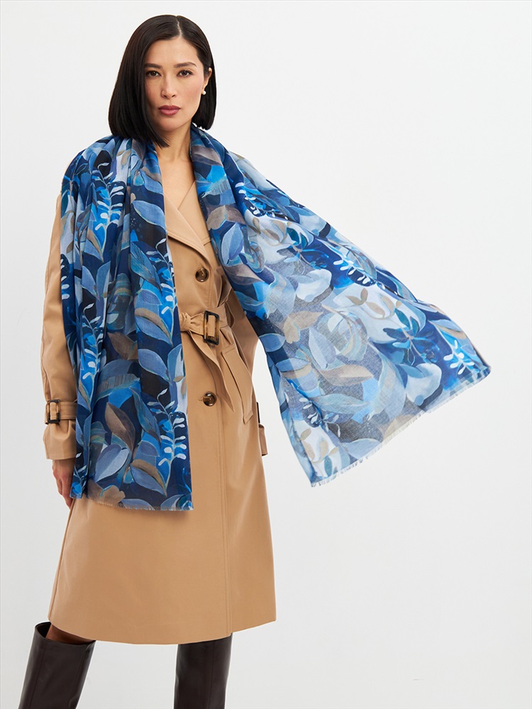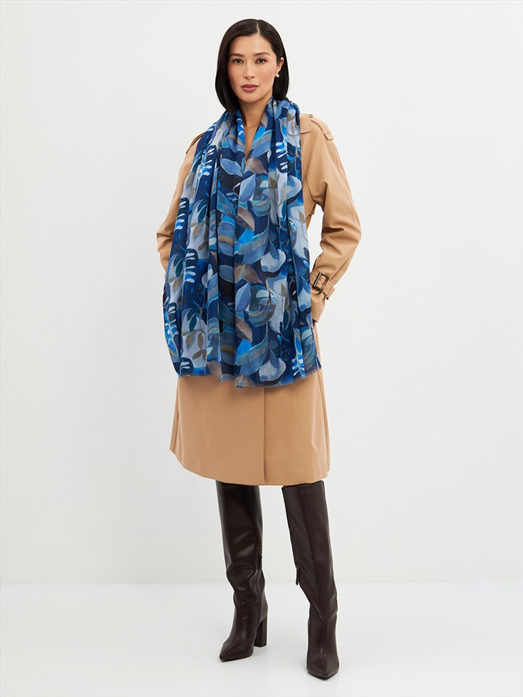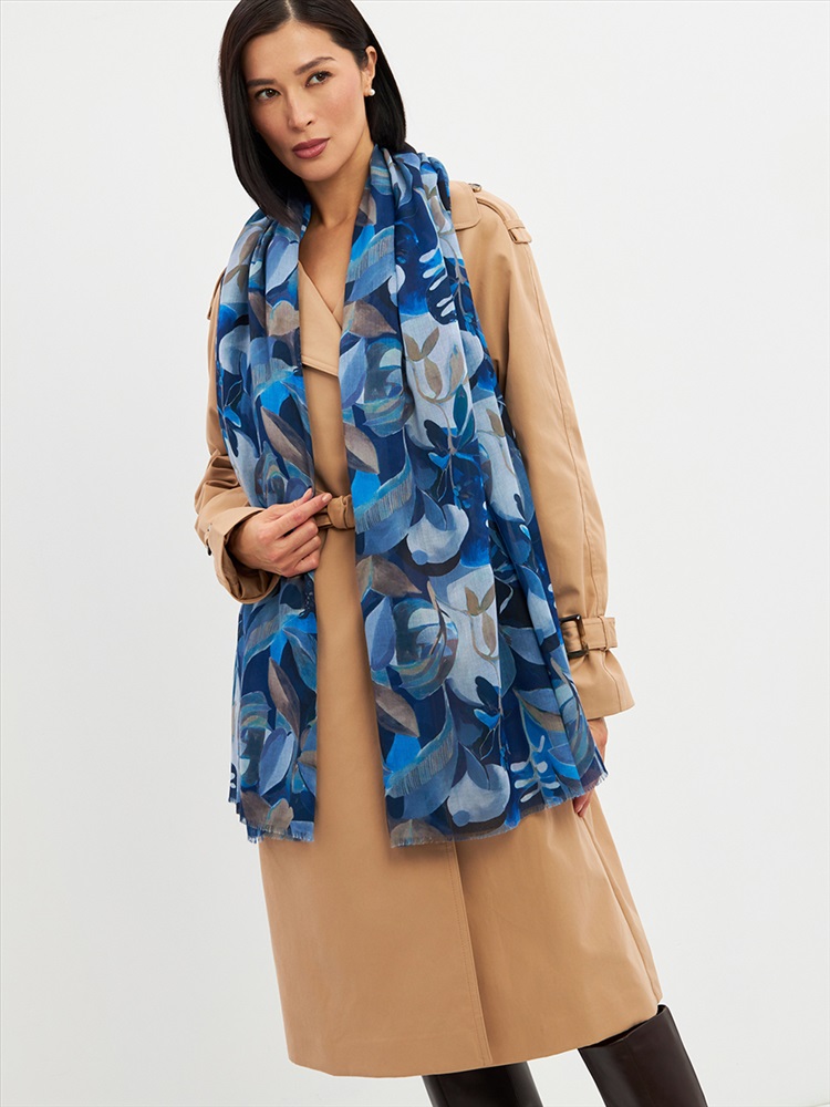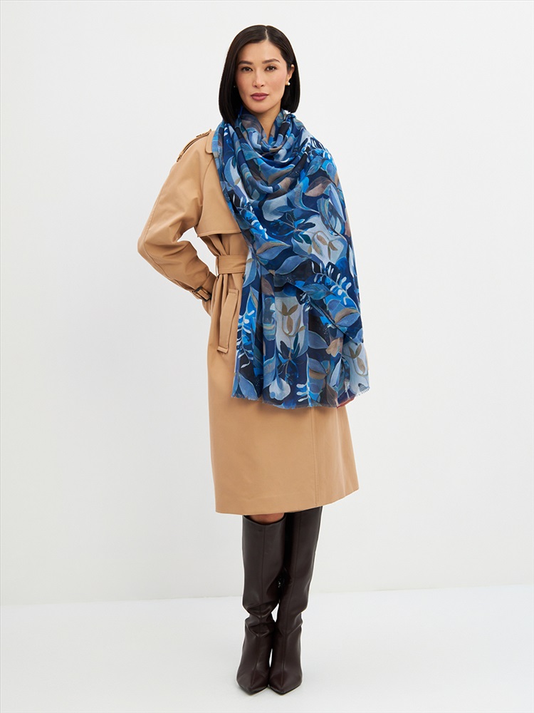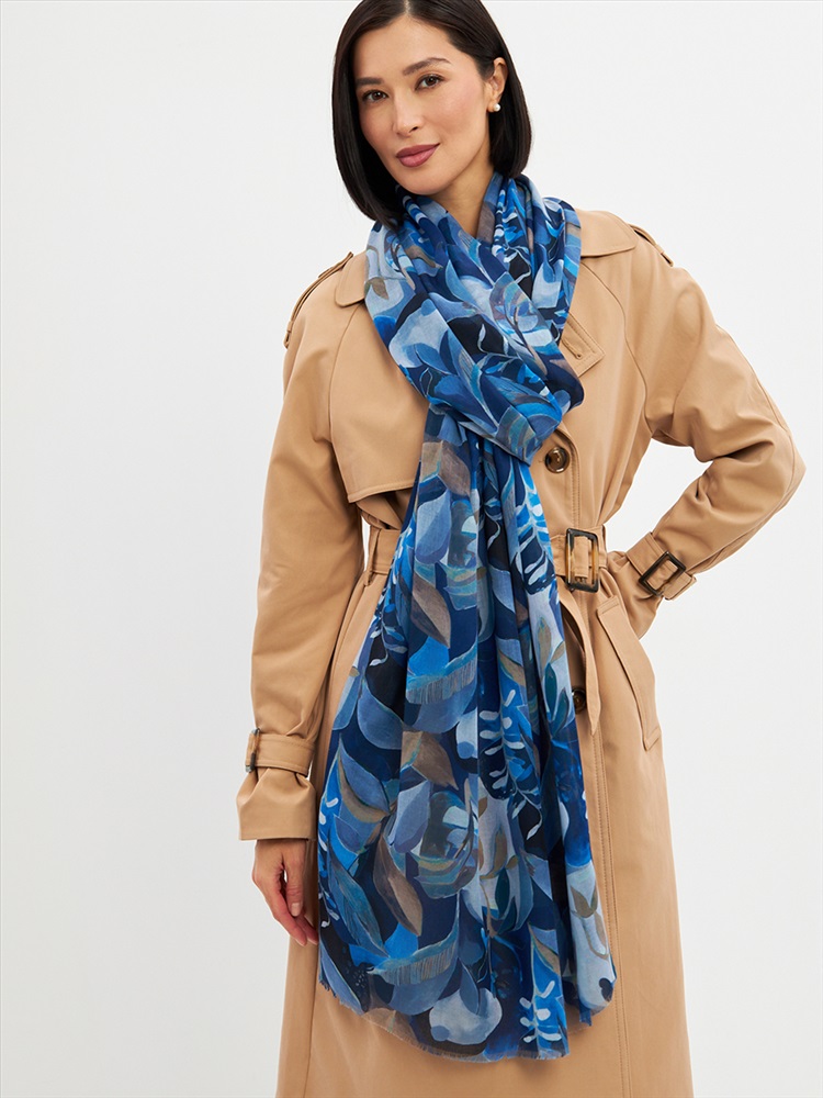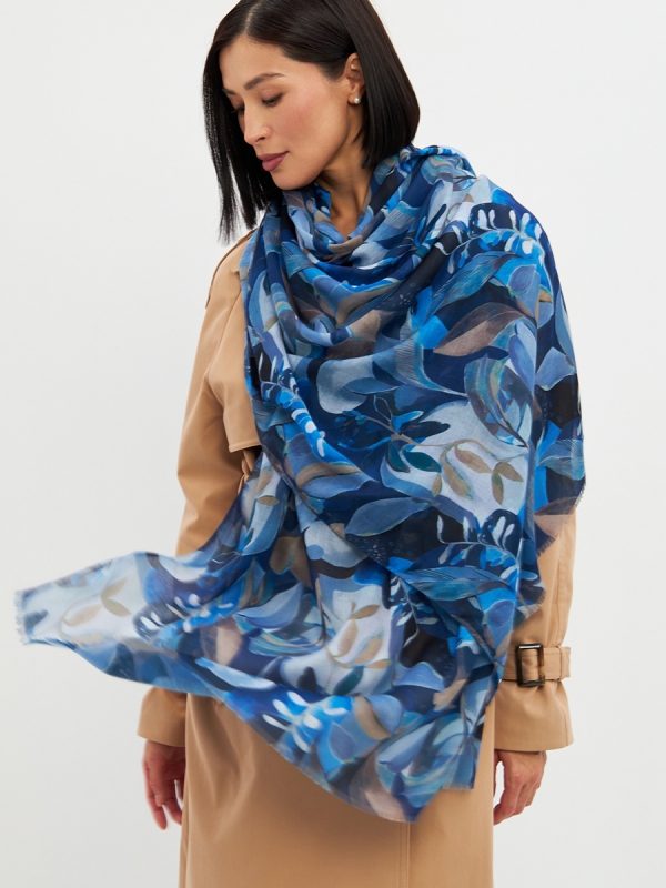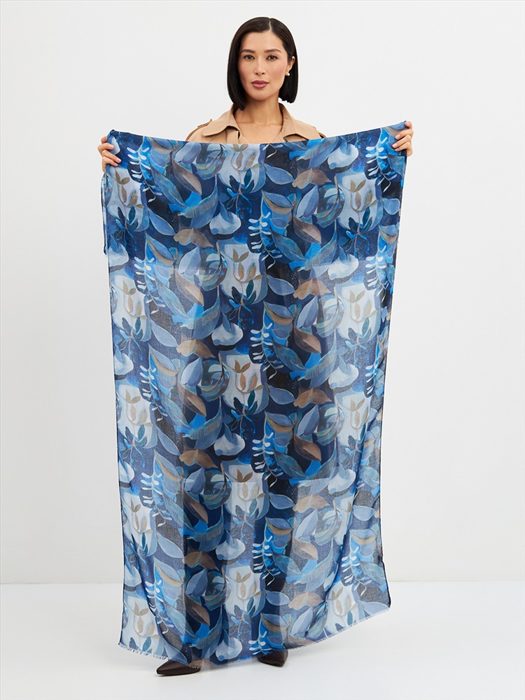 Цвет: Серый, Синий Размер: 80 x 180 см Состав: 55% полиэстер, 35% вискоза, 10% шелк Состав: Вискоза, Полиэстер, Шелк Принт: Цветочный Большой, мягкий, тонкий и очень нежный палантин с рисунком. Края изделия украшены бахромой ручной работы. Машинная деликатная стирка. Комментарии к товару