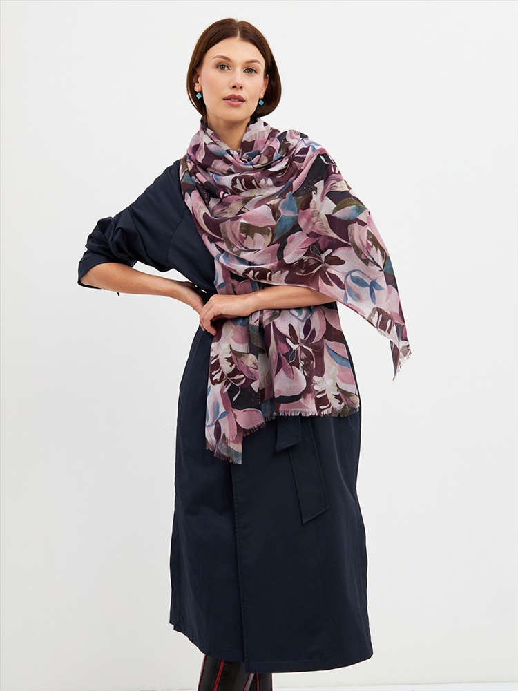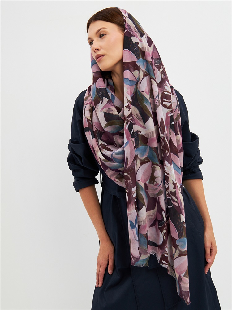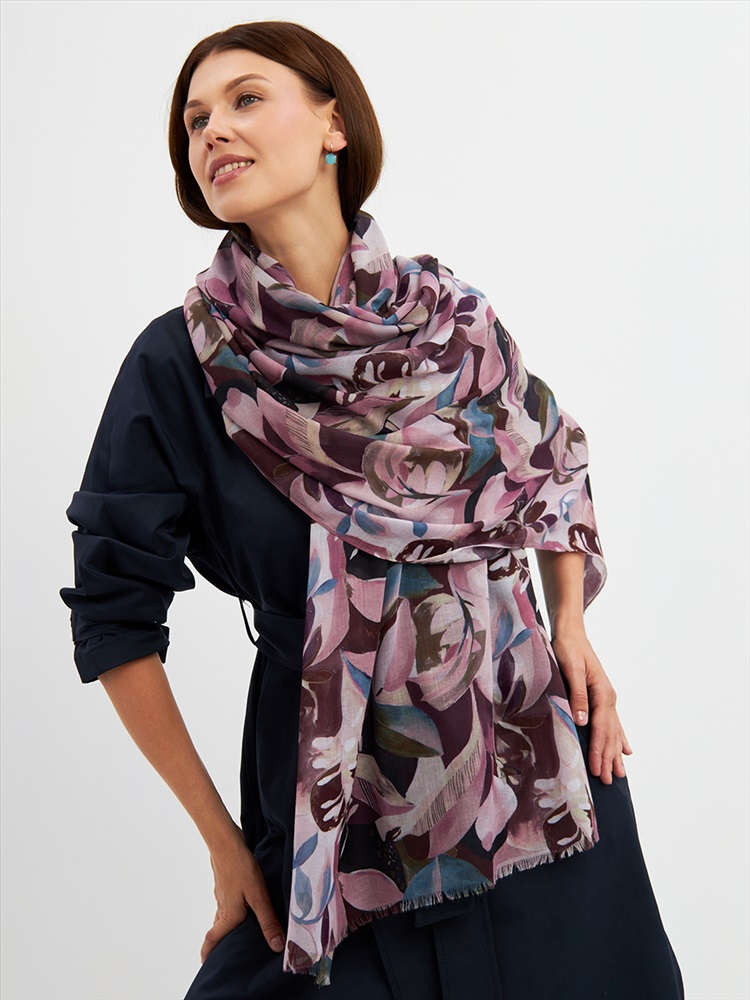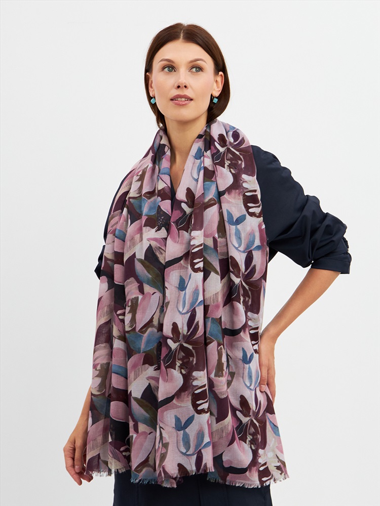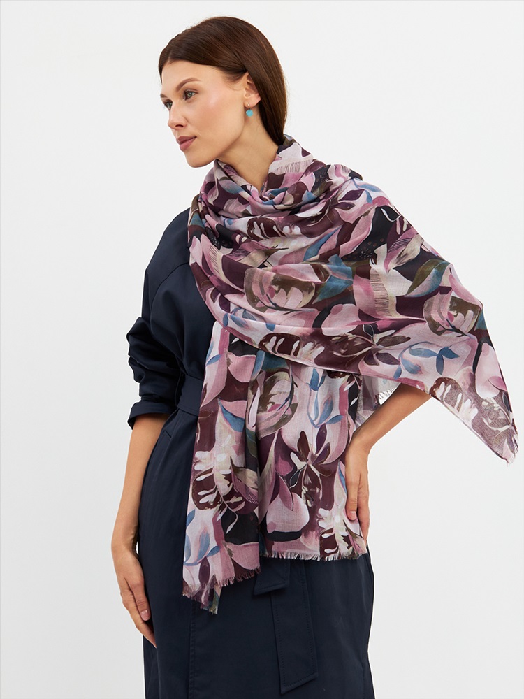 Большой, мягкий, тонкий и очень нежный палантин с рисунком. Края изделия украшены бахромой ручной работы. Машинная деликатная стирка.