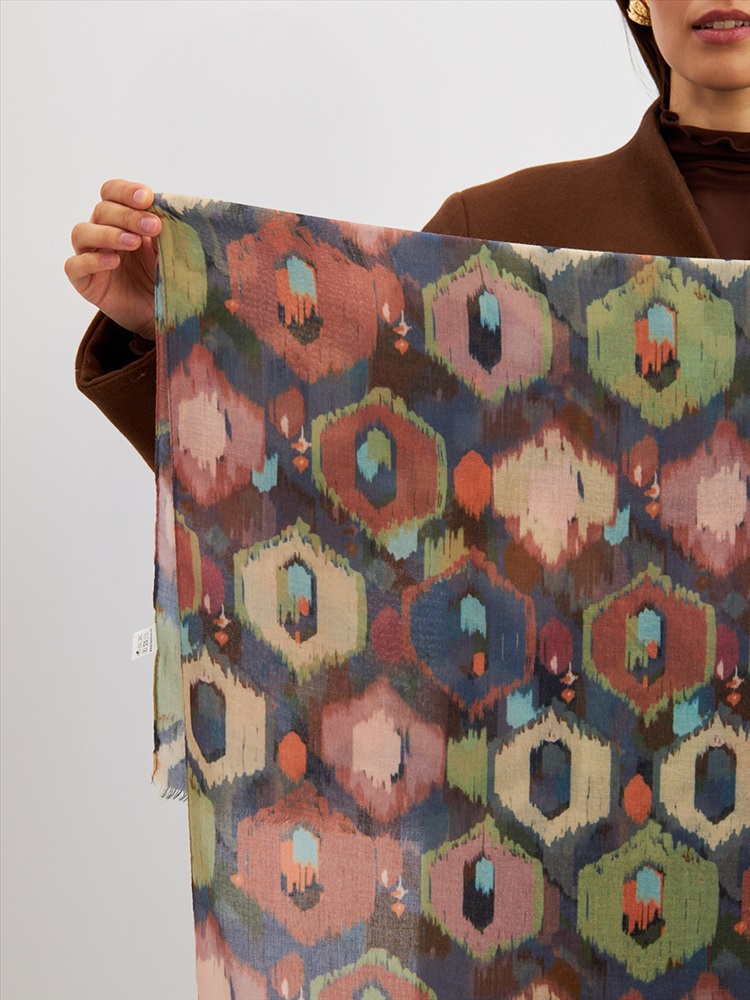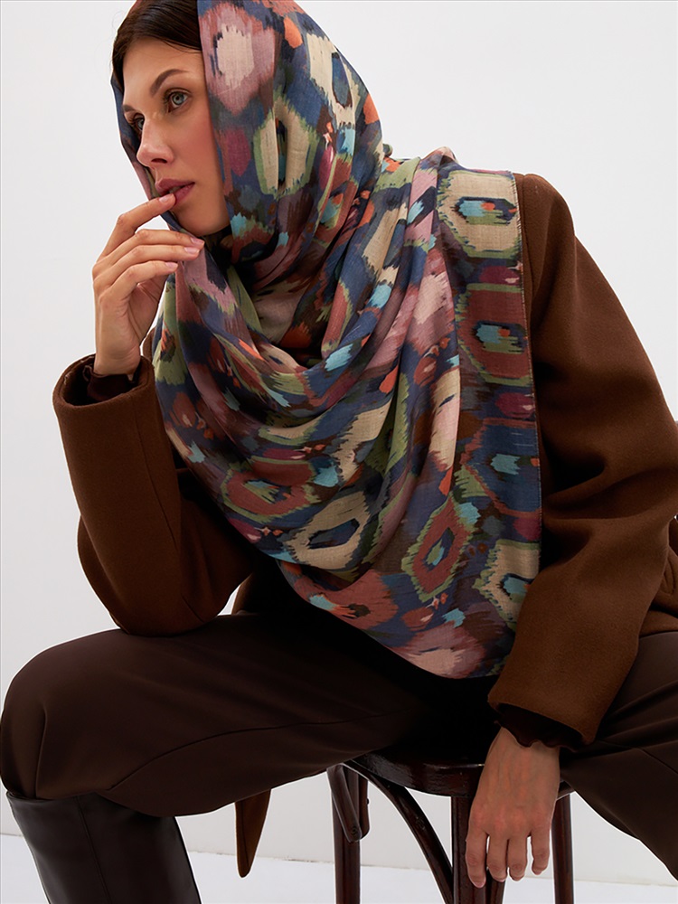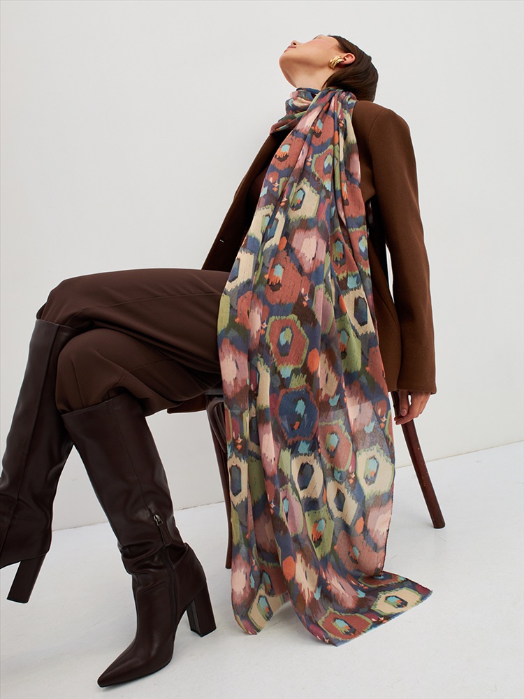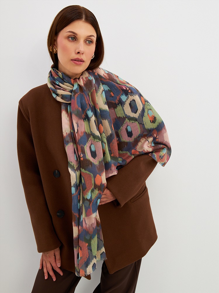 Цвет: Бежевый, Желтый, Зеленый, Коричневый Размер: 80 x 180 см Состав: 55% полиэстер, 35% вискоза, 10% шелк Состав: Вискоза, Полиэстер, Шелк Принт: Абстракция Большой, мягкий, тонкий и очень нежный палантин с рисунком. Края изделия украшены бахромой ручной работы. Машинная деликатная стирка. Комментарии к товару