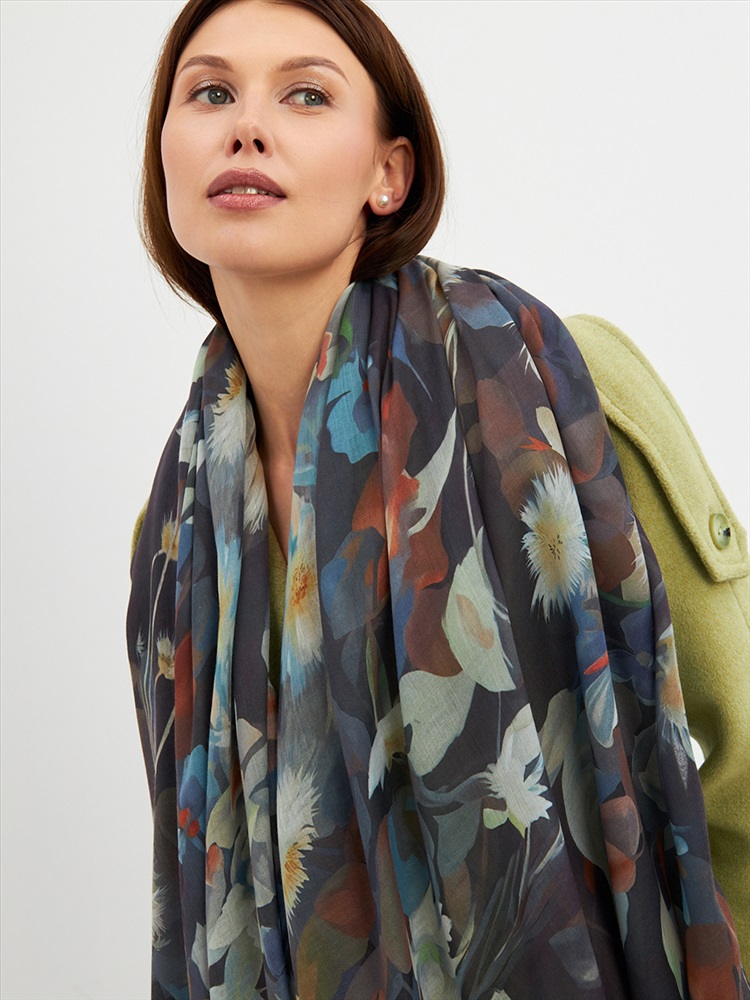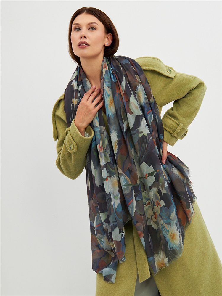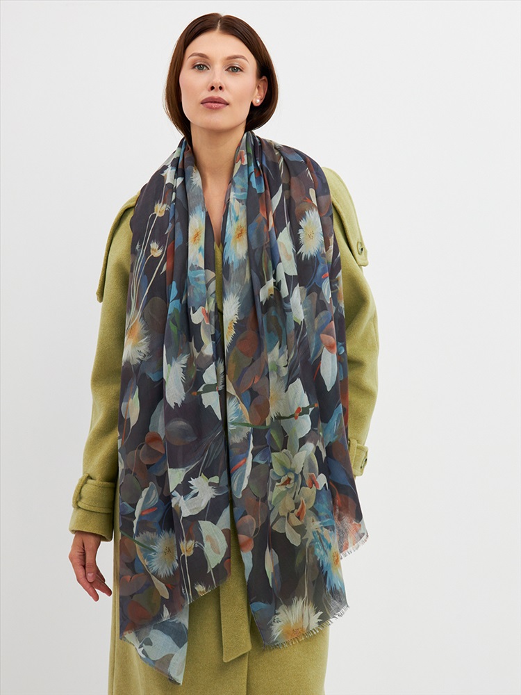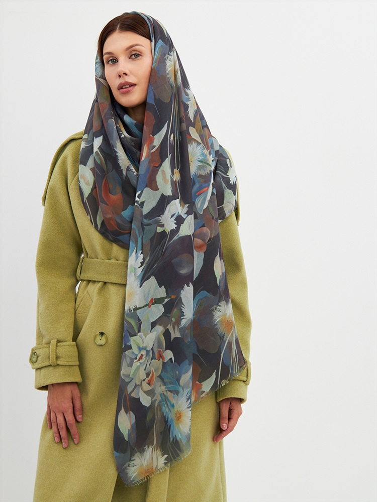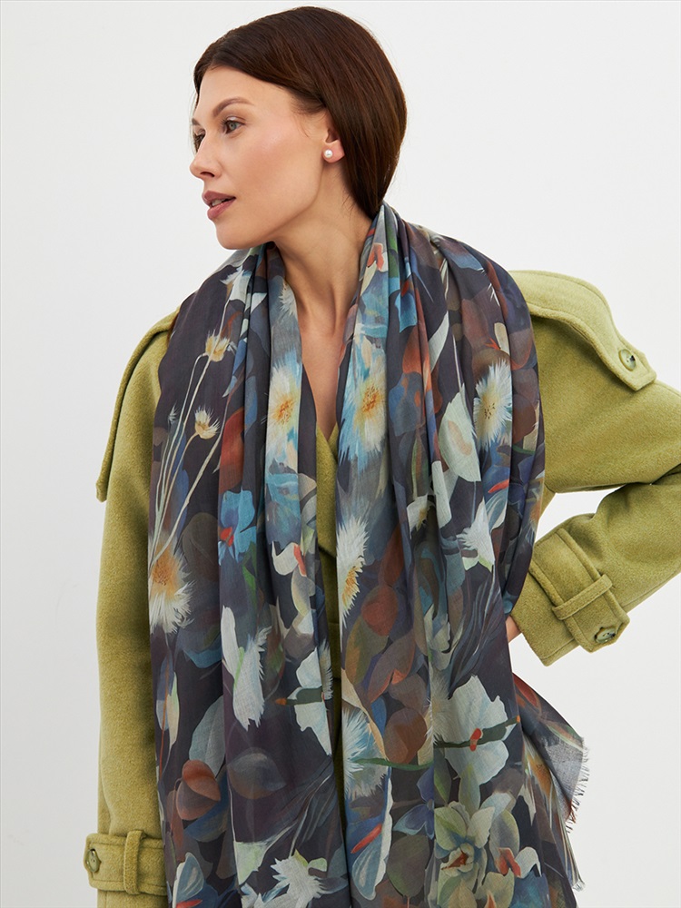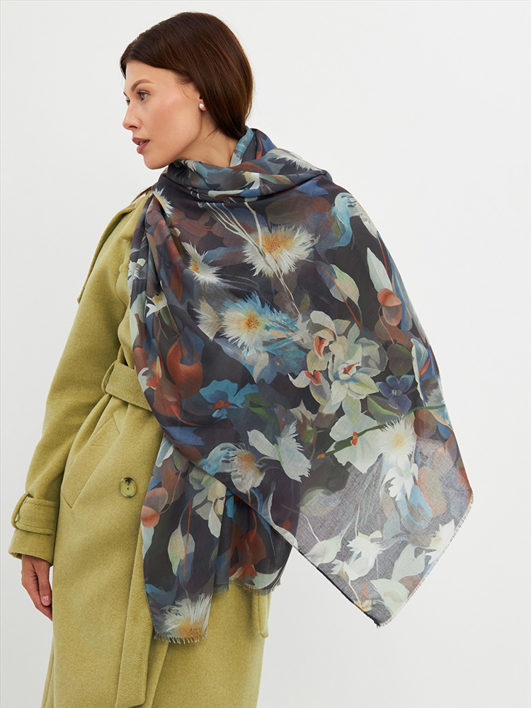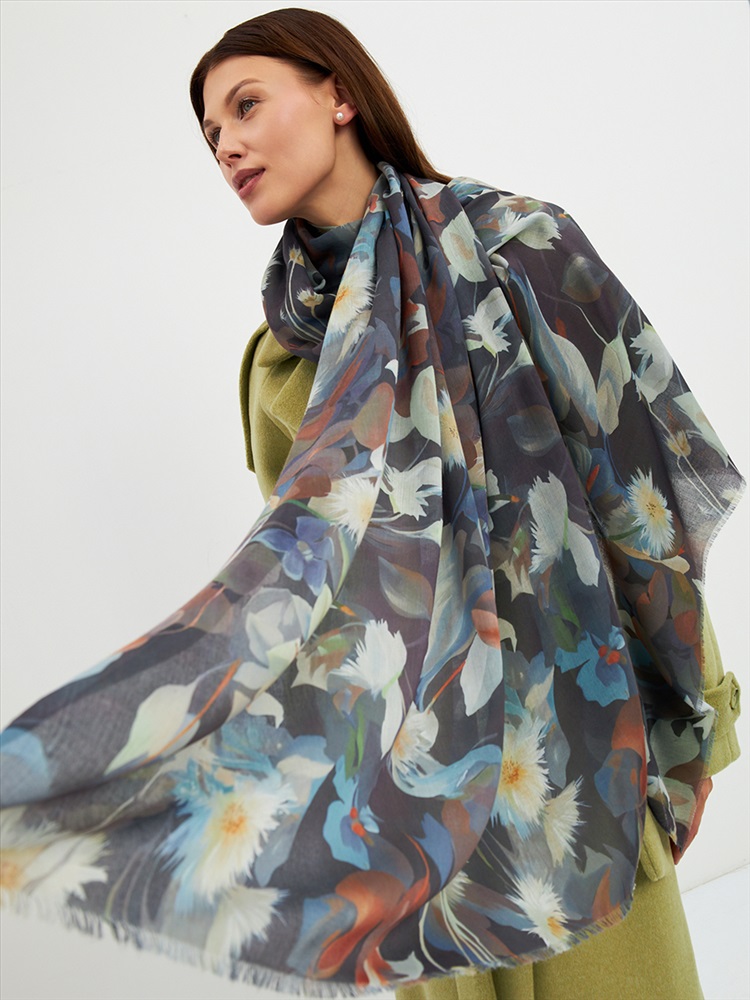 Большой, мягкий, тонкий и очень нежный палантин с рисунком. Края изделия украшены бахромой ручной работы. Машинная деликатная стирка.