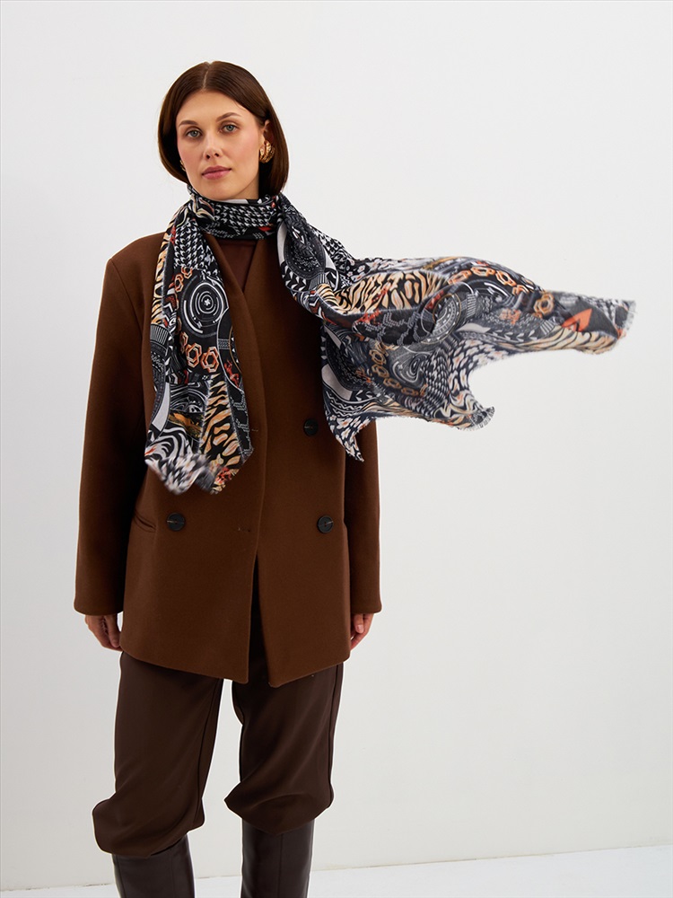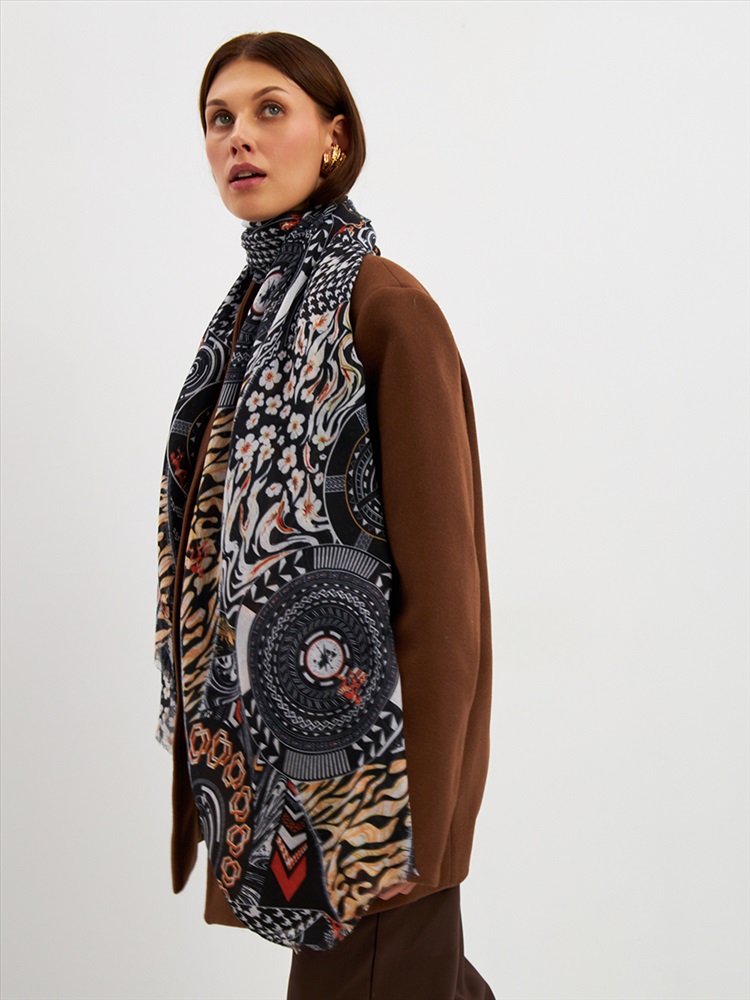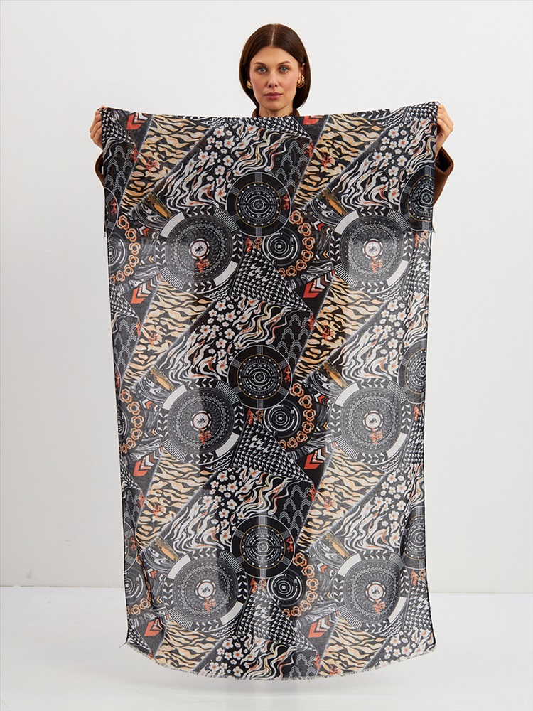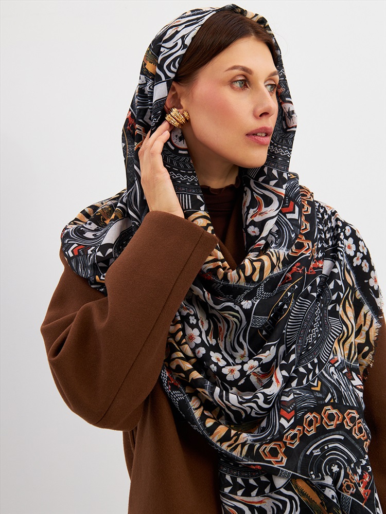 Большой, мягкий, тонкий и очень нежный палантин с рисунком. Края изделия украшены бахромой ручной работы. Машинная деликатная стирка.