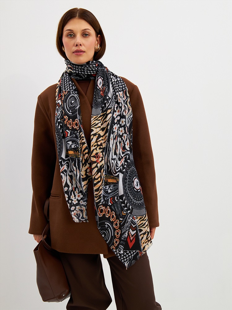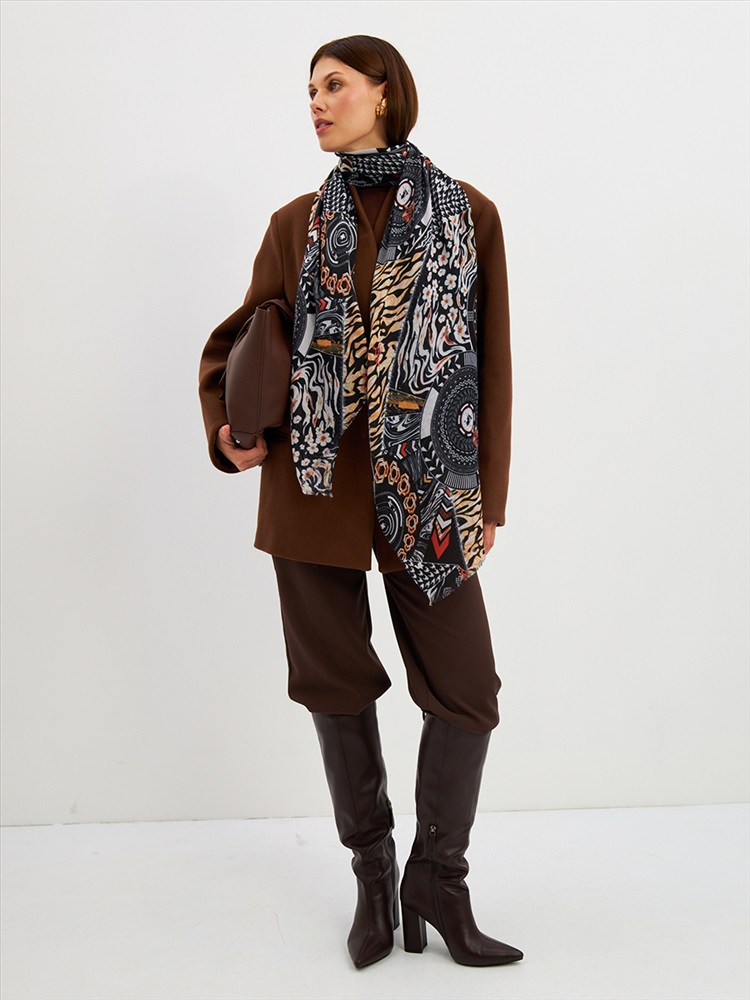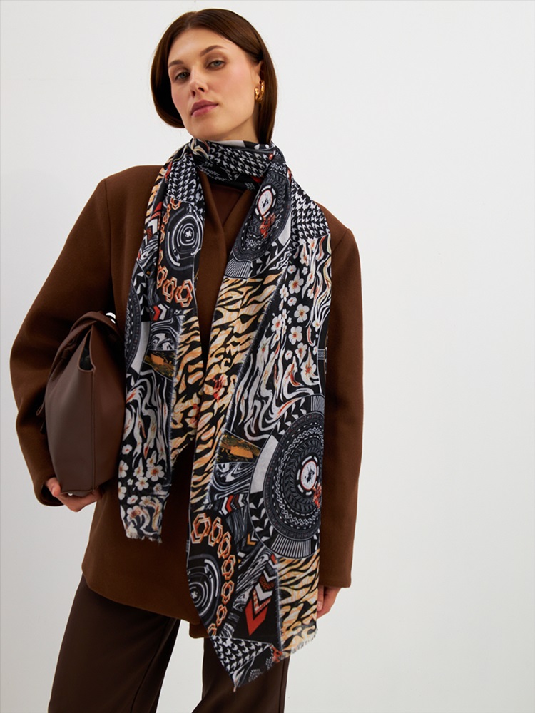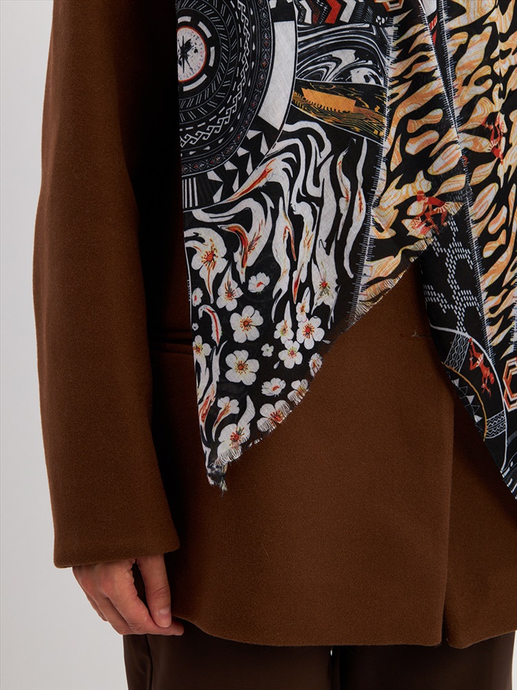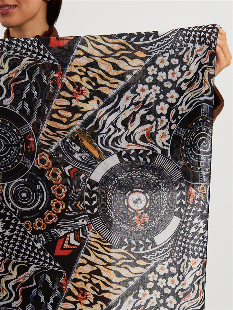 Большой, мягкий, тонкий и очень нежный палантин с рисунком. Края изделия украшены бахромой ручной работы. Машинная деликатная стирка.
