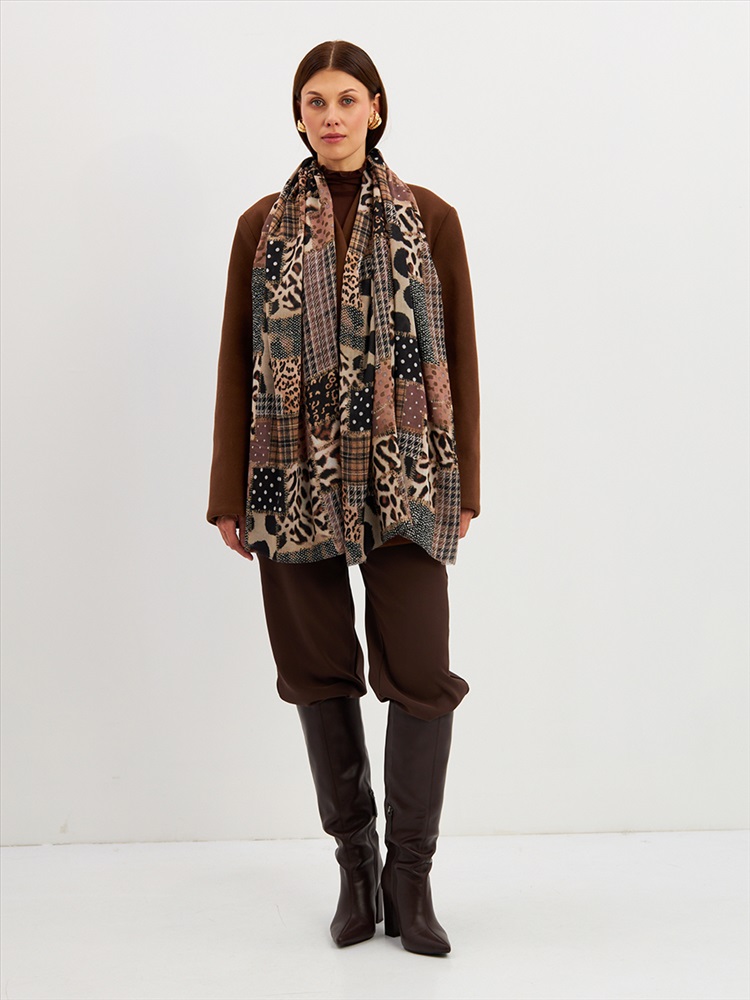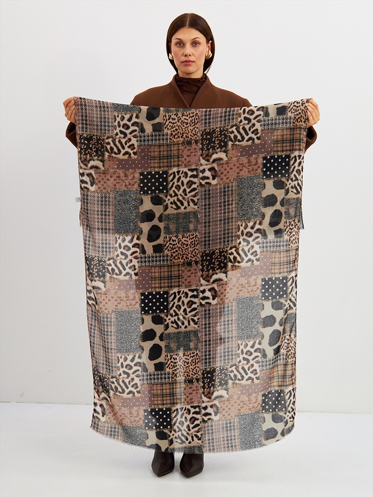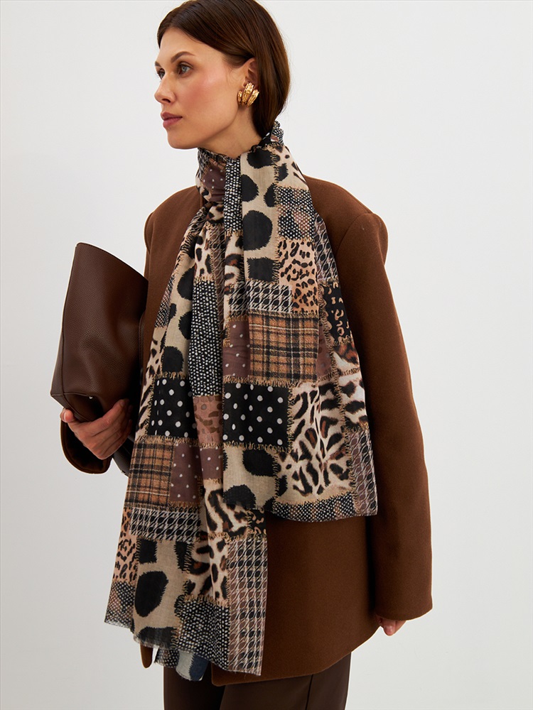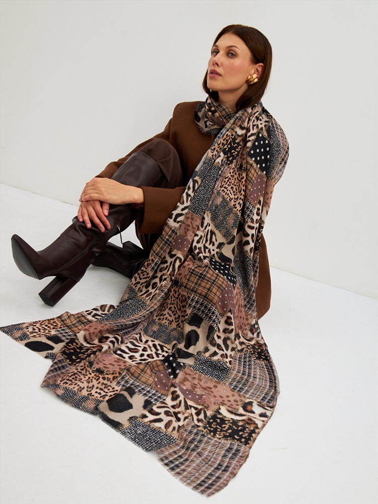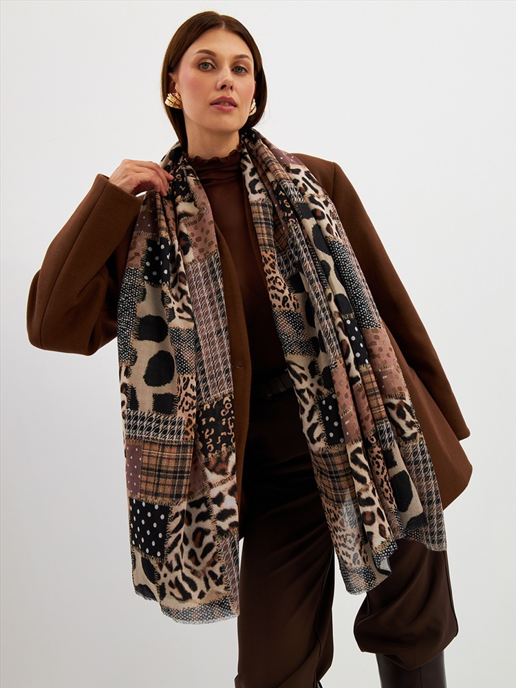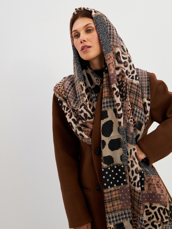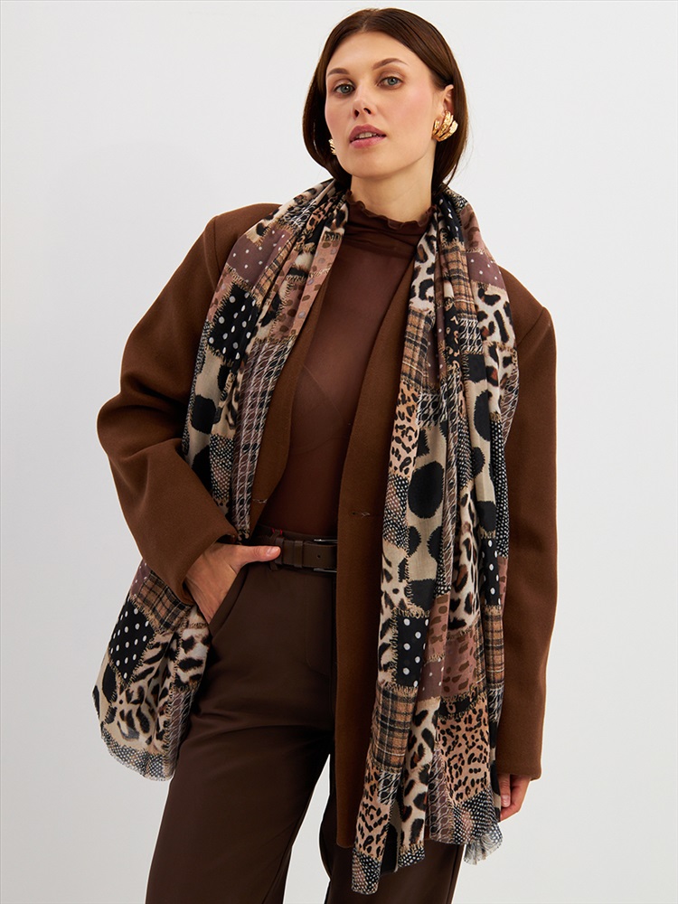 Цвет: Бежевый, Коричневый, Черный Размер: 80 x 180 см Состав: 55% полиэстер, 35% вискоза, 10% шелк Состав: Вискоза, Полиэстер, Шелк Принт: Абстракция Большой, мягкий, тонкий и очень нежный палантин с рисунком. Края изделия украшены бахромой ручной работы. Машинная деликатная стирка. Комментарии к товару