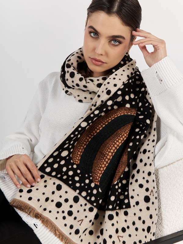 Цвет: Белый, Коричневый, Черный Состав: 65% модал, 20% шерсть, 15% кашемир Состав: Шерсть, Модал, Кашемир Принт: Горох Размер: 65 х 185 см Сезон: Осень, Зима Стиль: Повседневный Большой, мягкий, теплый однотонный двусторонний палантин. Только ручная стирка. Комментарии к товару