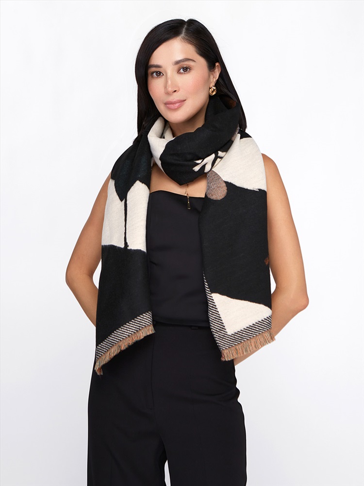 Цвет: Бежевый, Белый, Черный Состав: 65% модал, 20% шерсть, 15% кашемир Состав: Шерсть, Модал, Кашемир Принт: Абстракция Размер: 65 х 185 см Сезон: Осень, Зима Стиль: Повседневный Большой, мягкий, теплый однотонный двусторонний палантин. Только ручная стирка. Комментарии к товару