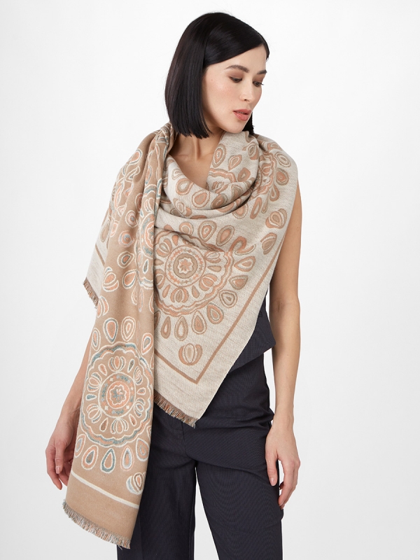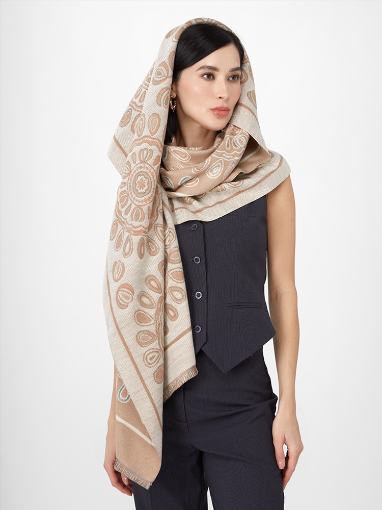 Цвет: Бежевый, Персик Состав: 65% модал, 20% шерсть, 15% кашемир Состав: Шерсть, Модал, Кашемир Принт: Семечки Размер: 65 x 180 cм Сезон: Демисезон, Осень, Весна Стиль: Повседневный Большой, мягкий, теплый двусторонний палантин. Только ручная стирка. Комментарии к товару