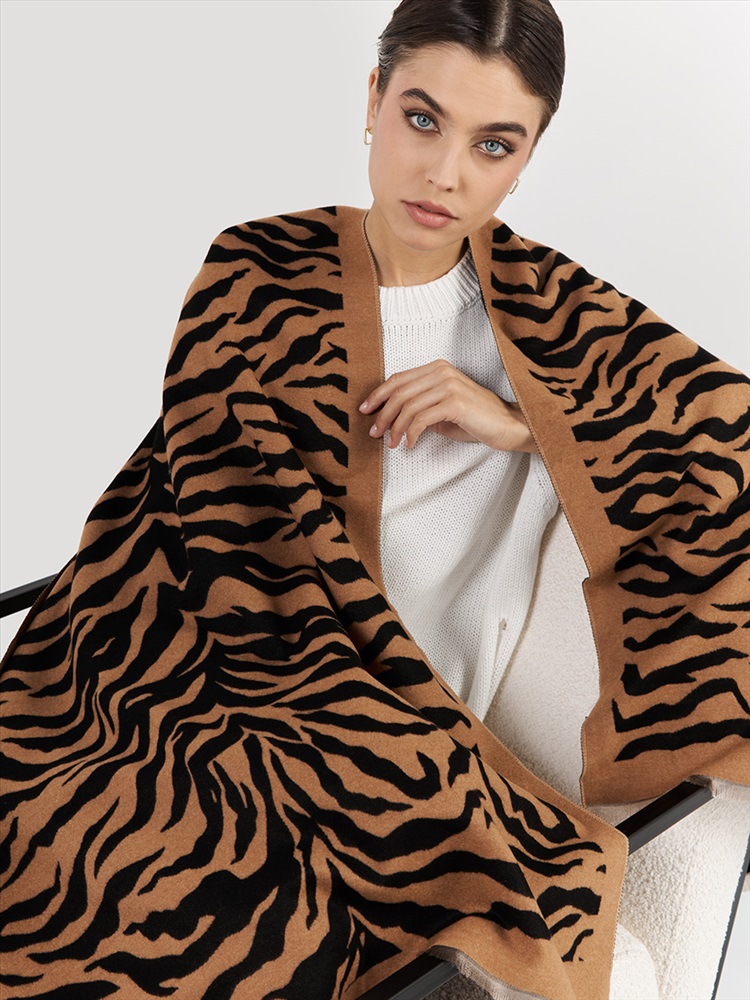 Цвет: Коричневый, Черный Состав: 45% модал, 20% вискоза, 20% шерсть, 15% кашемир Состав: Вискоза, Шерсть, Модал, Кашемир Принт: Животный (зебра) Размер: 65 х 180 см Сезон: Осень, Зима Стиль: Повседневный Большой, мягкий, теплый однотонный двусторонний палантин. Только ручная стирка. Комментарии к товару