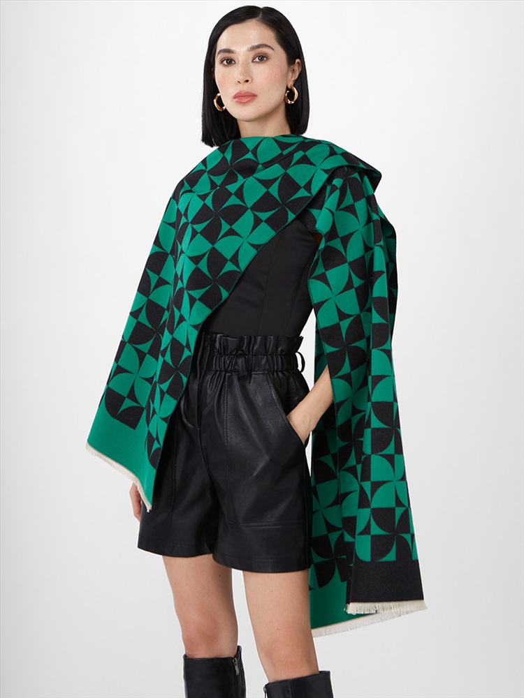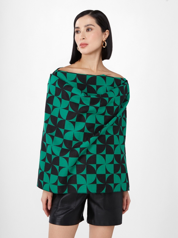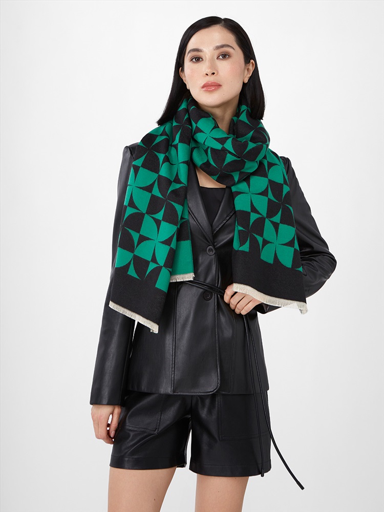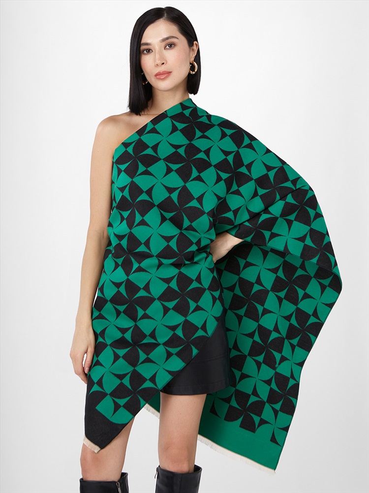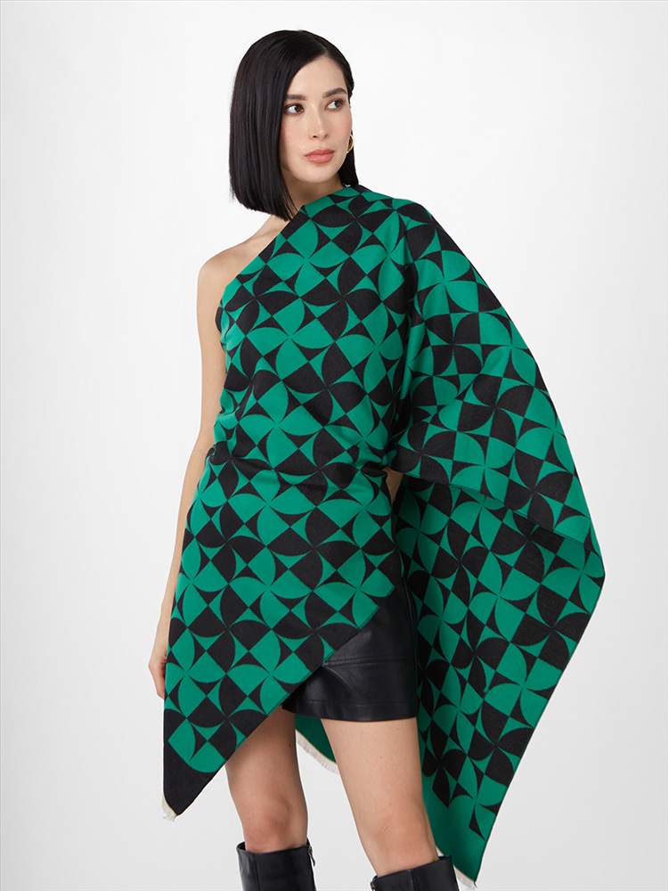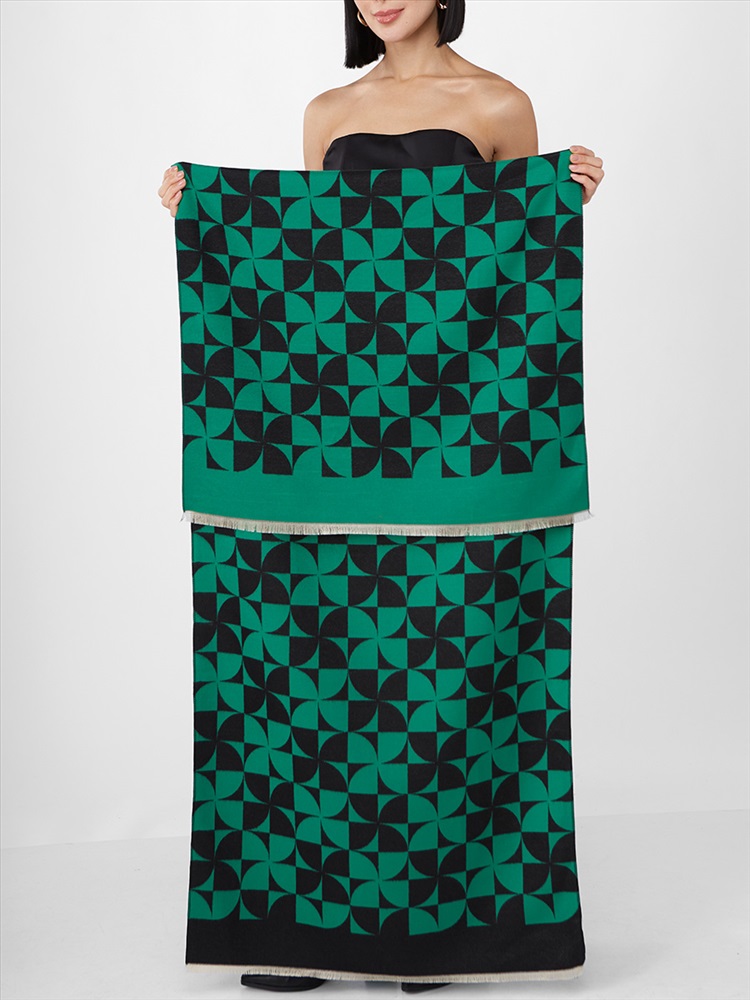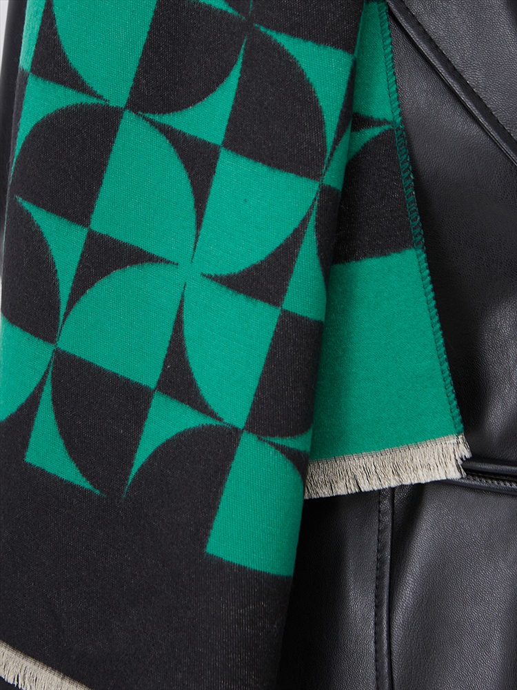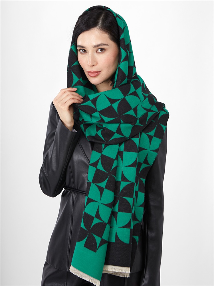 Цвет: Зеленый, Черный Состав: 45% модал, 20% вискоза, 20% шерсть, 15% кашемир Состав: Вискоза, Шерсть, Модал, Кашемир Принт: Геометрический Размер: 65 х 180 см Сезон: Осень, Зима Стиль: Повседневный Большой, мягкий, теплый однотонный двусторонний палантин. Только ручная стирка. Комментарии к товару