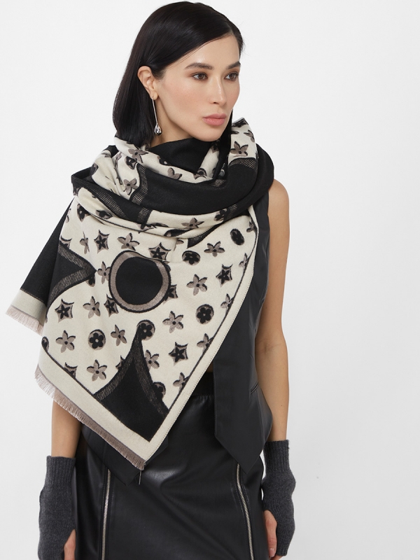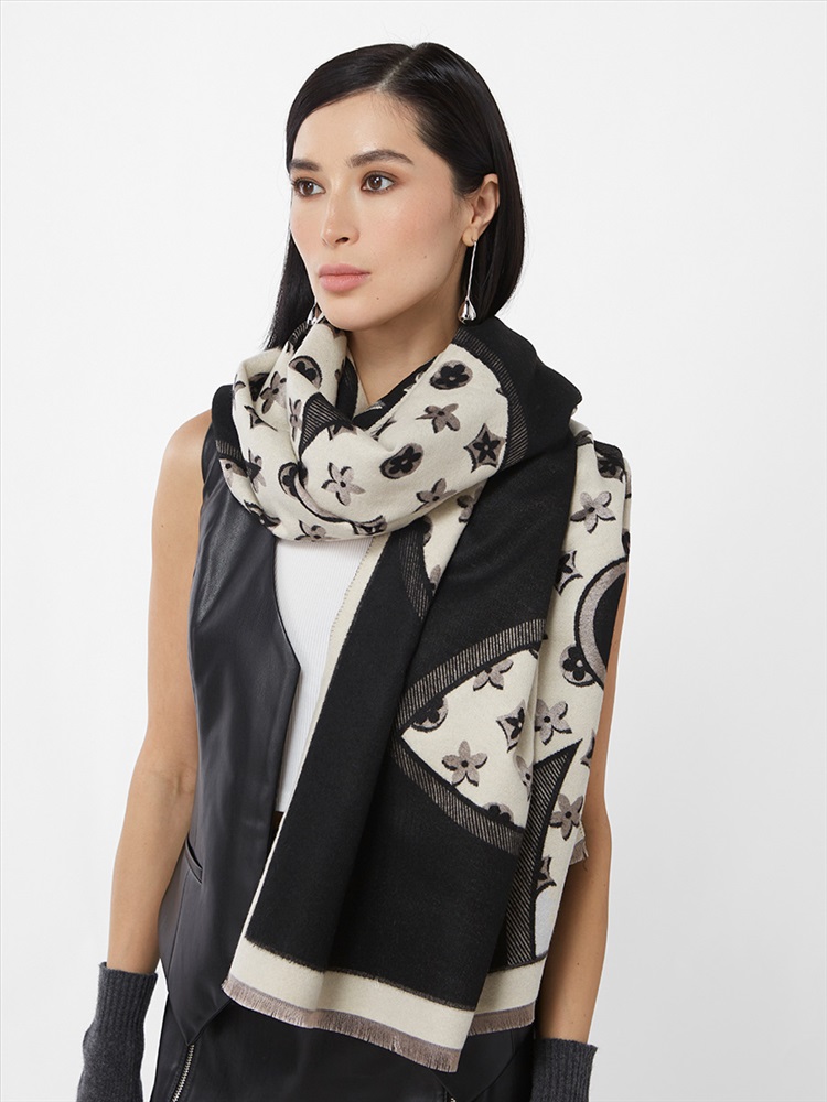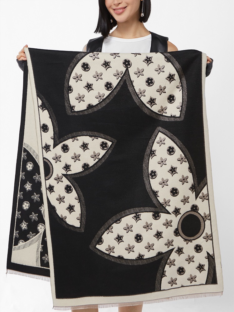Цвет: Молочный, Черный Состав: 45% модал, 20% вискоза, 20% шерсть, 15% кашемир Состав: Вискоза, Шерсть, Модал, Кашемир Принт: Цветочный Размер: 65 х 180 см Сезон: Осень, Зима Стиль: Повседневный Большой, мягкий, теплый однотонный двусторонний палантин. Только ручная стирка. Комментарии к товару