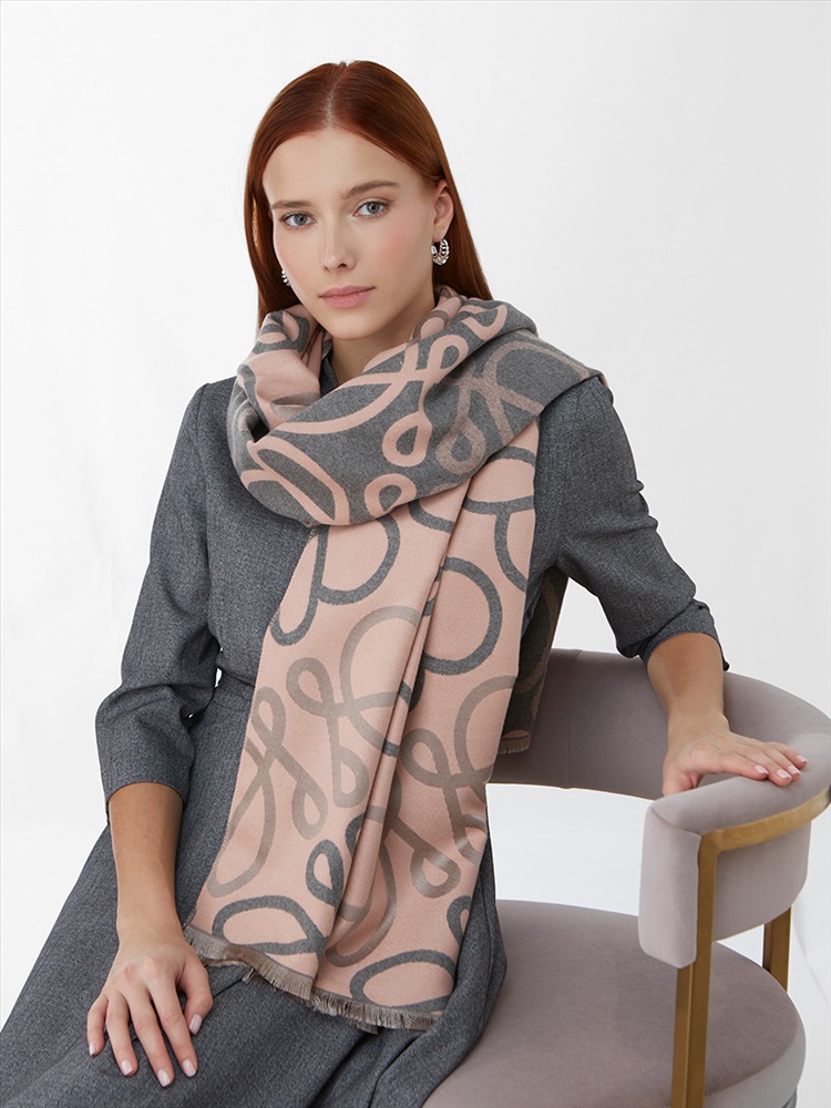 Цвет: Розовый, Светло-серый Состав: 45% модал, 20% вискоза, 20% шерсть, 15% кашемир Состав: Вискоза, Шерсть, Модал, Кашемир Принт: Узор Размер: 65 х 180 см Сезон: Осень, Зима Стиль: Повседневный Большой, мягкий, теплый однотонный двусторонний палантин. Только ручная стирка. Комментарии к товару