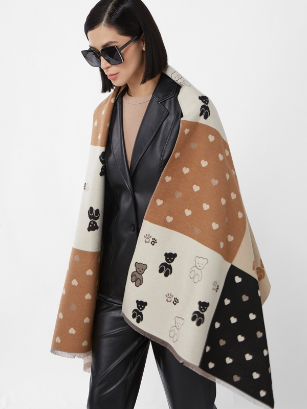 Цвет: Бежевый, Капучино, Черный Состав: 45% модал, 20% вискоза, 20% шерсть, 15% кашемир Состав: Вискоза, Шерсть, Модал, Кашемир Принт: Сюжетный Размер: 65 х 180 см Сезон: Осень, Зима Стиль: Повседневный Большой, мягкий, теплый однотонный двусторонний палантин. Только ручная стирка. Комментарии к товару
