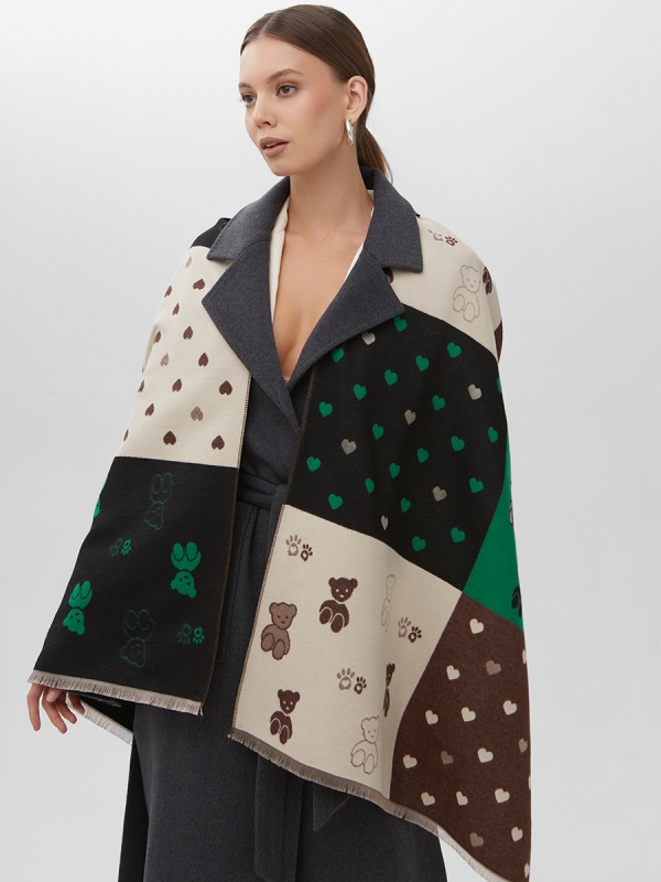 Цвет: Бежевый, Изумрудно-зеленый, Кофейный, Черный Состав: 45% модал, 20% вискоза, 20% шерсть, 15% кашемир Состав: Вискоза, Шерсть, Модал, Кашемир Принт: Абстракция Размер: 65 х 180 см Сезон: Осень, Зима Стиль: Повседневный Большой, мягкий, теплый однотонный двусторонний палантин. Только ручная стирка. Комментарии к товару