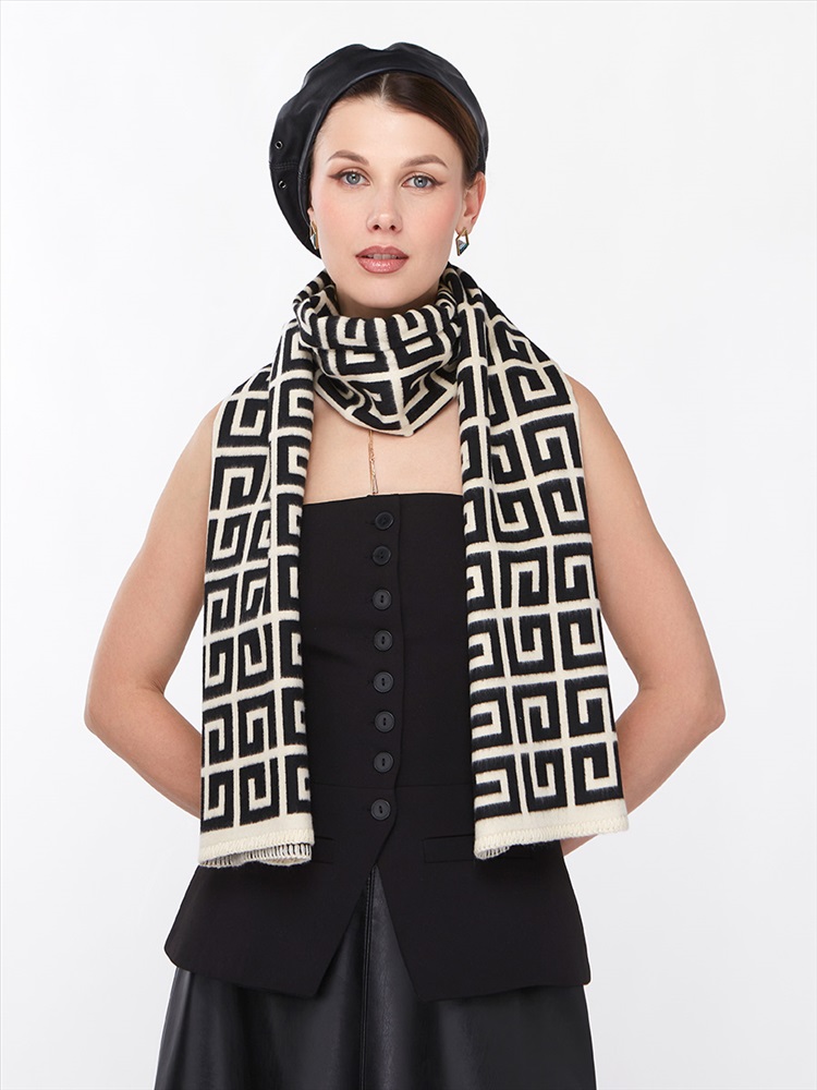 Цвет: Бежевый, Черный Состав: 40% полиэстер, 35% вискоза, 15% шерсть, 10% кашемир Состав: Вискоза, Полиэстер, Шерсть, Кашемир Принт: Абстракция Размер: 52 х 185 см Сезон: Осень, Зима Стиль: Повседневный Большой, мягкий, теплый однотонный двусторонний палантин. Только ручная стирка. Комментарии к товару