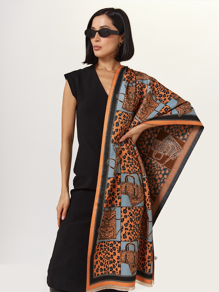 Цвет: Оранжевый, Серый, Черный Состав: 65% модал, 20% шерсть, 15% кашемир Состав: Шерсть, Модал, Кашемир Принт: Абстракция Размер: 65 х 188 см Сезон: Осень, Зима Стиль: Повседневный Большой, мягкий, теплый однотонный двусторонний палантин. Только ручная стирка. Комментарии к товару