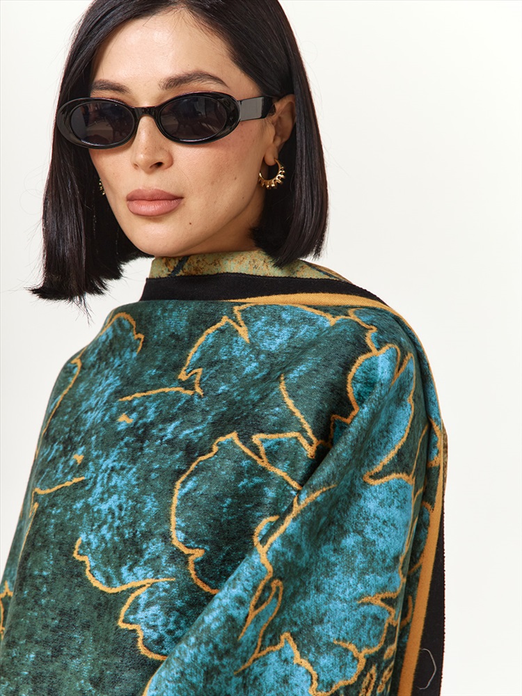 Цвет: Бирюзовый, Зеленый, Черный Состав: 65% вискоза, 20% шерсть, 15% кашемир Состав: Вискоза, Шерсть, Кашемир Принт: Абстракция Размер: 75 х 180 см Сезон: Осень, Зима Стиль: Повседневный Большой, мягкий, теплый однотонный двусторонний палантин. Только ручная стирка. Комментарии к товару