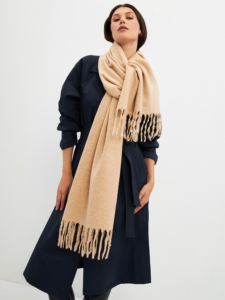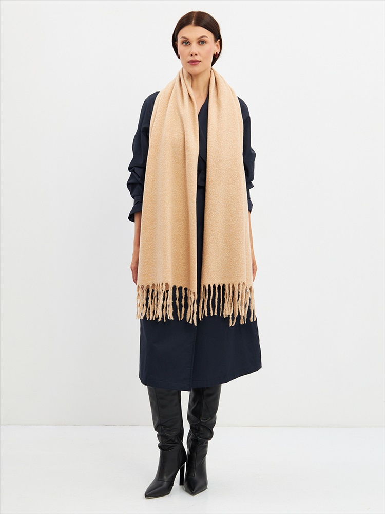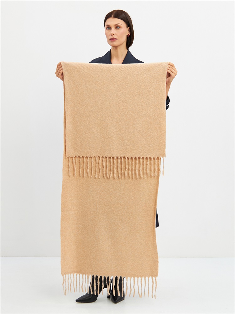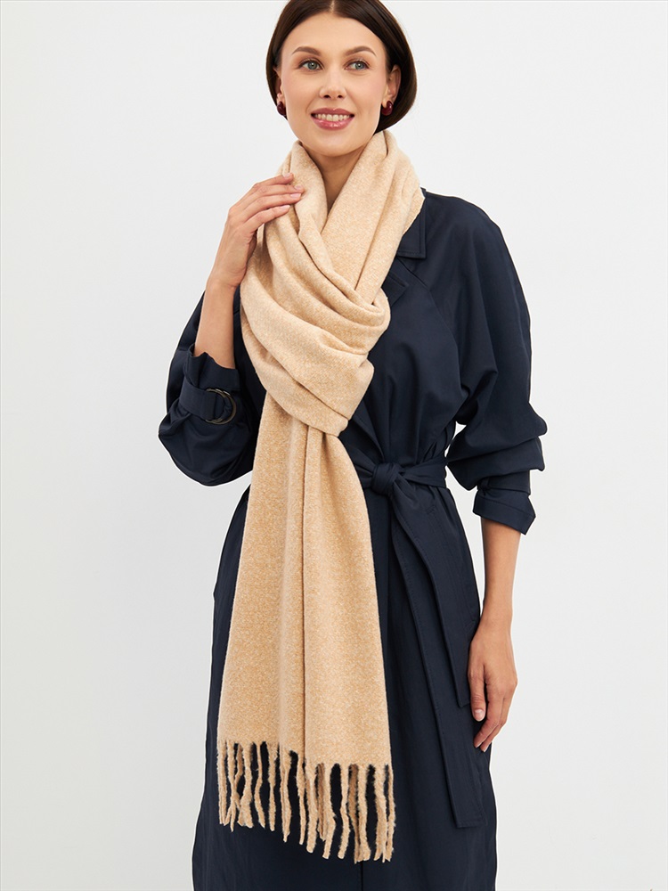 Цвет: Бежевый, Лососевый, Молочный Состав: Шерсть 10% Модал 55% Вискоза 35% Состав: Вискоза, Шерсть, Модал Принт: Однотонный, Меланж Размер: 180 x 70 см Большой, мягкий, теплый двусторонний однотонный палантин. Края изделия украшены бахромой. Машинная деликатная стирка. Комментарии к товару