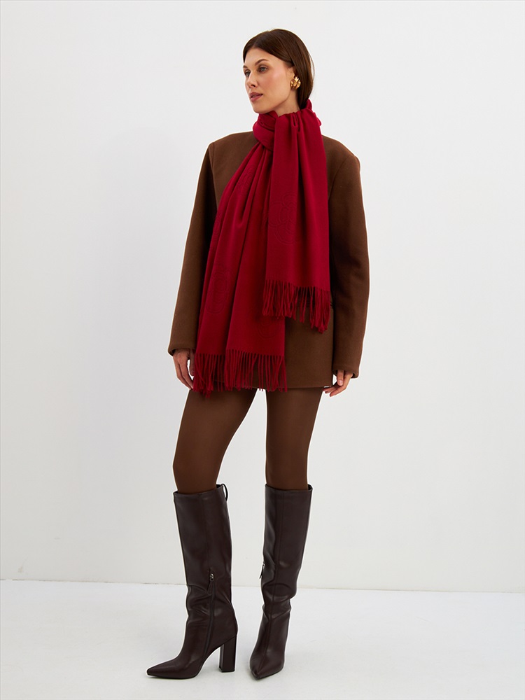 Размер: 180 x 70 см Большой, мягкий, теплый двусторонний однотонный палантин с принтом-печатью. Края изделия украшены бахромой. Машинная деликатная стирка.