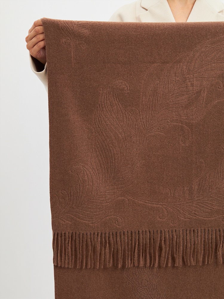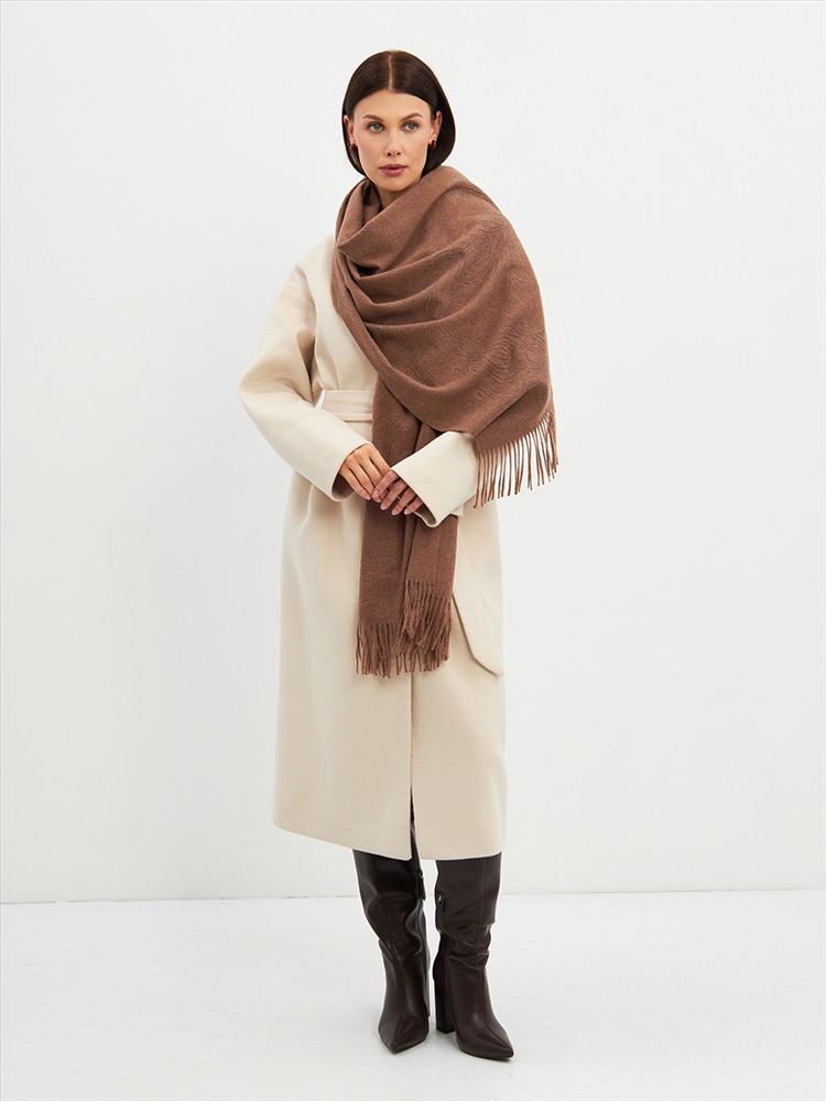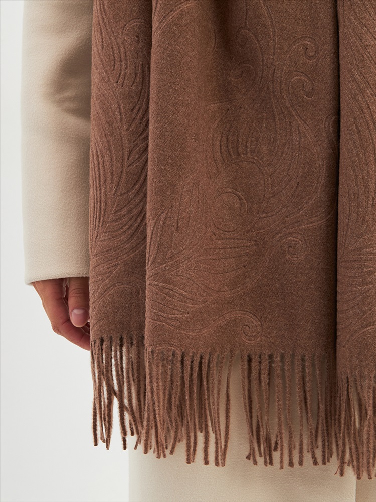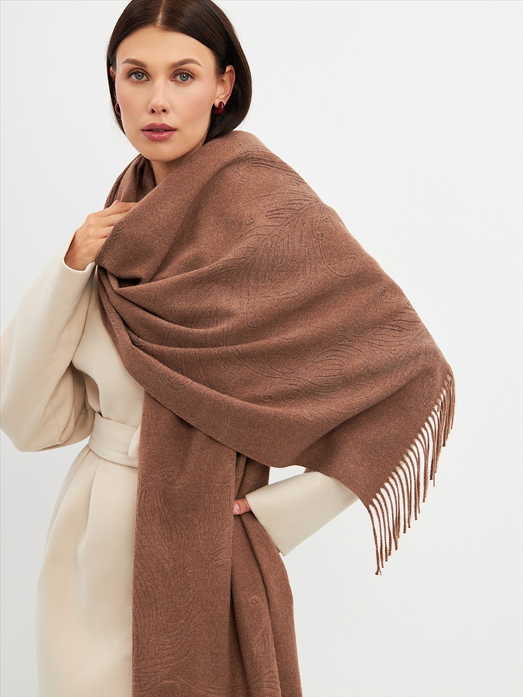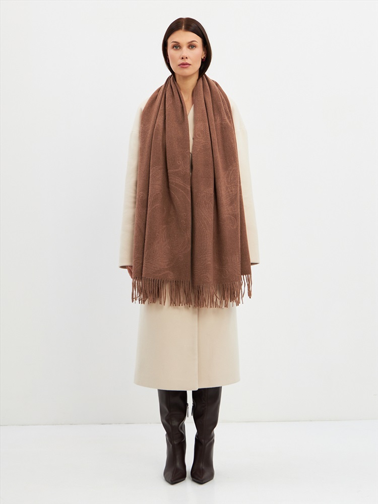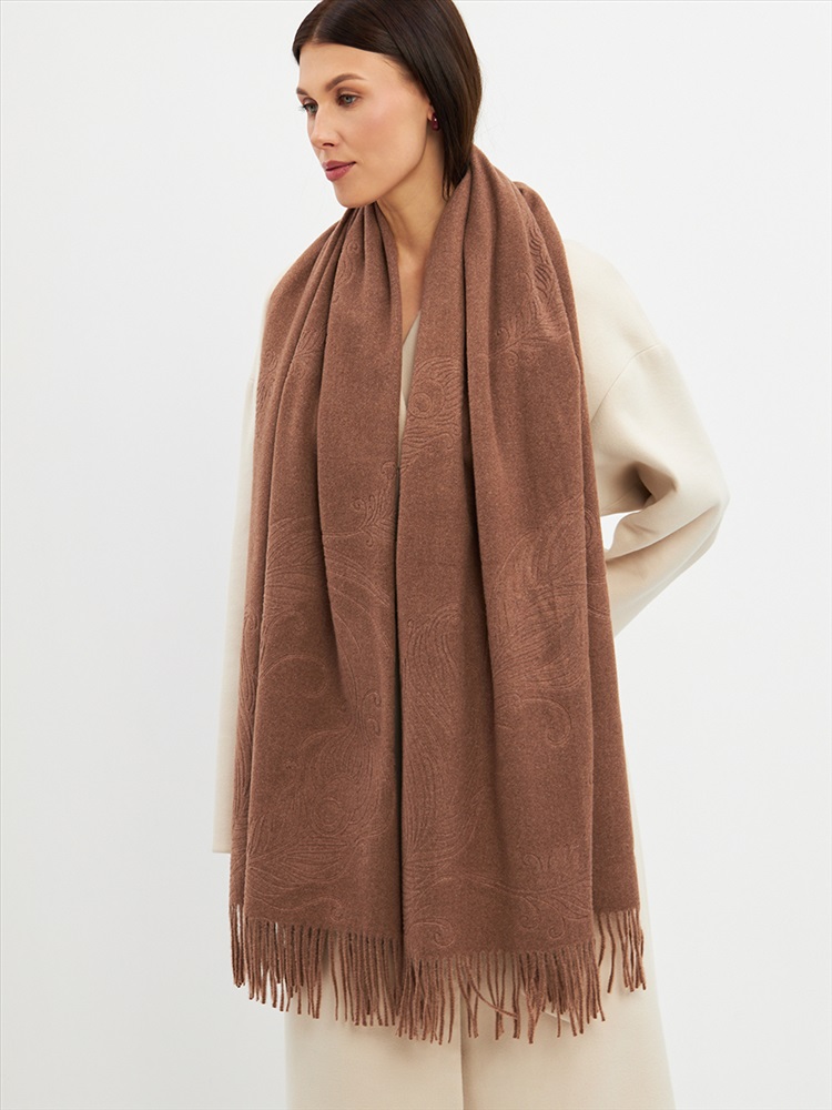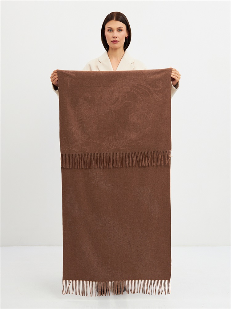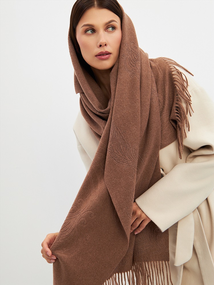 Размер: 180 x 70 см Большой, мягкий, теплый двусторонний однотонный палантин с принтом-печатью. Края изделия украшены бахромой. Машинная деликатная стирка.