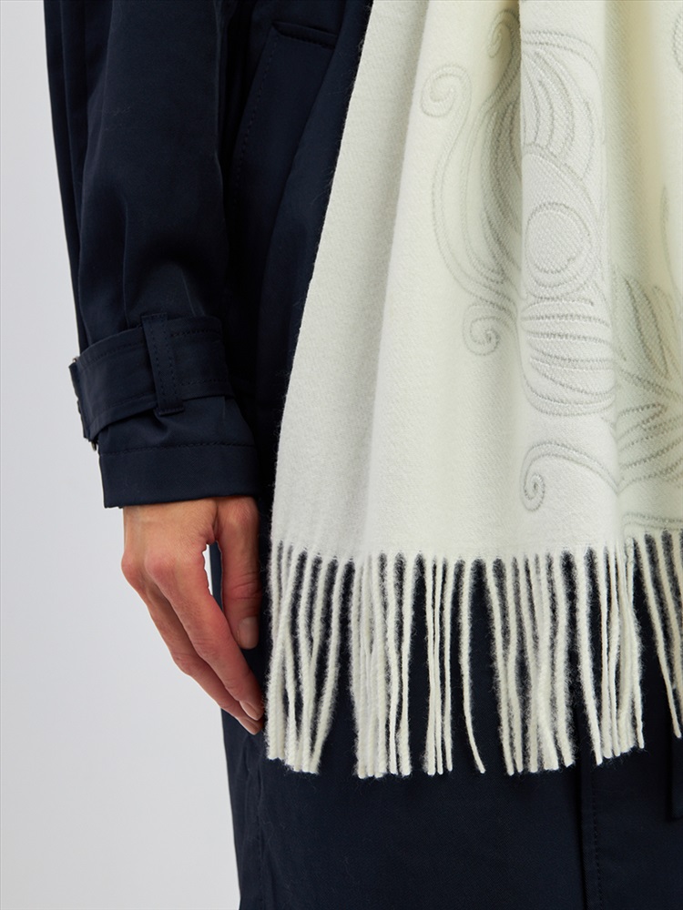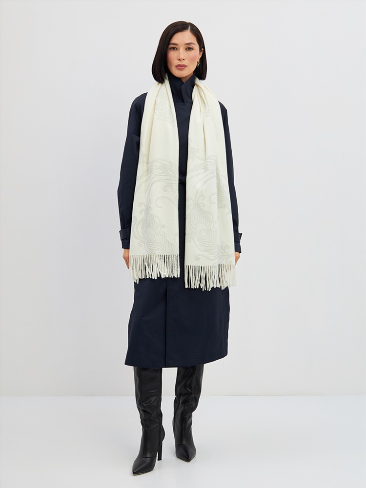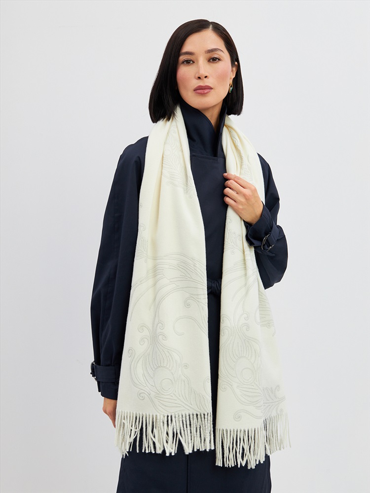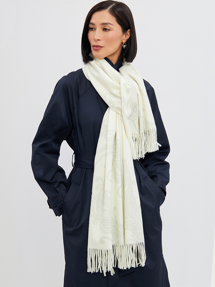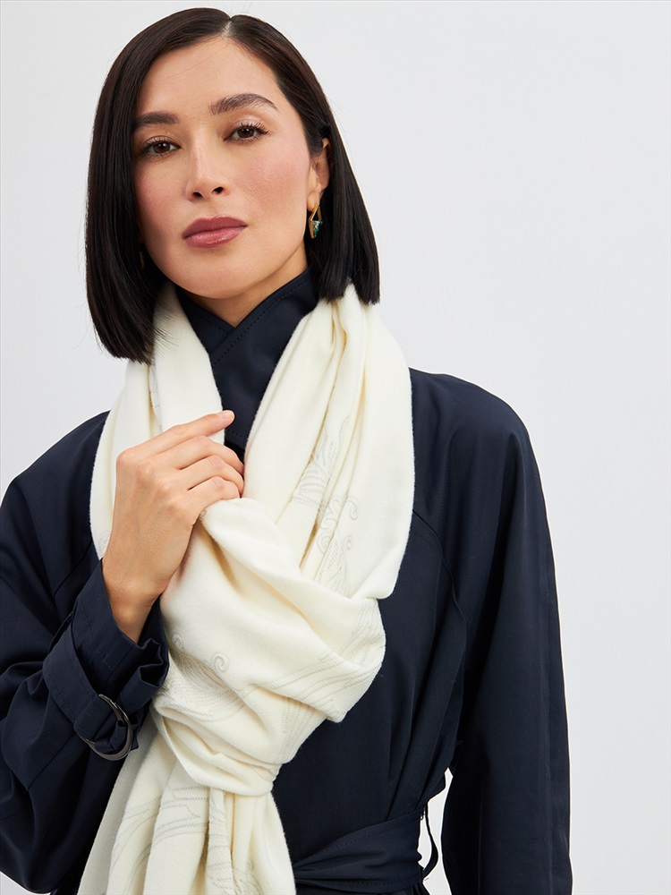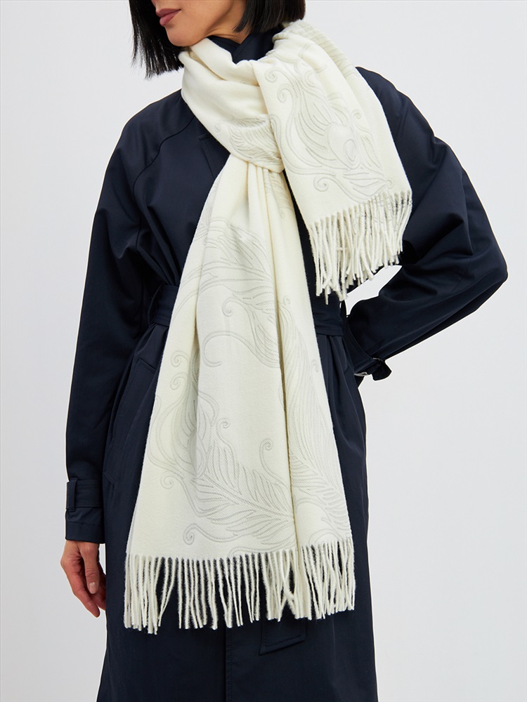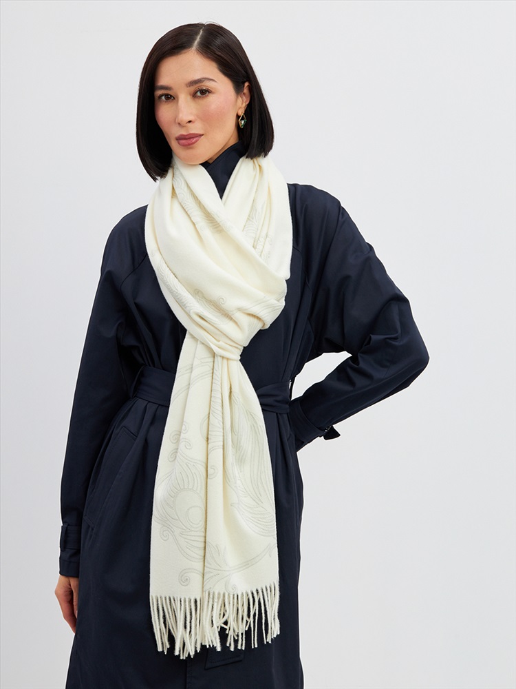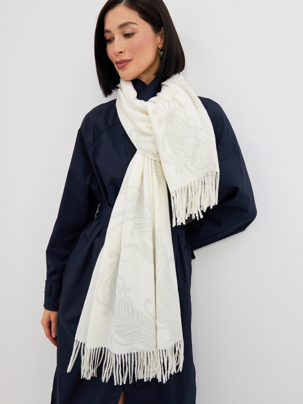 Цвет: Белый Состав: Кашемир 25% Шерсть 20% Вискоза 55% Состав: Вискоза, Шерсть, Кашемир Принт: Однотонный Размер: 180 x 70 см Большой, мягкий, теплый двусторонний однотонный палантин с принтом-печатью. Края изделия украшены бахромой. Машинная деликатная стирка. Комментарии к товару
