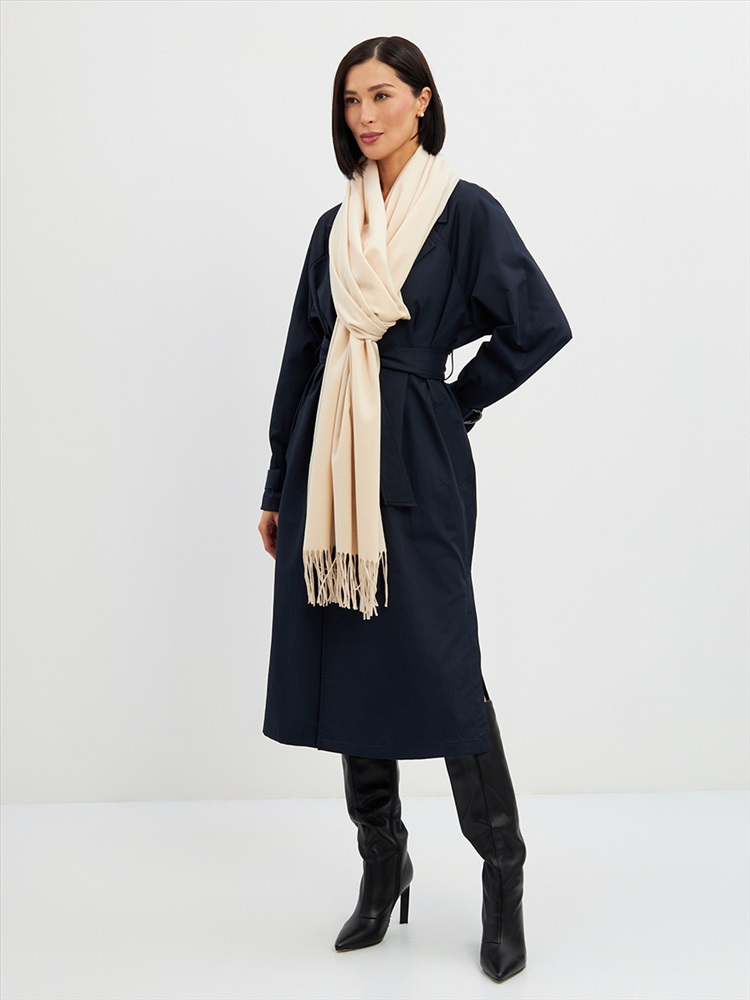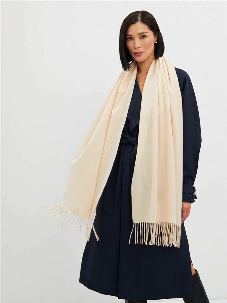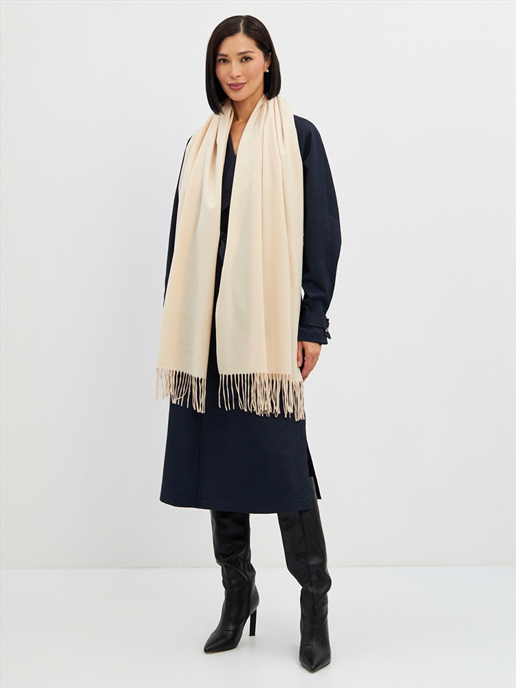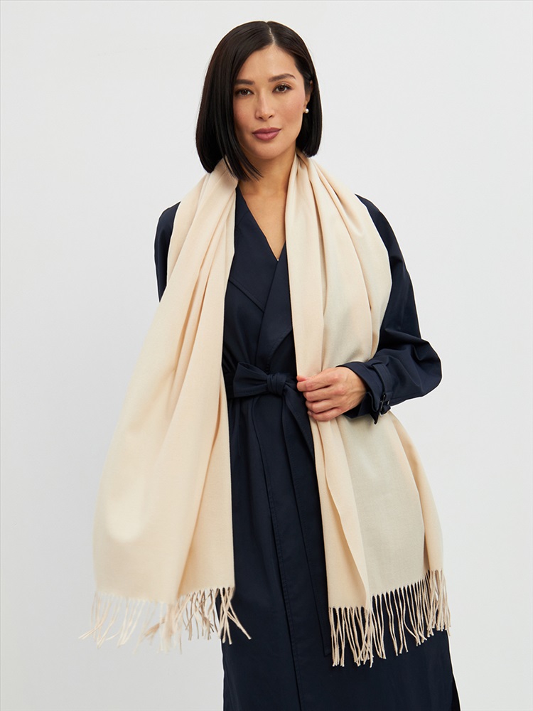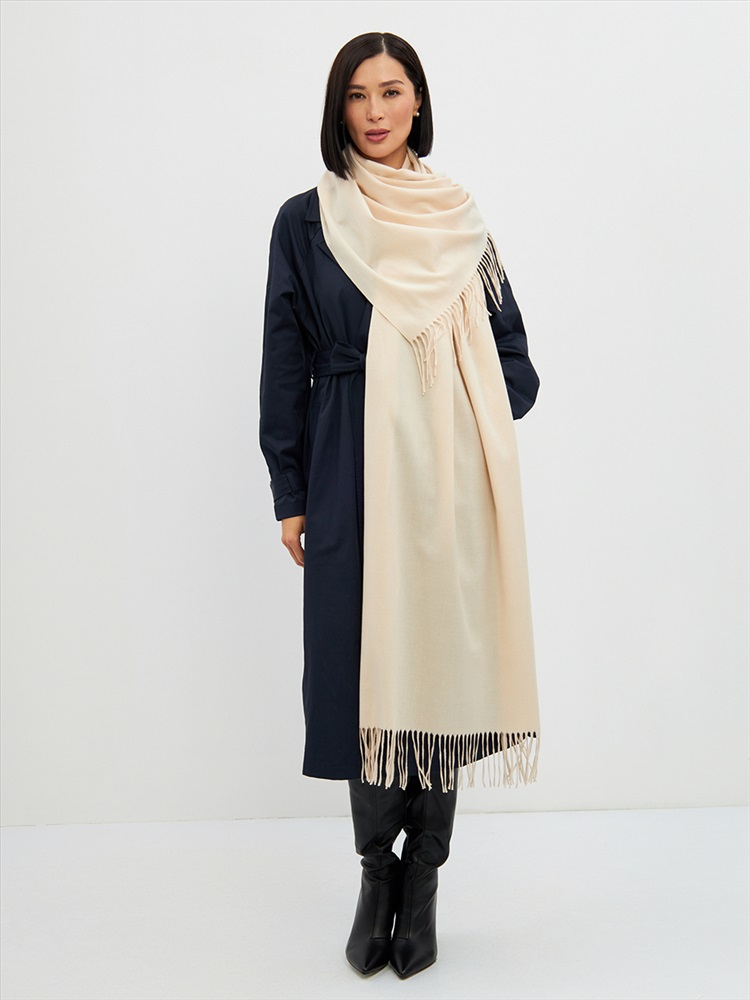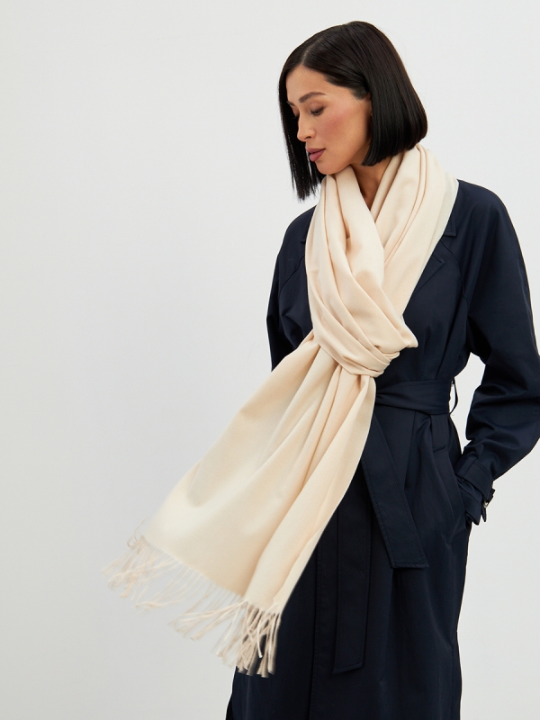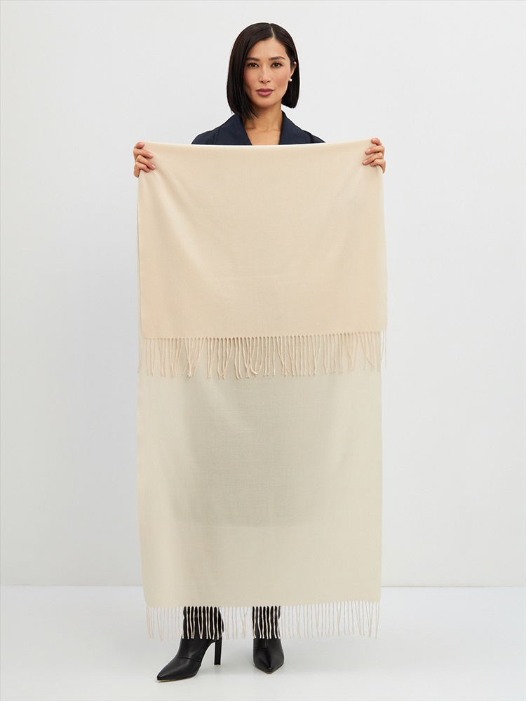 Большой, мягкий, теплый двусторонний однотонный палантин. Края изделия украшены кистями. Машинная деликатная стирка.