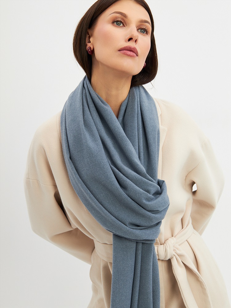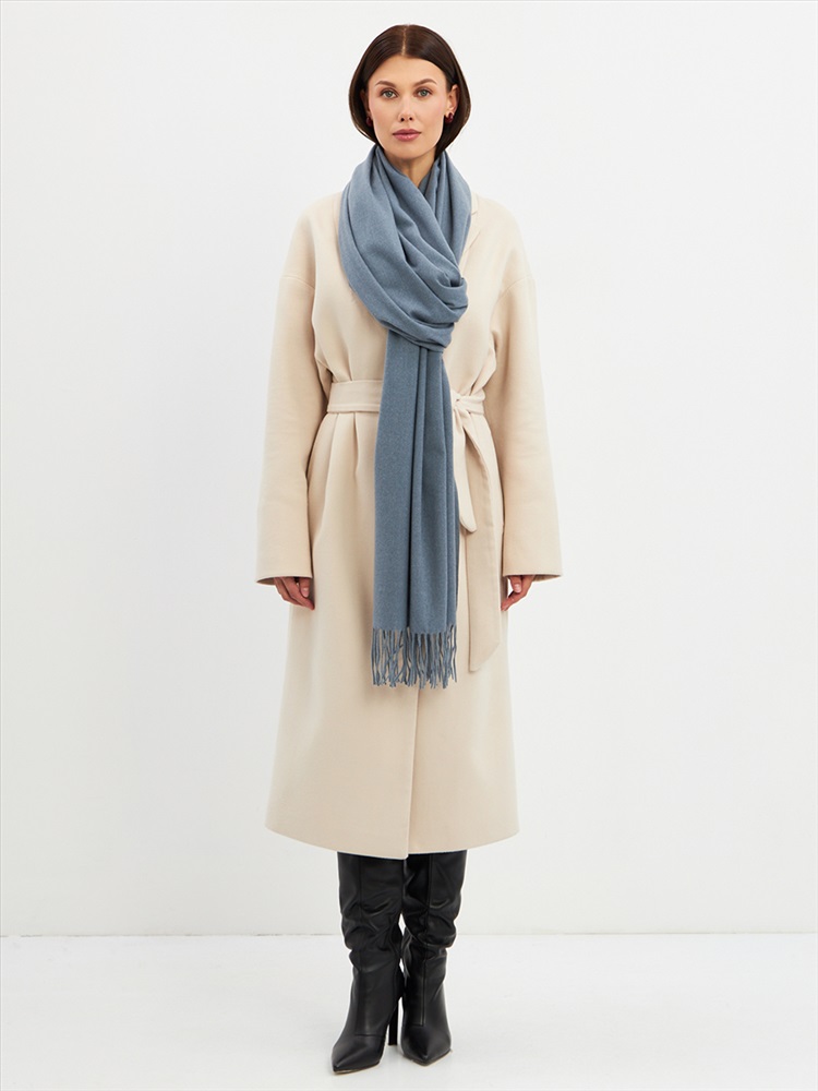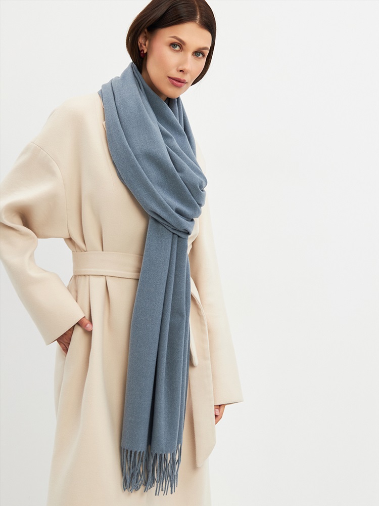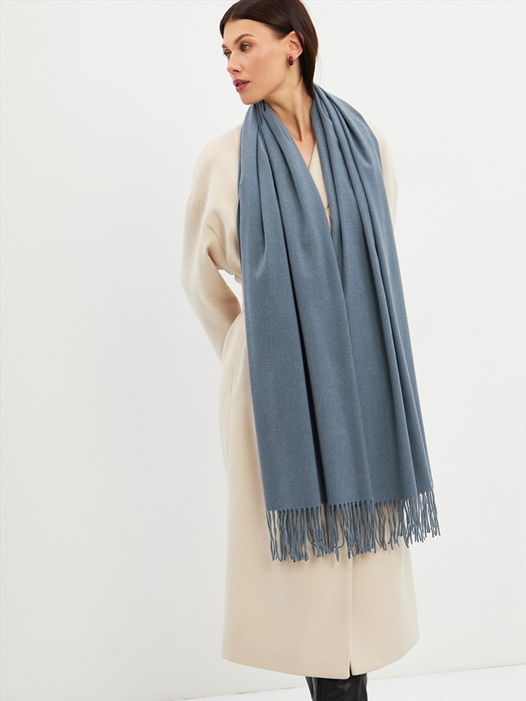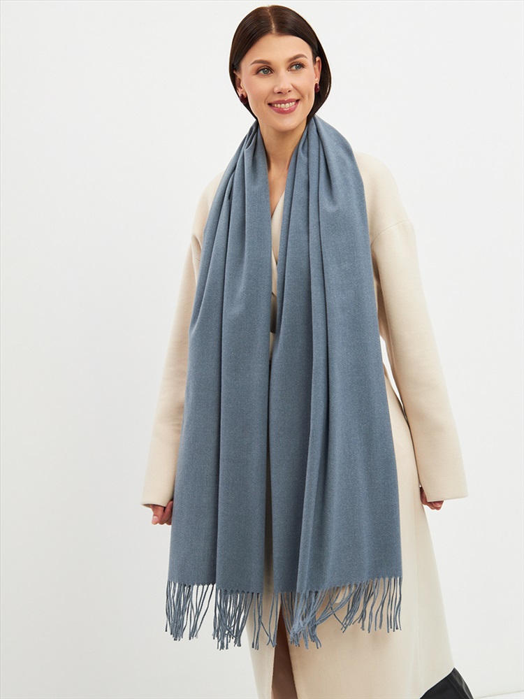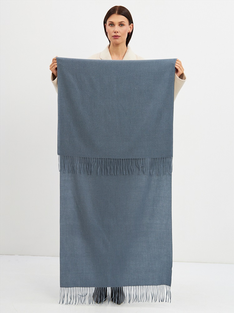 Большой, мягкий, теплый двусторонний однотонный палантин. Края изделия украшены кистями. Машинная деликатная стирка.