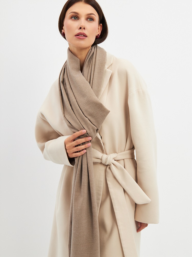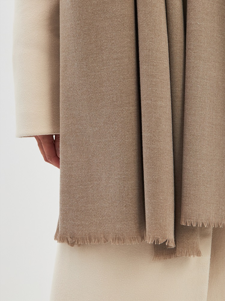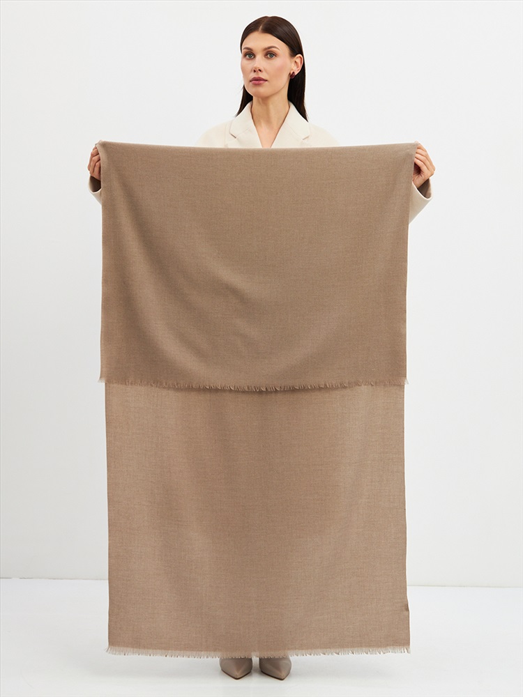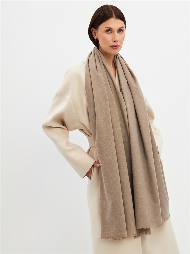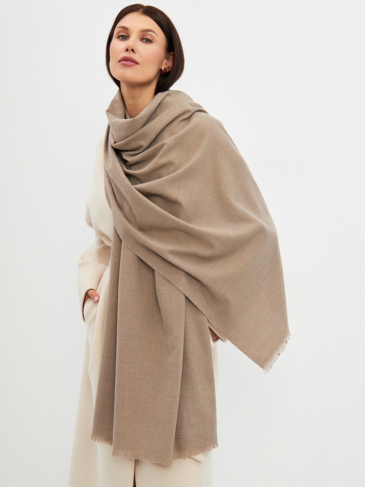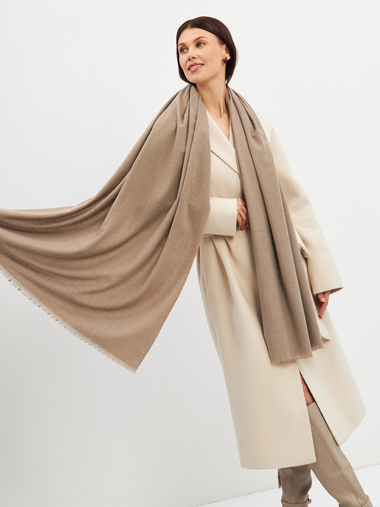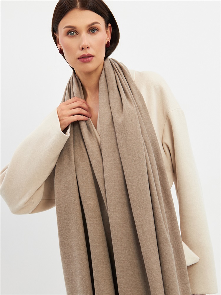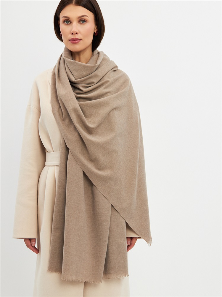 Большой, мягкий, теплый двусторонний однотонный палантин. Края изделия украшены бахромой. Машинная деликатная стирка.