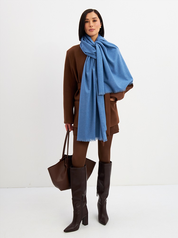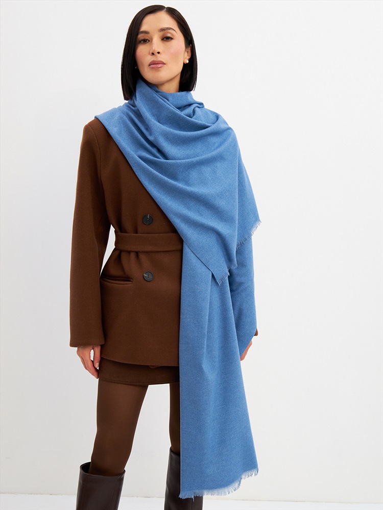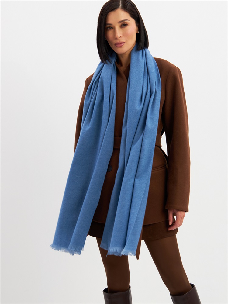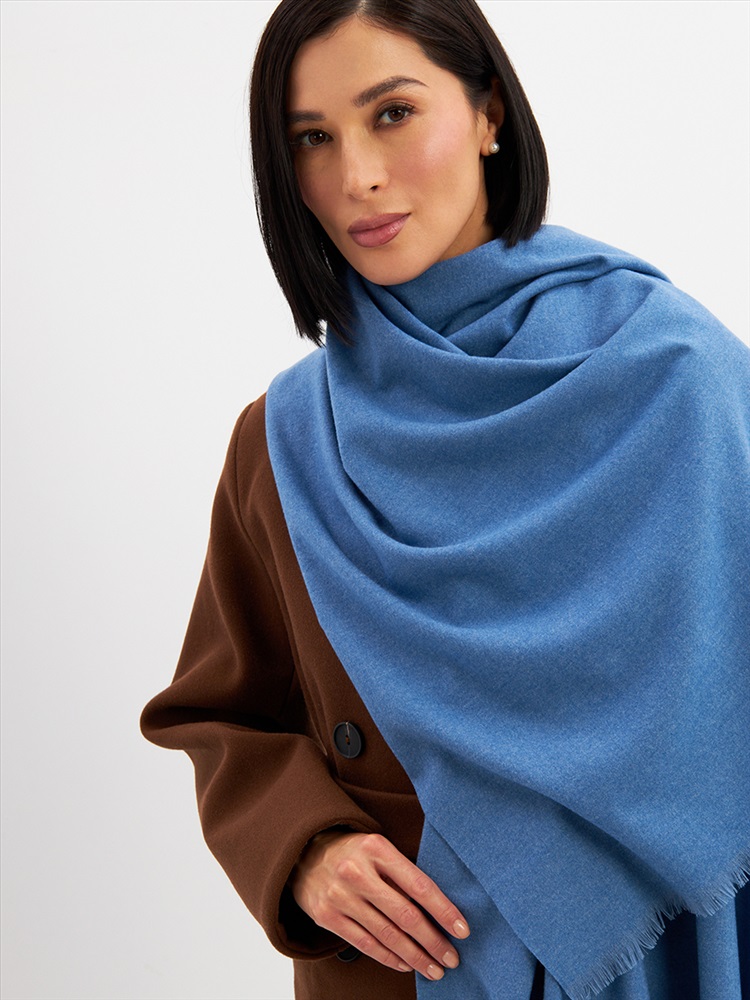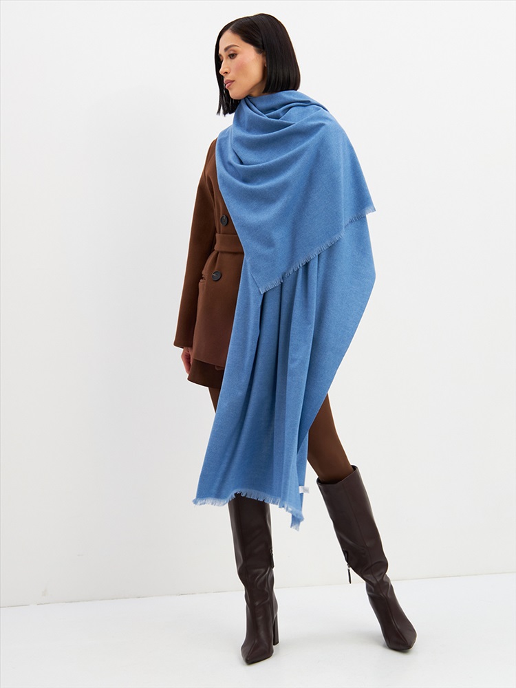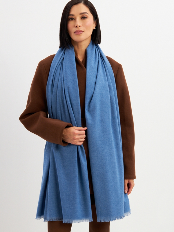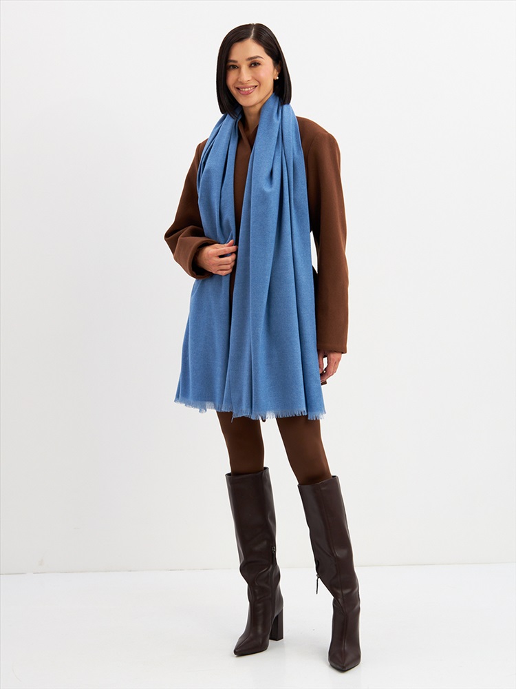Цвет: Голубой Состав: Вискоза, Шерсть, Модал Состав: Шерсть 20% Модал 45% Вискоза 35% Принт: Однотонный Большой, мягкий, теплый двусторонний однотонный палантин. Края изделия украшены бахромой. Машинная деликатная стирка. Комментарии к товару