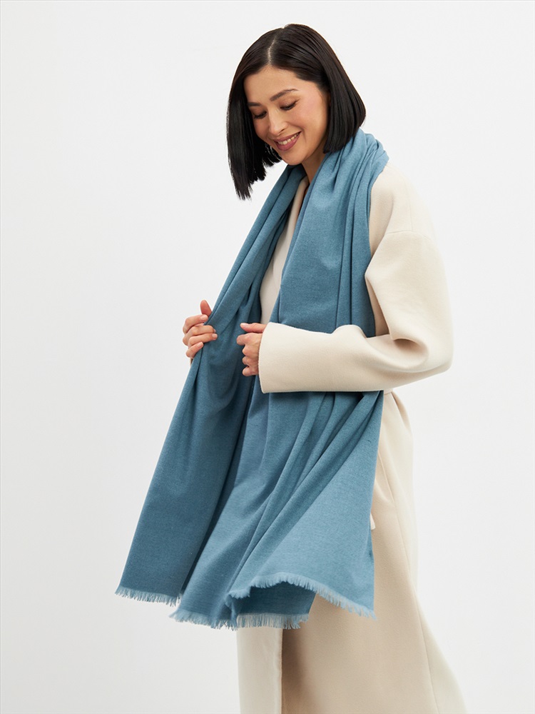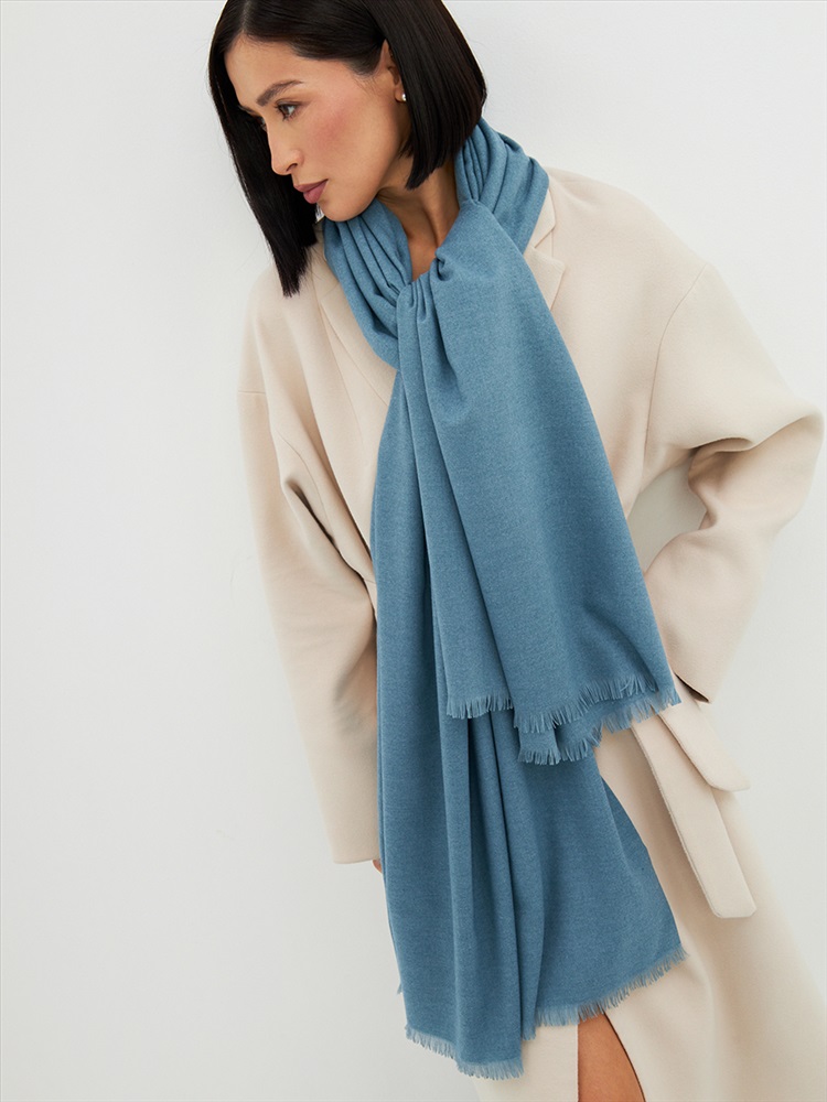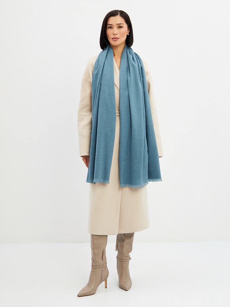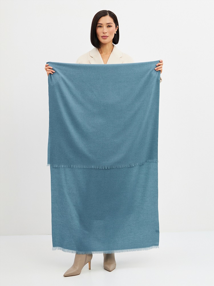 Большой, мягкий, теплый двусторонний однотонный палантин. Края изделия украшены бахромой. Машинная деликатная стирка.