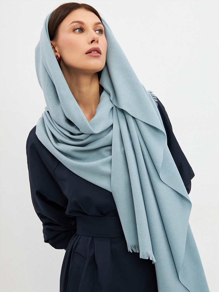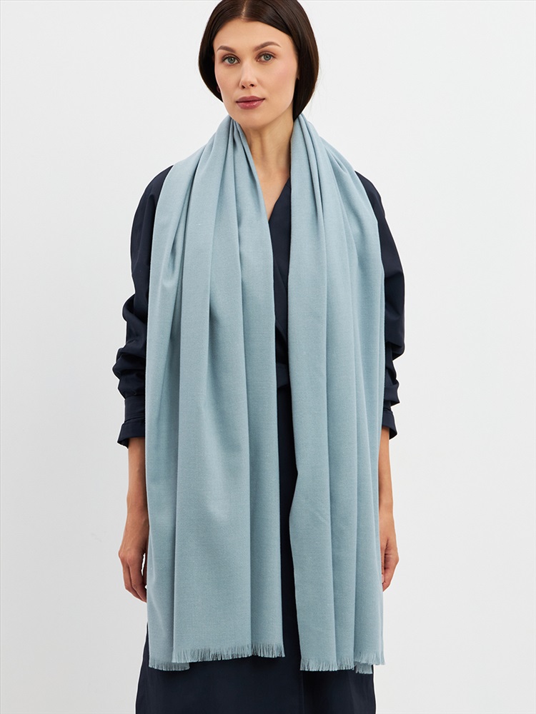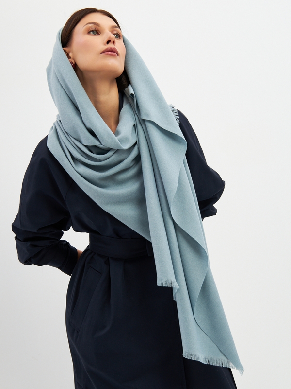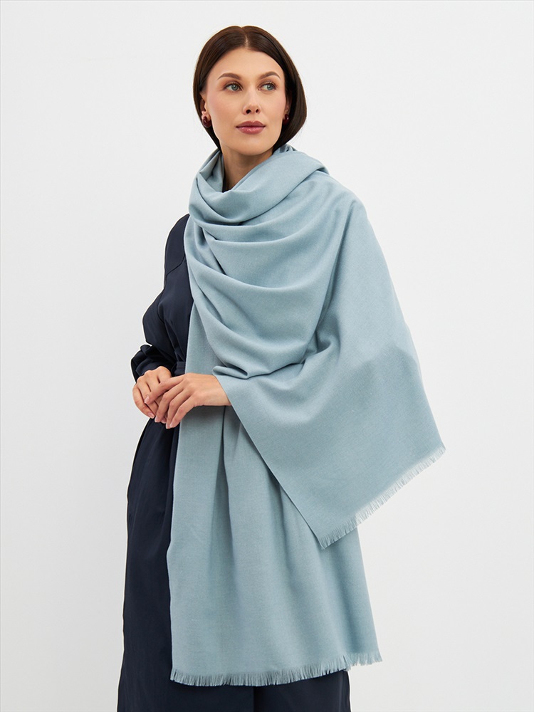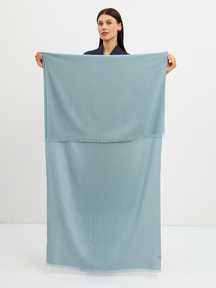 Большой, мягкий, теплый двусторонний однотонный палантин. Края изделия украшены бахромой. Машинная деликатная стирка.