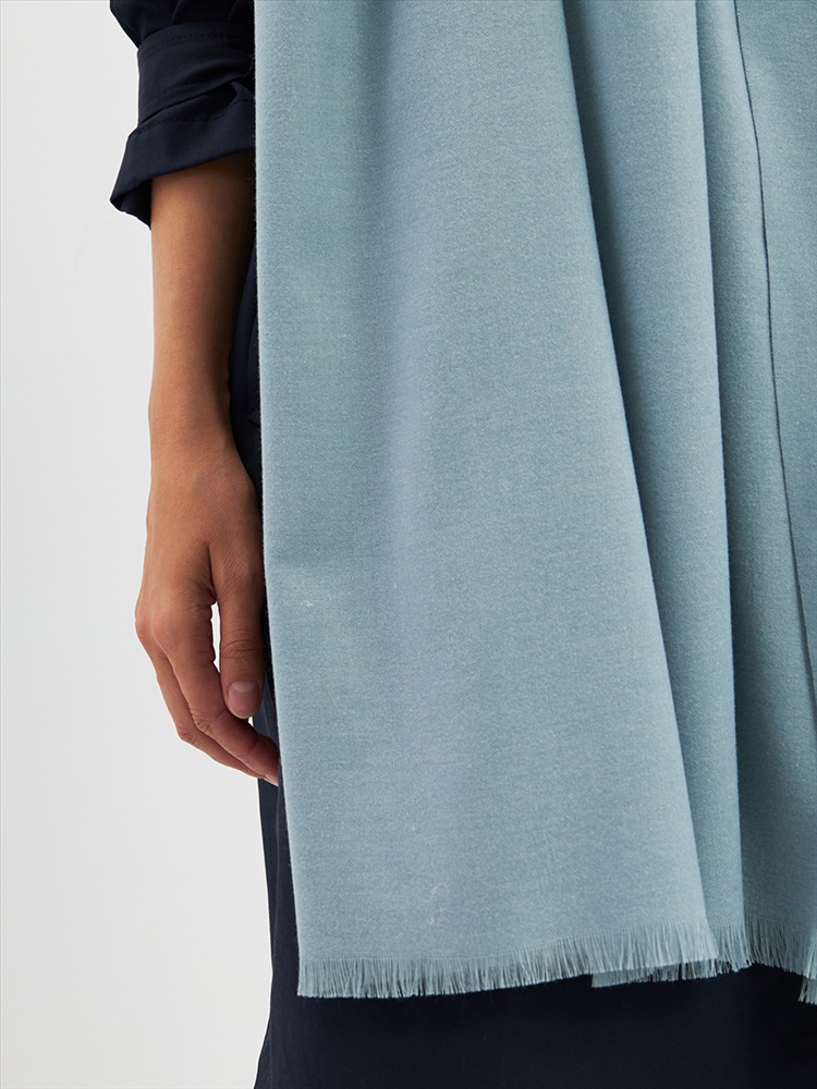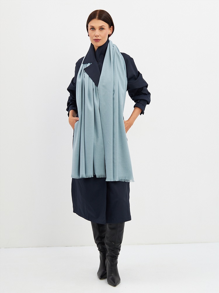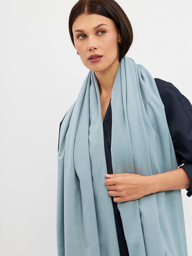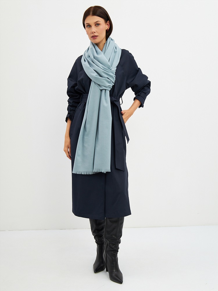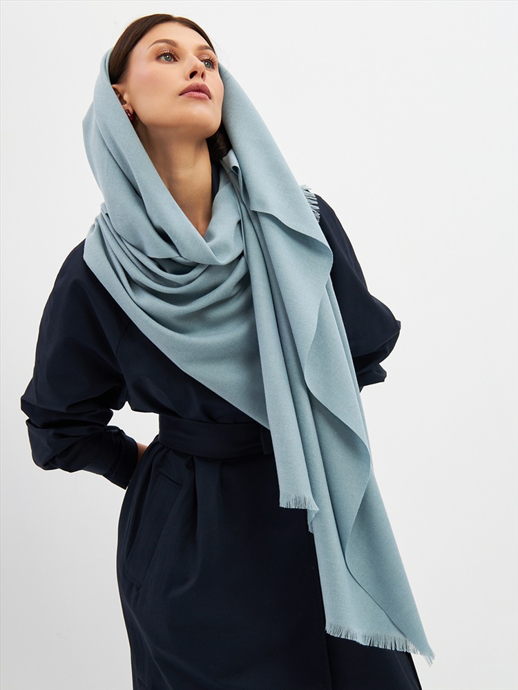 Большой, мягкий, теплый двусторонний однотонный палантин. Края изделия украшены бахромой. Машинная деликатная стирка.