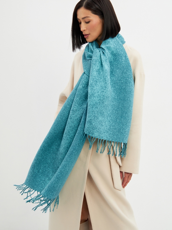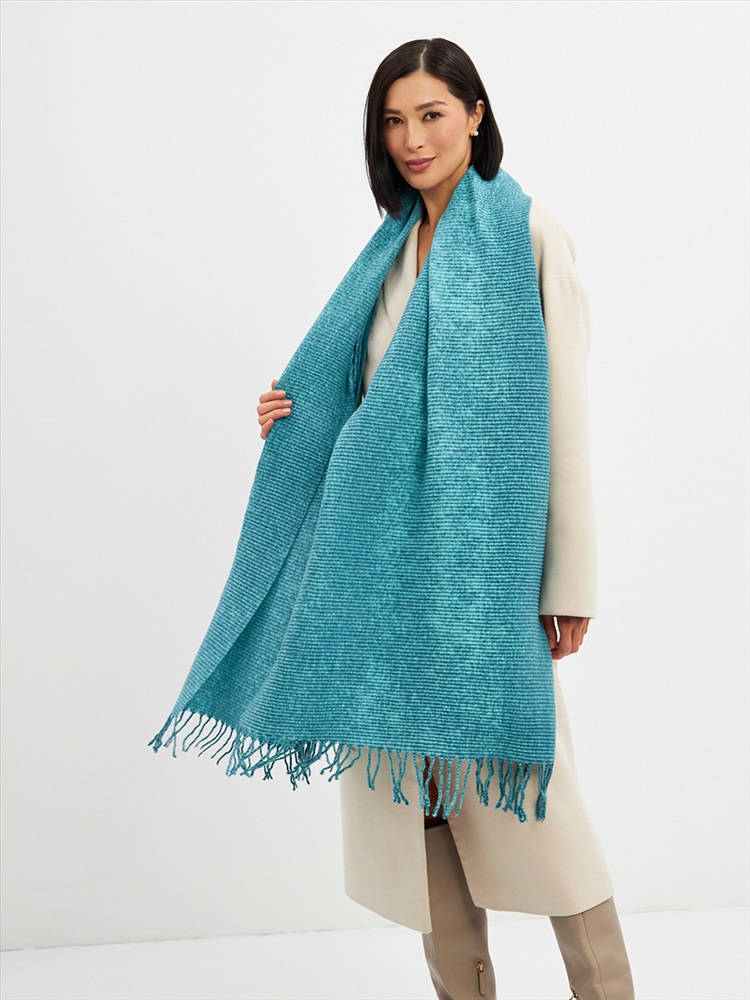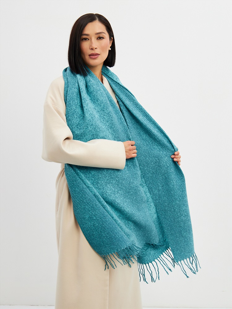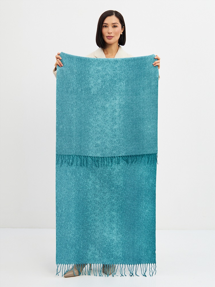 Цвет: Бирюзовый Состав: Вискоза, Шерсть, Модал Состав: Шерсть 10% Модал 55% Вискоза 35% Принт: Однотонный, Меланж Большой, мягкий, теплый двусторонний однотонный меланжевый палантин. Края изделия украшены кистями. Машинная деликатная стирка. Комментарии к товару