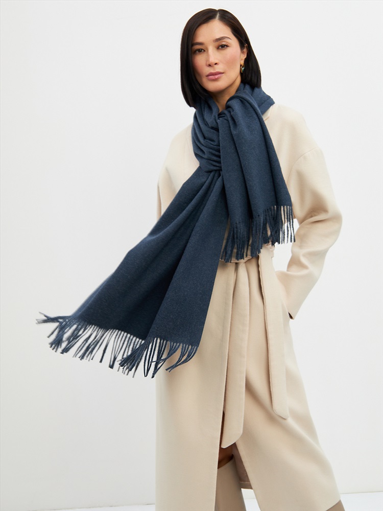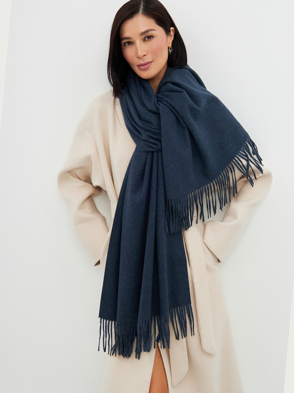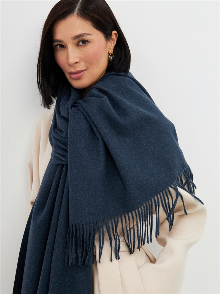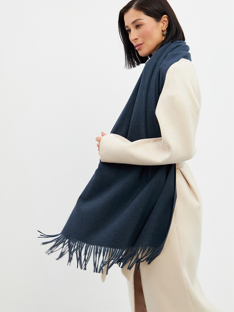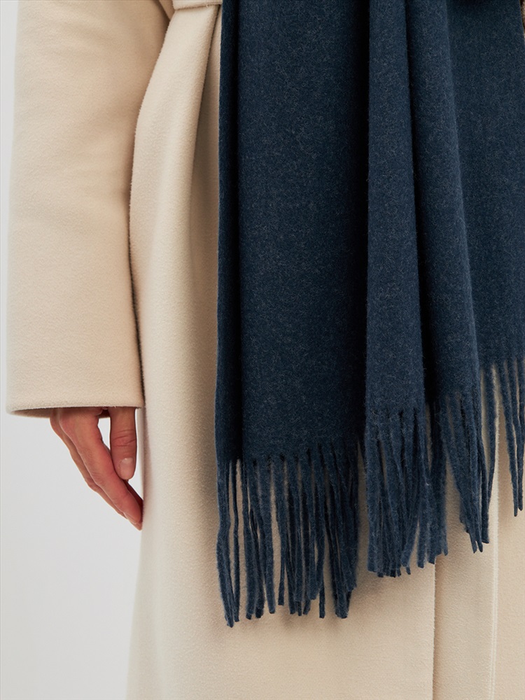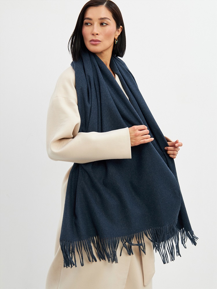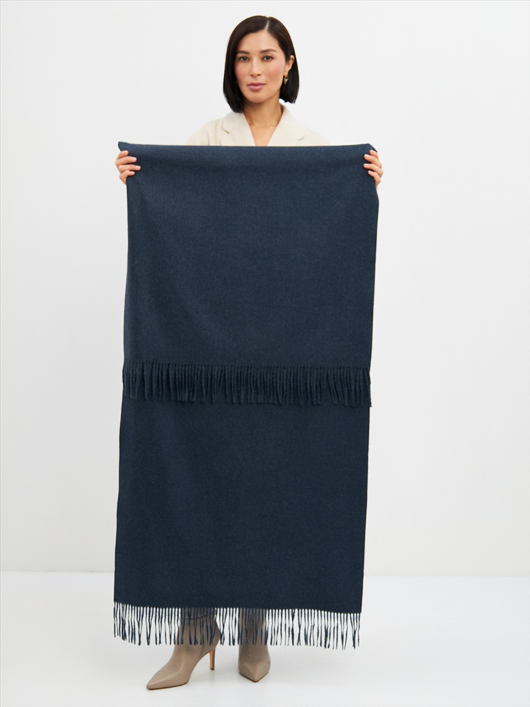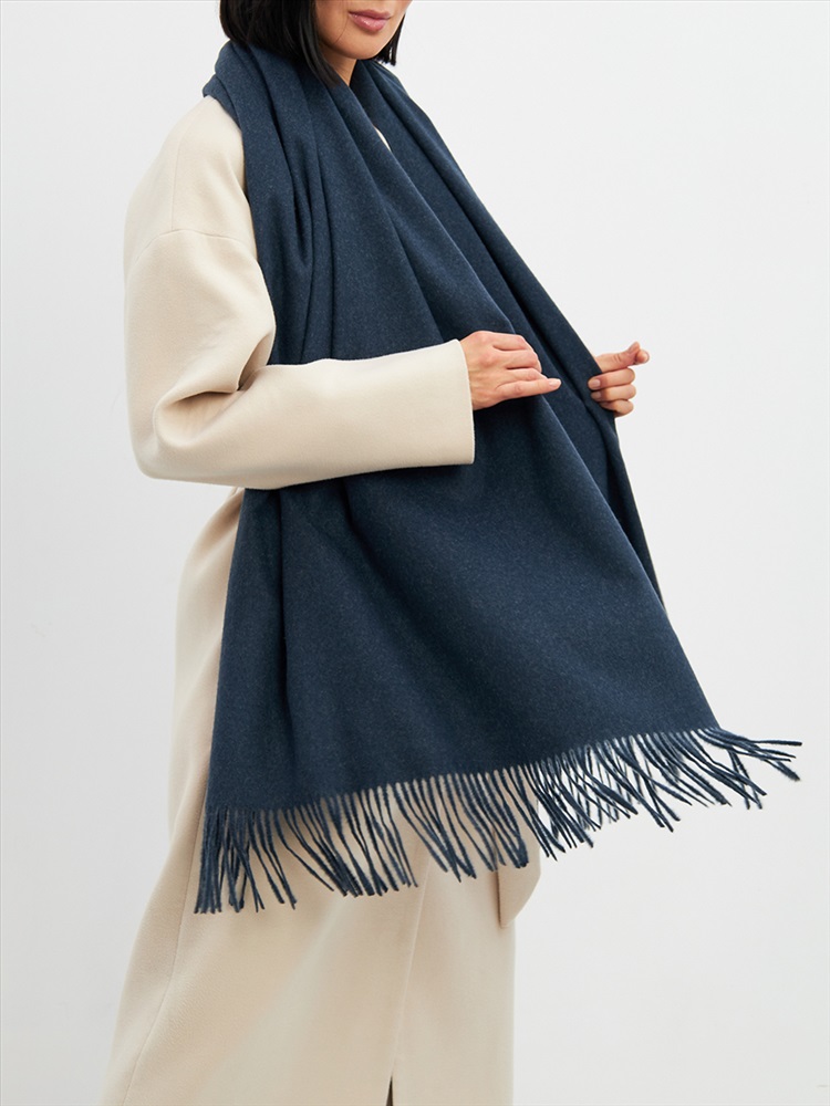 Большой, мягкий, теплый двусторонний однотонный палантин. Края изделия украшены кистями. Машинная деликатная стирка.
