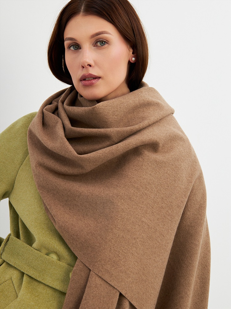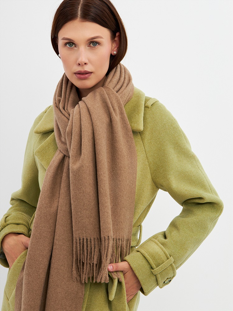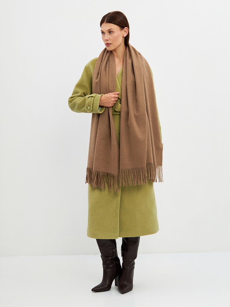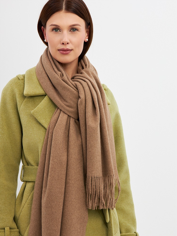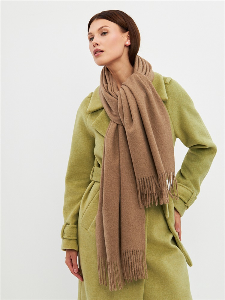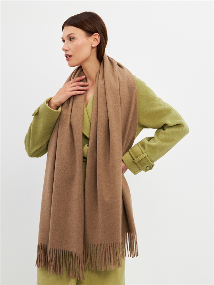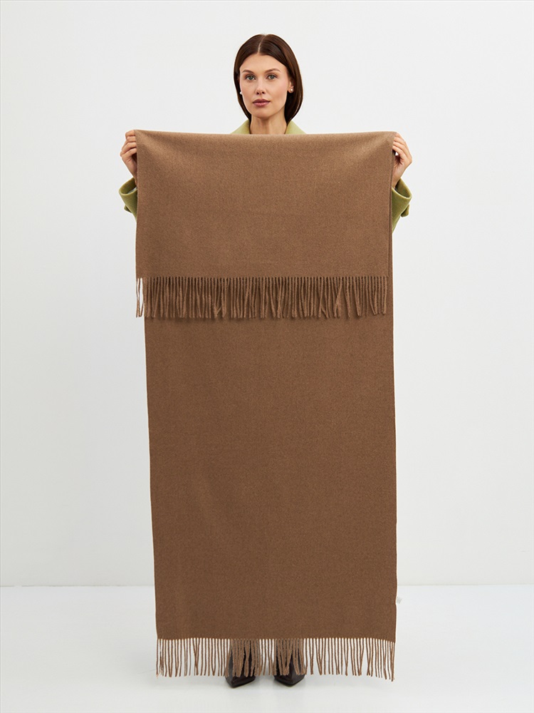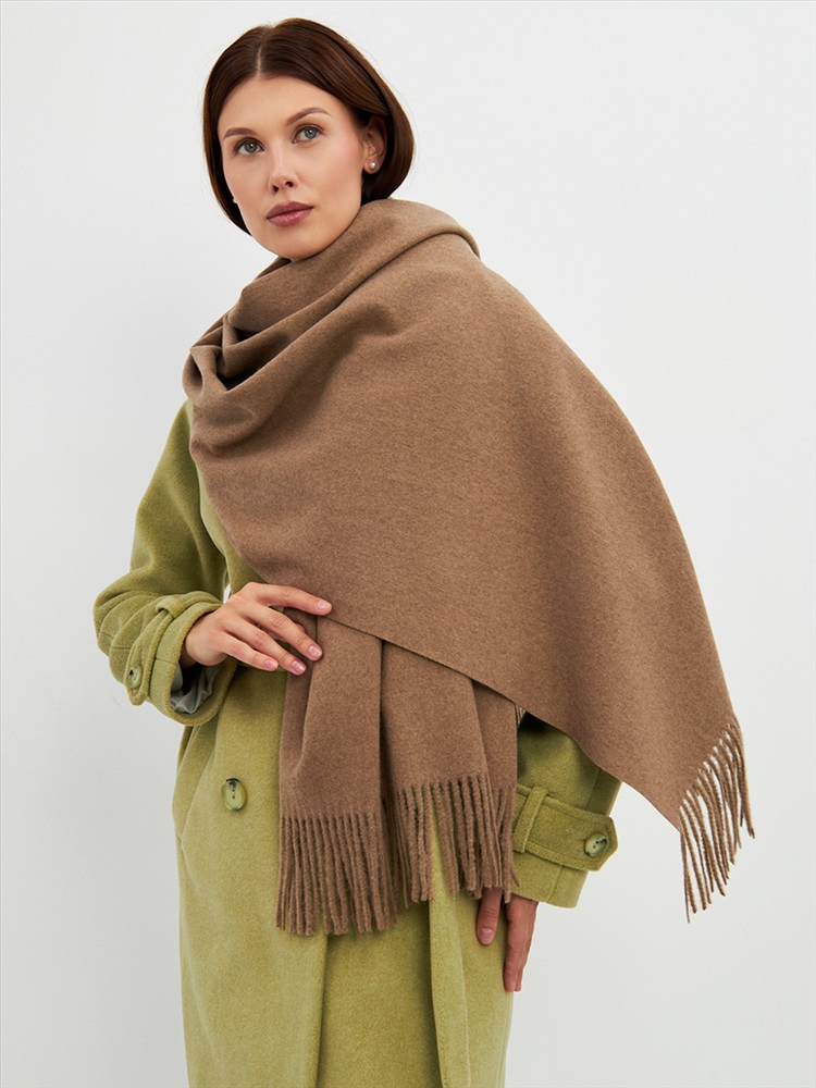 Большой, мягкий, теплый двусторонний однотонный палантин. Края изделия украшены кистями. Машинная деликатная стирка.
