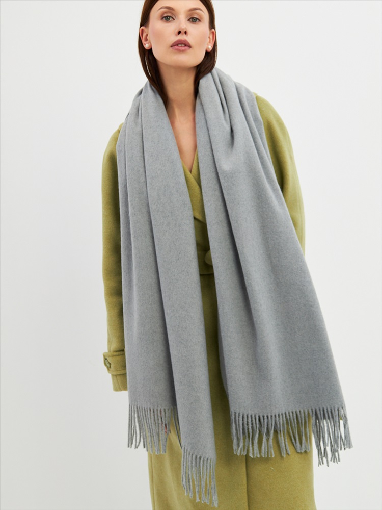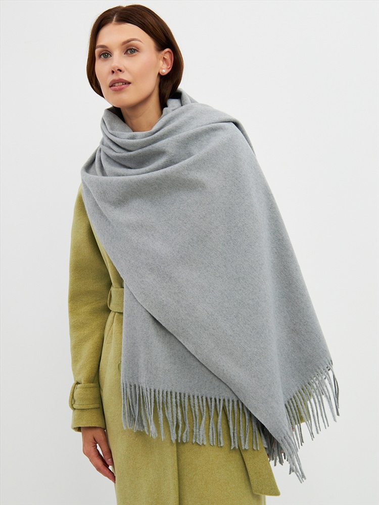 Цвет: Серый, Светло-серый Состав: Кашемир 25% Шерсть 20% Вискоза 55% Состав: Вискоза, Шерсть, Кашемир Размер: 70 х 180 см Принт: Однотонный Большой, мягкий, теплый двусторонний однотонный палантин. Края изделия украшены кистями. Машинная деликатная стирка. Комментарии к товару
